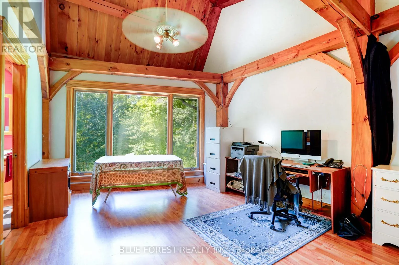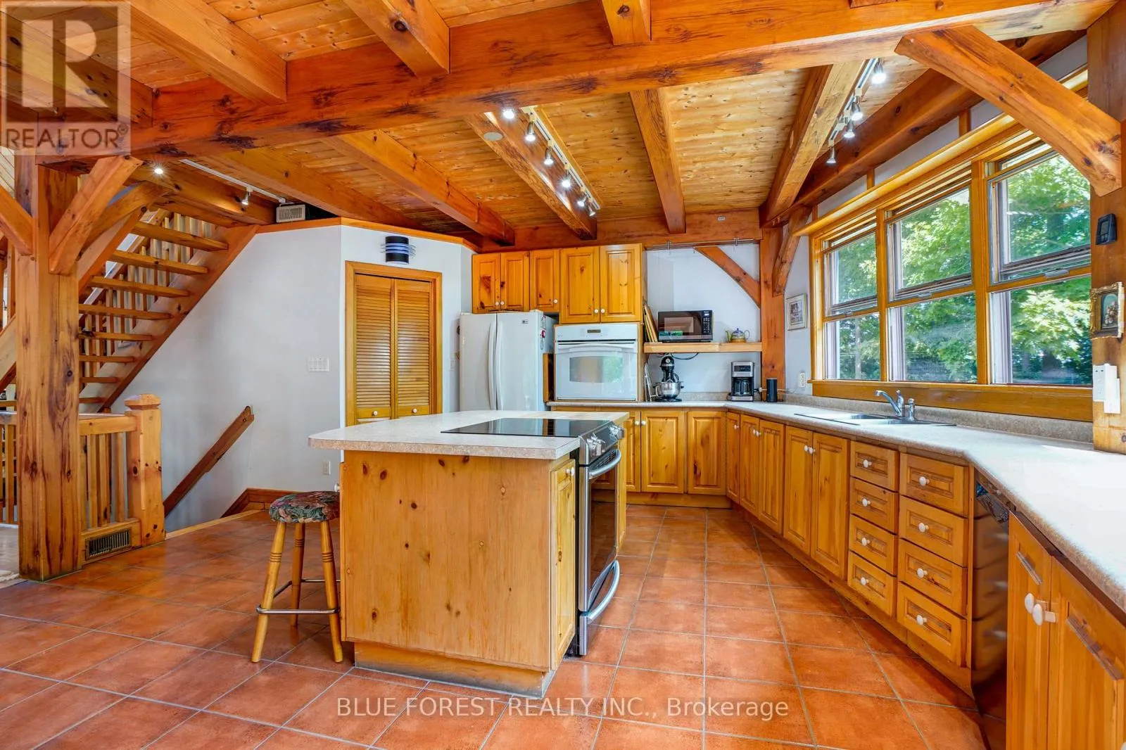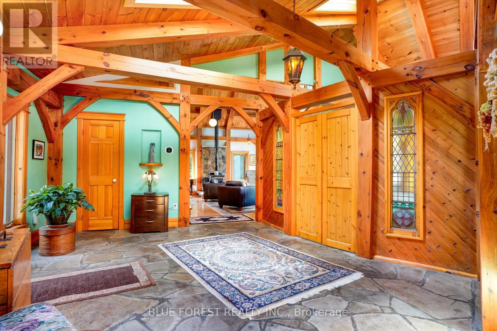 Cross Streets: Iona Road. ** Directions: From 401 - Head North on Iona Road... Head East on First Line. Timber frame Chalet on 93 Acres with Thames River Frontage! Incredible opportunity to own a custom Timber frame Chalet built by the founder of Pineridge Log and Timber frame. (Builders of Cow Bell Brewery in Blyth) Situated on 93 acres with 1000 feet of frontage on the Thames River, this picturesque property offers the perfect blend of natural beauty, privacy, and modern comfort just 3 minutes to Hwy 401 and 20 minutes to London. The home features 3 bedrooms, 2 bathrooms (Cheater Ensuite to Master), Fully finished Walk-Out basement and an attached 2-car garage, all set against a backdrop of 50 workable acres, hardwood forest, and a 1 km private walking trail. Premium features include a shake-style metal roof with a 75-year warranty (installed 2005) and Site sourced 3/4 ash hardwood flooring in the living and dining rooms. The gourmet kitchen includes a walk-in pantry and a dishwasher (2022), overlooking the terrace with a retractable Komoka awning (2020). Oversized 8' Pella patio doors, windows, and skylights fill the space with natural light. Stay cozy year-round with a wood stove as well as a heat-pump furnace with A/C (2023), multi-zoned solar-heated floors (kitchen, foyer, 2 baths, lower bedrooms, and hallway), and 2 owned water heaters. Additional highlights include 200-amp electrical service, exterior roll-up blinds on patio doors, Front and Rear decks, and Antique stained glass accents and fixtures, all in a home that combines energy efficiency with timeless craftsmanship. Whether you're looking for a peaceful retreat, productive farmland, or an outdoor lifestyle property with river access, this one-of-a-kind estate delivers. (id:27476)