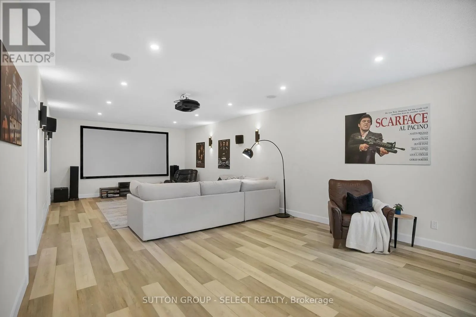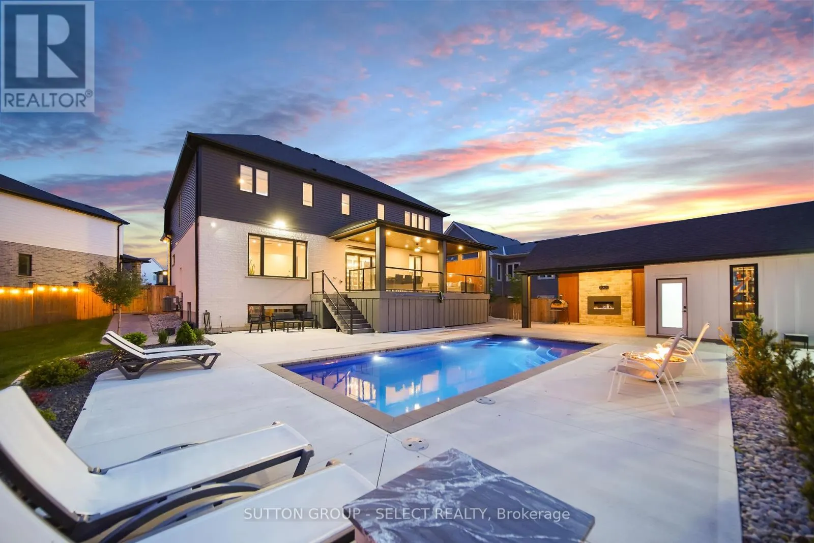 Cross Streets: Wayside Lane and Royal Cr. ** Directions: SUNSET RD TO TALBOTVILLE GORE RD, LEFT ON OPTIMIST DR, RIGHT ON ROYAL CR, HOUSE ON RIGHT HAND SIDE. 48 Royal Crescent, an extraordinary custom-built home offering over 4,500 square feet of high-end living space, designed w/ luxurious finishes, smart technology & incredible attention to detail. Situated on a large, private pie-shaped lot backing onto green space, this 4-bedroom, 6-bathroom home delivers comfort, function, and wow-factor. The main floor features a stylish office, a large living room, along with an elegant fireplace & an expansive kitchen complete w/ an oversized island WITH SINK & a walk-in pantry with custom-built-ins. Just off the triple-car garage is a generous mudroom with built-in storage, making daily life seamless & organized. A hide-a-hose central vacuum system, integrated security system, & built-in speaker system throughout the entire home add smart convenience. Upstairs, each bedroom offers the privacy of its own full ensuite bathroom. The stunning primary suite is a retreat, boasting a luxurious walk-in closet w/ custom-built-ins & a center island, as well as a spa-inspired ensuite featuring a water closet with a bidet. A second-floor laundry room makes chores easy & efficient. The fully finished lower level is made for entertaining, featuring a projector and screen, a wet bar, a fitness room, & 9-foot ceilings that add to the open feel. Outside is where this home truly becomes an entertainer's paradise. Enjoy summers by the heated fiberglass pool, w/ a fully equipped pool house featuring its own bathroom & garage door bay. The backyard also includes a basketball court, built-in stone gas fireplace, & a stunning gazebo lounge area w/ a second open-flame gas fireplace & hookups ready for your dream outdoor kitchen. A composite raised deck off the dining area, hardwired outdoor lighting, built-in speakers & full Wi-Fi connectivity complete the space. W/ a triple car garage including a rare pull-through bay this home checks every box. Every inch of 48 Royal Crescent has been crafted to impress, combining functionality with high-end living. (id:27476)