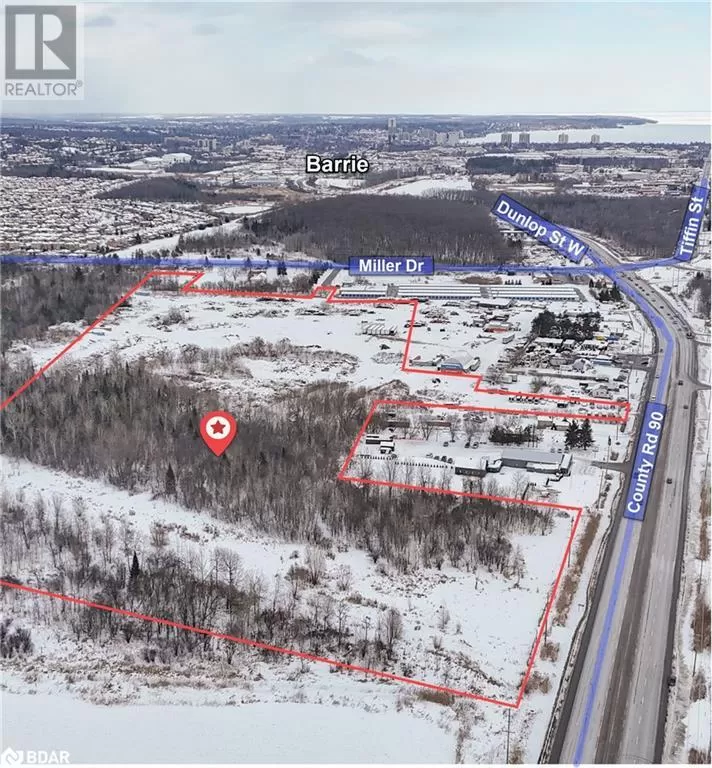 HWY 400 to Dunlop St W, West to property on North side, just West of Miller St. Prime Development Land - Barrieâs Targeted Growth Area. Almost 40 Acre site with approx. 23 acres of flat, useable land accessed off Highway 90/Dunlop St W, immediately beside Barrieâs settlement boundary line, surrounded by industrial, commercial, and mixed-use designated lands. Located inside the Barrie Expansion study area. At less than $183K per acre, this land presents plenty of possibility to procure profit, where lands just on the other side of the city boundary line are selling for $1M+ per acre. Make a great investment today! Current use is outside storage of lumber and landscaping materials. (id:27476)