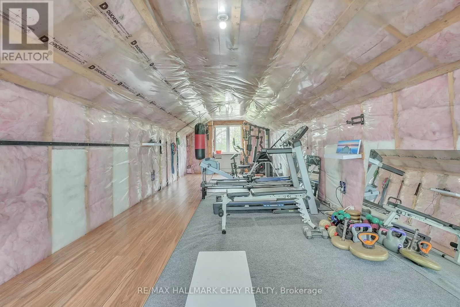 Hrv Rd W To Cty Rd 29 N To Con Welcome to 2533 Flos Rd 3 West, where peaceful country living meets practical comfort in the heart of Springwater. Tucked away among mature trees, this charming bungalow offers the kind of privacy and natural beauty that makes you feel right at home from the moment you arrive. Step inside to a bright and airy open-concept layout, perfect for gathering with family and friends. The full basement, complete with a separate entrance, provides flexibility for extended family, a future in-law suite, or added living space. Outside, unwind on the expansive, low-maintenance concrete patio and take in the incredible sunsets that make this property truly special. For those who need extra space, the impressive 30 x 40 detached shop is a standout heated with a propane furnace and featuring high ceilings, a large garage area, a separate workshop space, an additional roll-up door, and a full gym on the upper level. Whether you're into cars, fitness, or creative projects, this space has you covered. Just a short drive to Elmvale and Wasaga Beach, this welcoming property offers a rare blend of comfort, function, and serene outdoor living. Come see what makes it so special, you won't want to leave. (id:27476)