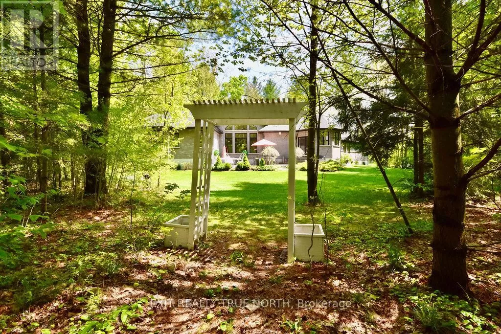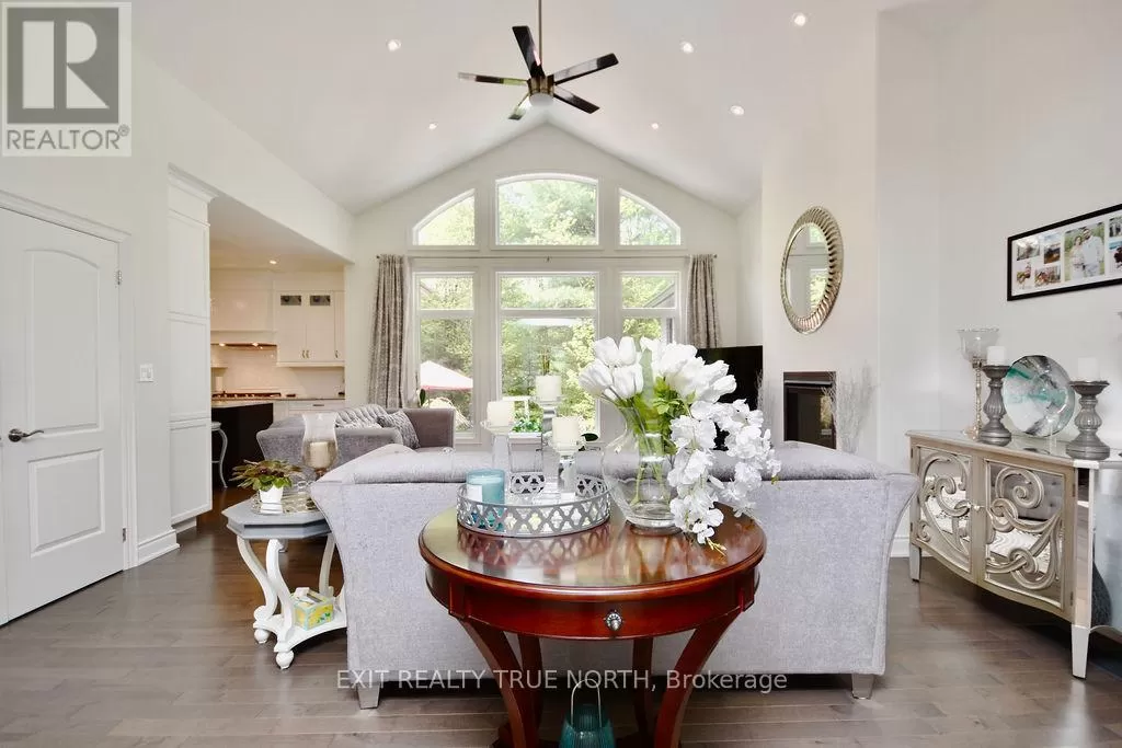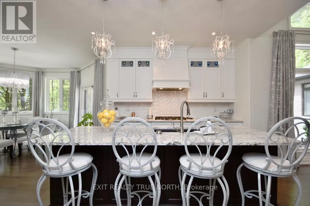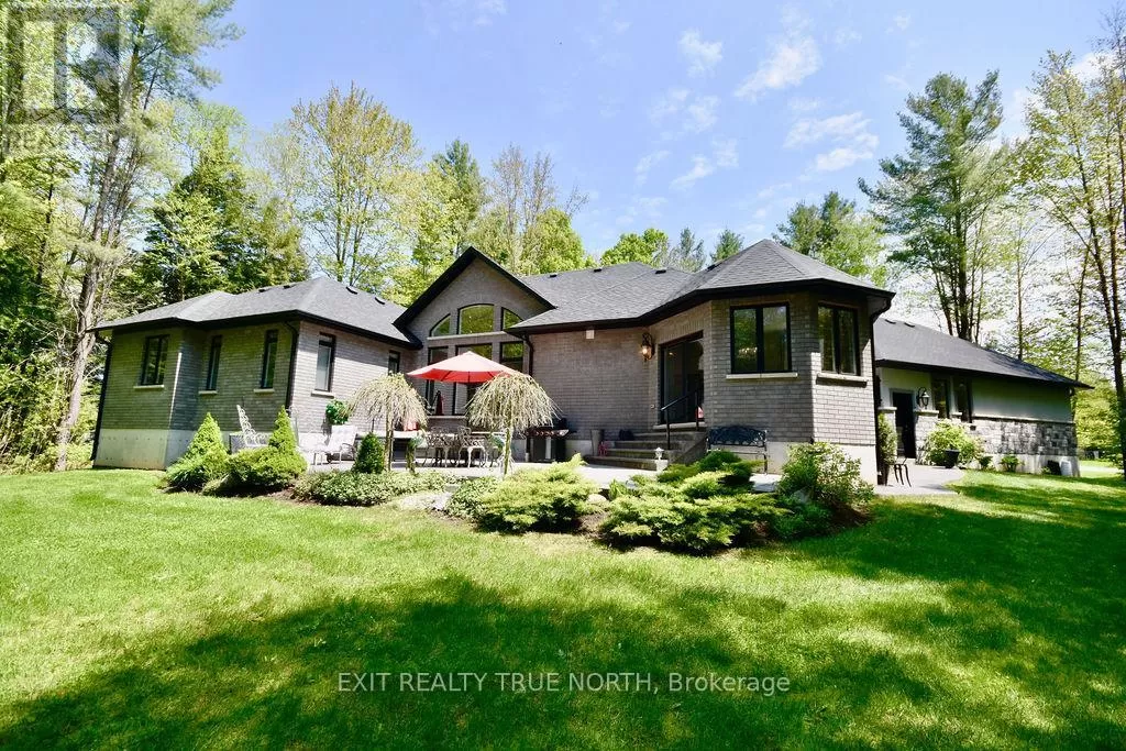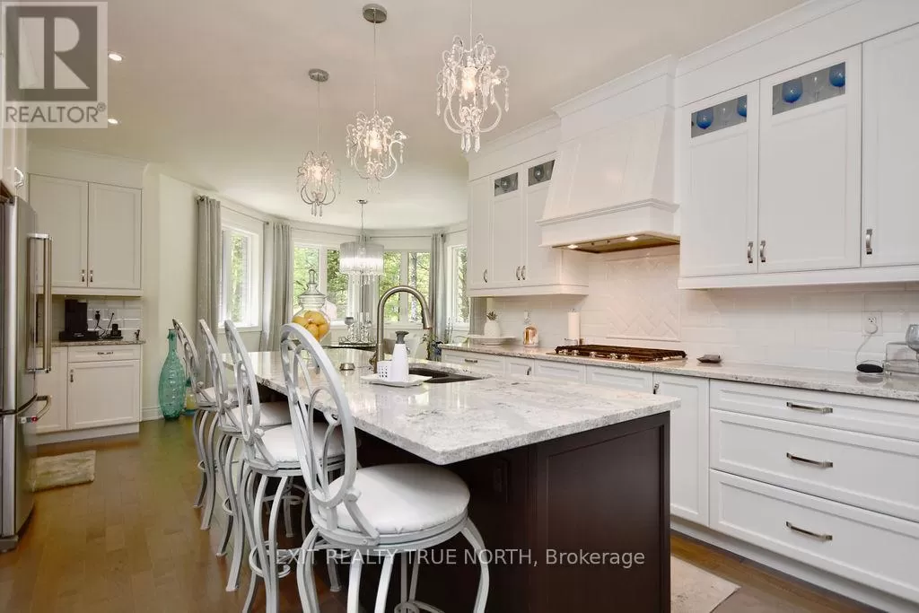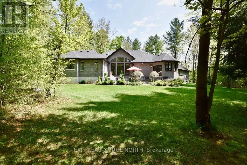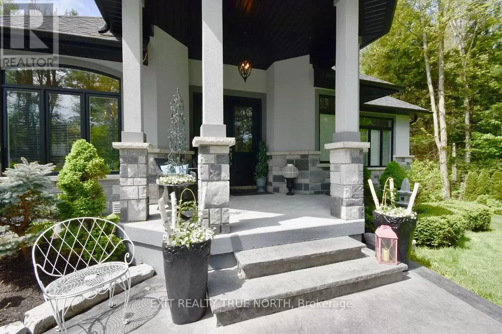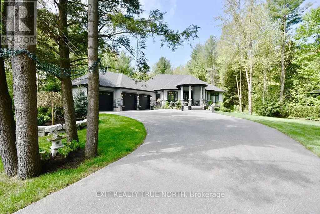 Cross Streets: Flos Rd 4 E / Marni Ln. ** Directions: HWY 400 to Penetanguishene Rd to Flos Rd 4 E to Marni Ln to Sycamore Cir to sign. Rarely offered, gorgeous custom bungalow on super exclusive Sycamore Circle. This 2,300+ square foot home sits on a very private, nearly 2 acre lot. This stunning home has 3 bedrooms and 2.1 bathrooms including spacious primary with large walk-in closet and lavish ensuite. The main floor also features a stylish custom kitchen with built-in appliances, Cambria stone countertops and gorgeous breakfast nook surrounded by windows and looking out to the manicured grounds. Triple car garage with separate entrance to basement. Backyard is a private sanctuary with trails and surrounded by mature trees. Equipped with natural gas and Bell fibre optics. Just minutes to Barrie, Elmvale, Wasaga Beach and Highway 400. (id:27476)