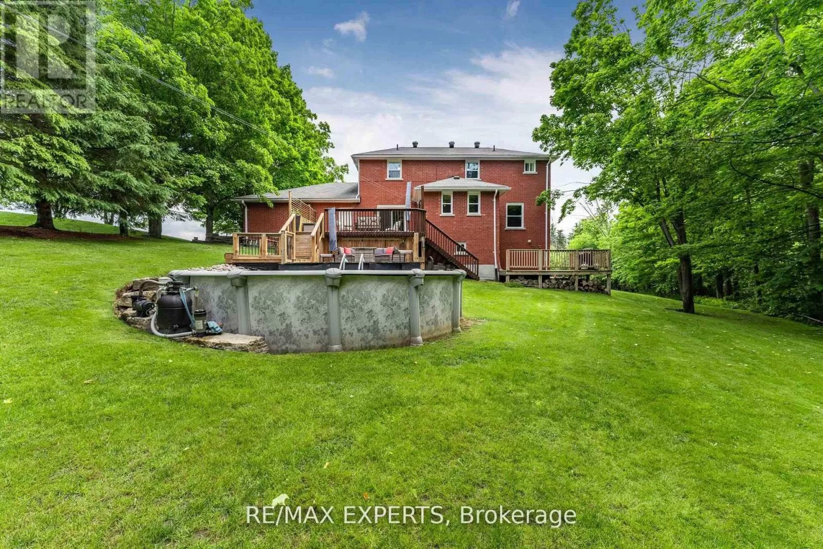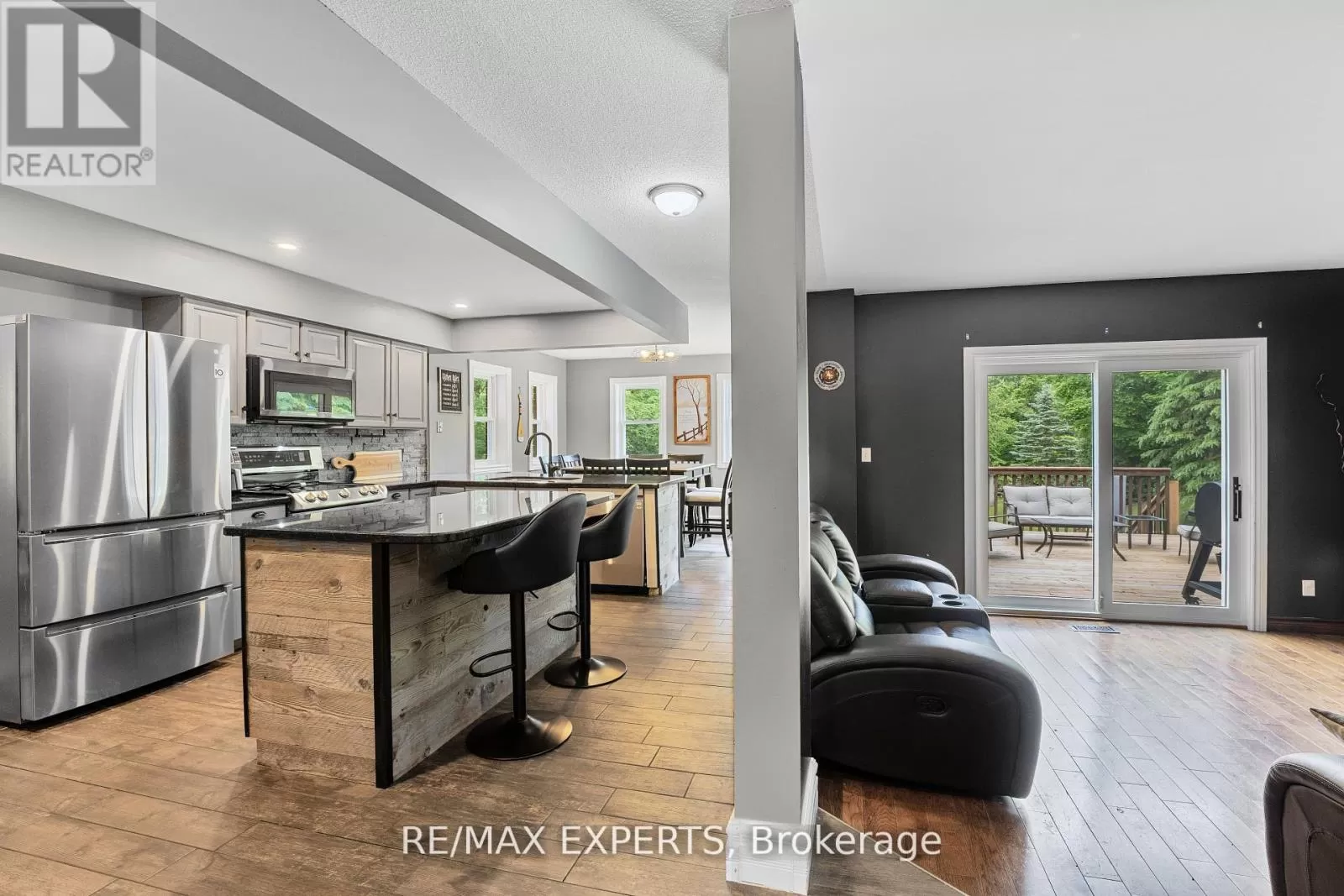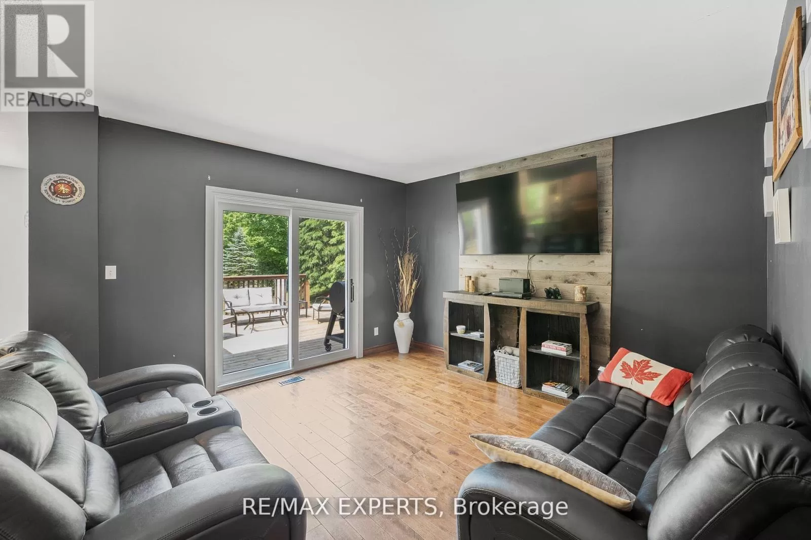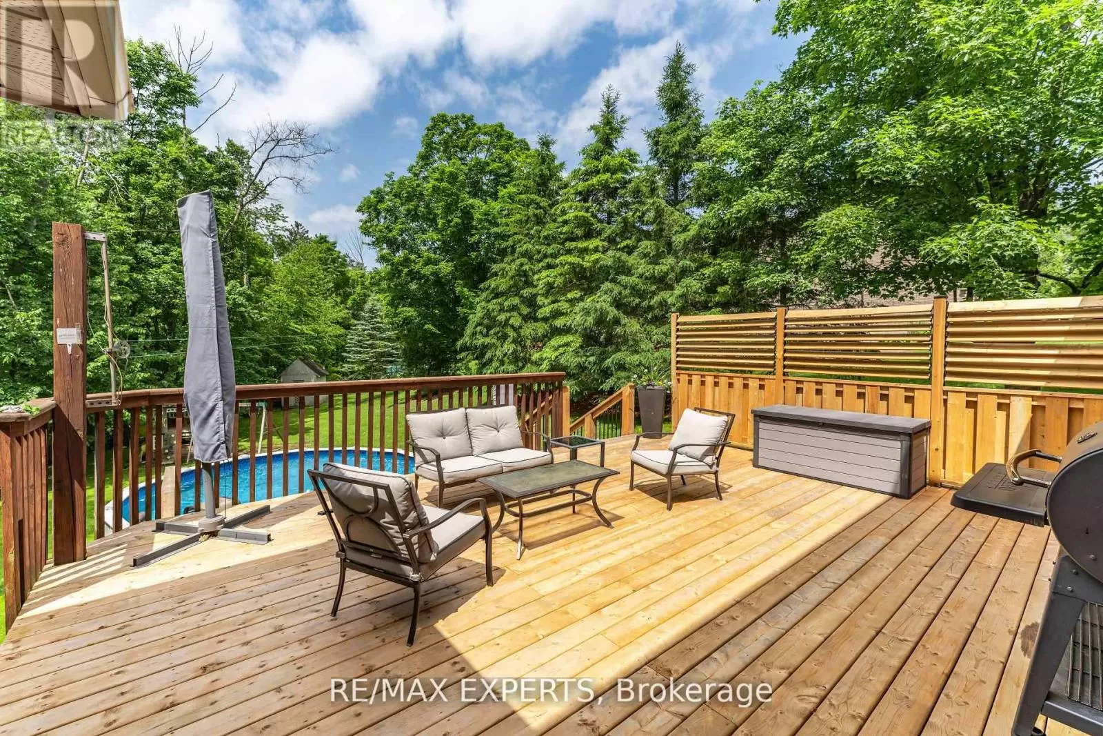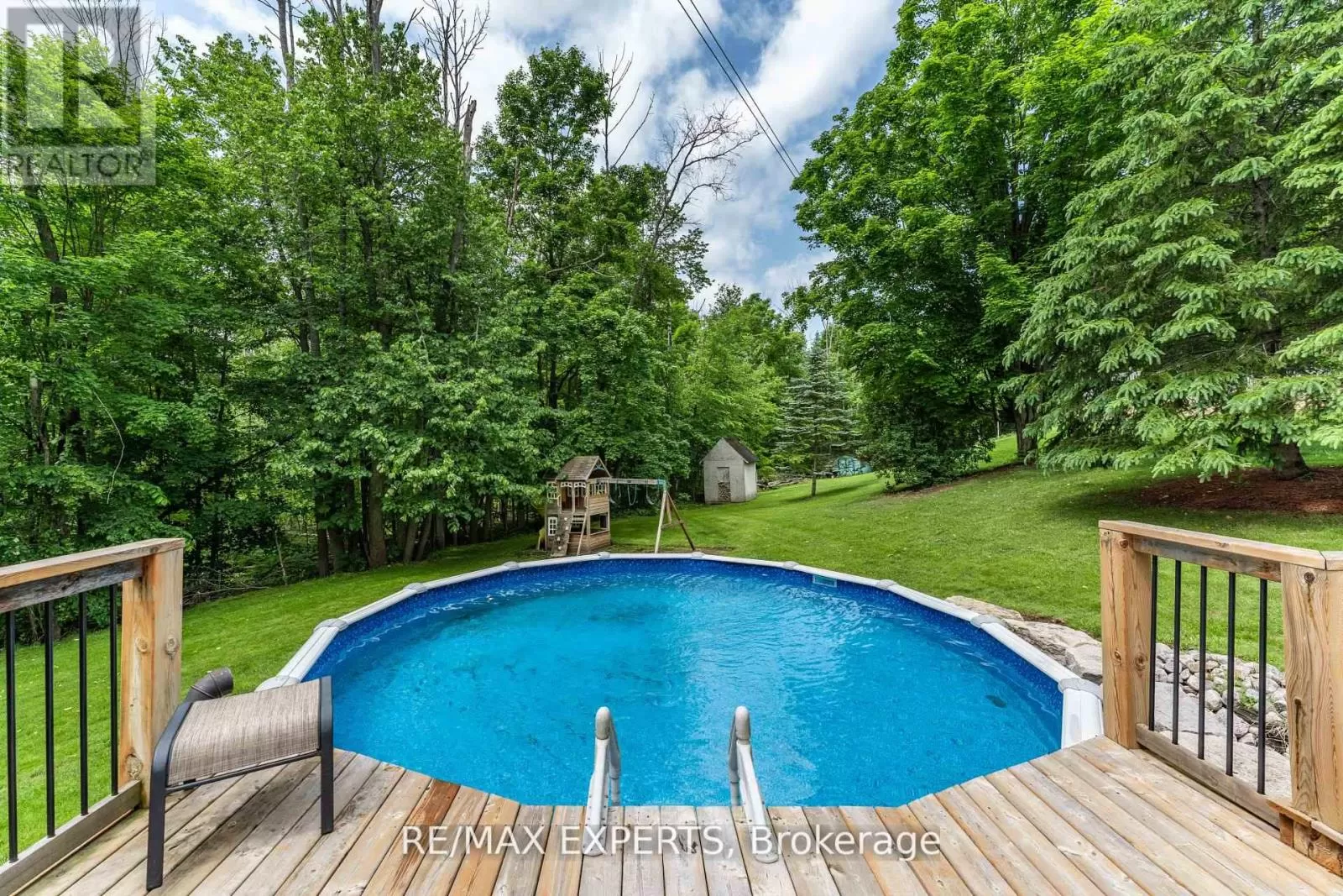 Moonstone/Scarlett Line Jump on in to your own private backyard pool surrounded by green space, complete with a full custom wraparound deck and entertaining area! This incredible home is situated on one of the best lots in the entire neighborhood. Backing and siding onto the Simcoe County Forest, you and your family are surrounded by peace, quiet and tranquility. Enjoy spending time with your family and friends entertaining in your sprawling and private back and front yard, complete with an above ground pool and integrated deck with gas fireplace and seating area, and children's playground. Step inside to a large well laid out floor plan, with a main floor office space, formal dining room, eat in kitchen with breakfast area overlooking the backyard, and sunken living room with walkout to your private deck. Upstairs you're greeted with 4 large bedrooms, the primary suite having a full 5 piece ensuite bath. Each bedroom has a generous sized closet and window that allows lots of natural light. The roof has 2 skylights installed for even more natural light to enter the home. The basement is completely finished, with a walkout, a kitchen, and a separate bedroom for income potential, or an in-law suite. Garage complete with workshop area for the man of the house! This home truly checks all the boxes. This is the home you can enjoy with your entire family and friends. Imagine all the memories you can make with your family running around and playing on this property. See Wildlife from your home. Deer can be seen from your bedroom windows! Neighbours nearby sell fresh eggs, meats, fruits vegetables and flowers, from farm to table! Total above ground square footage is 2546 plus the finished walkout basement. (id:27476)