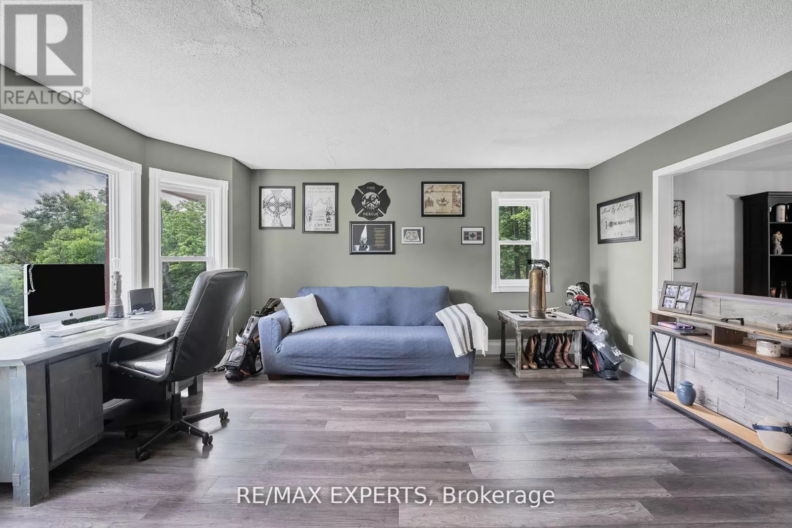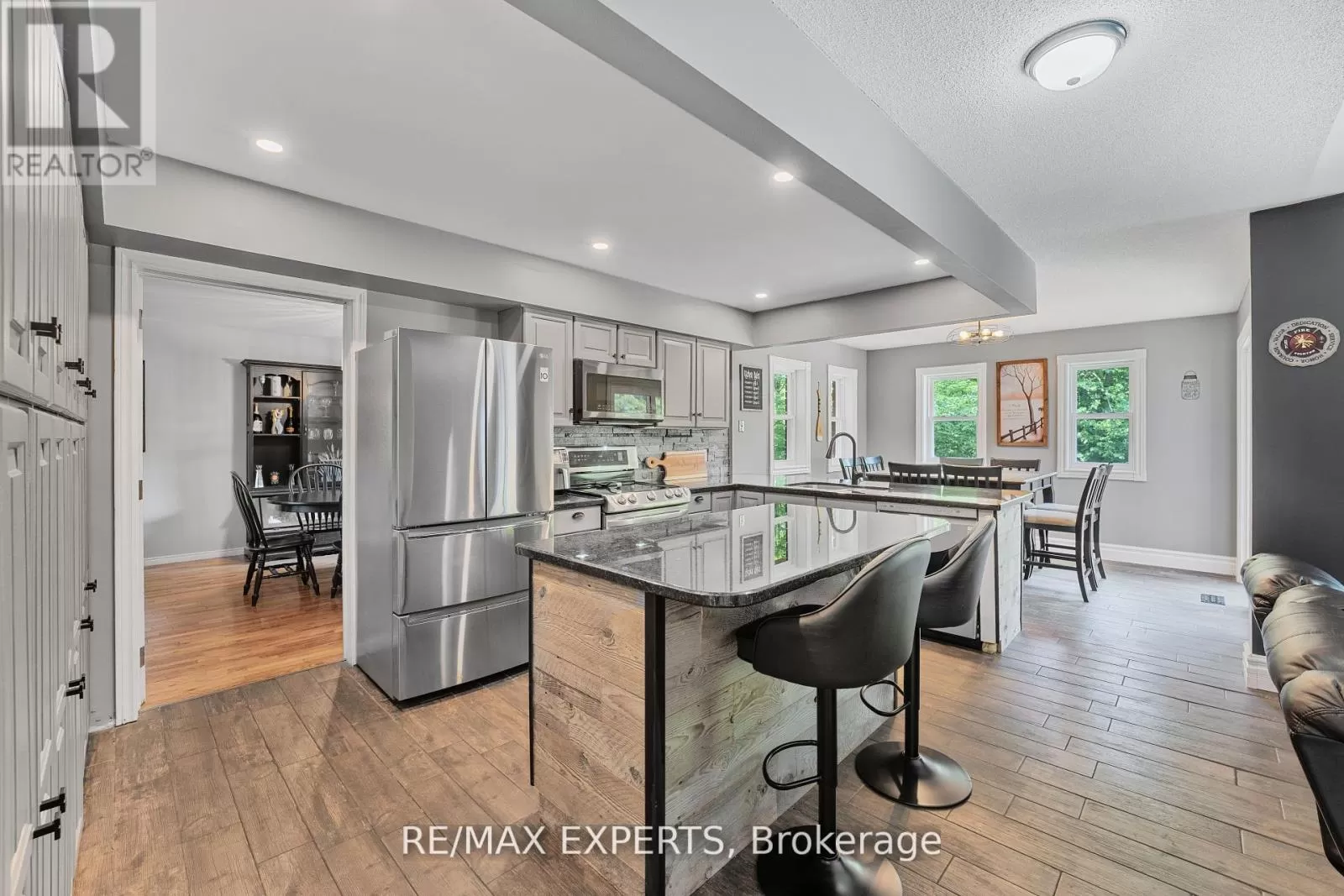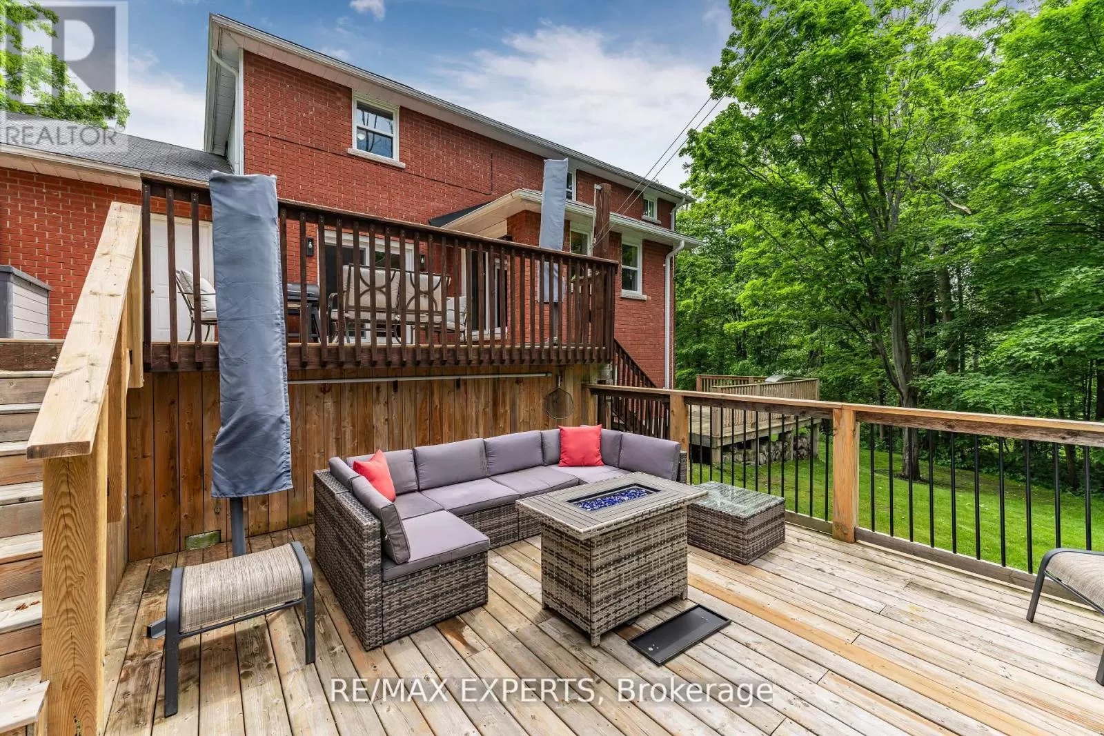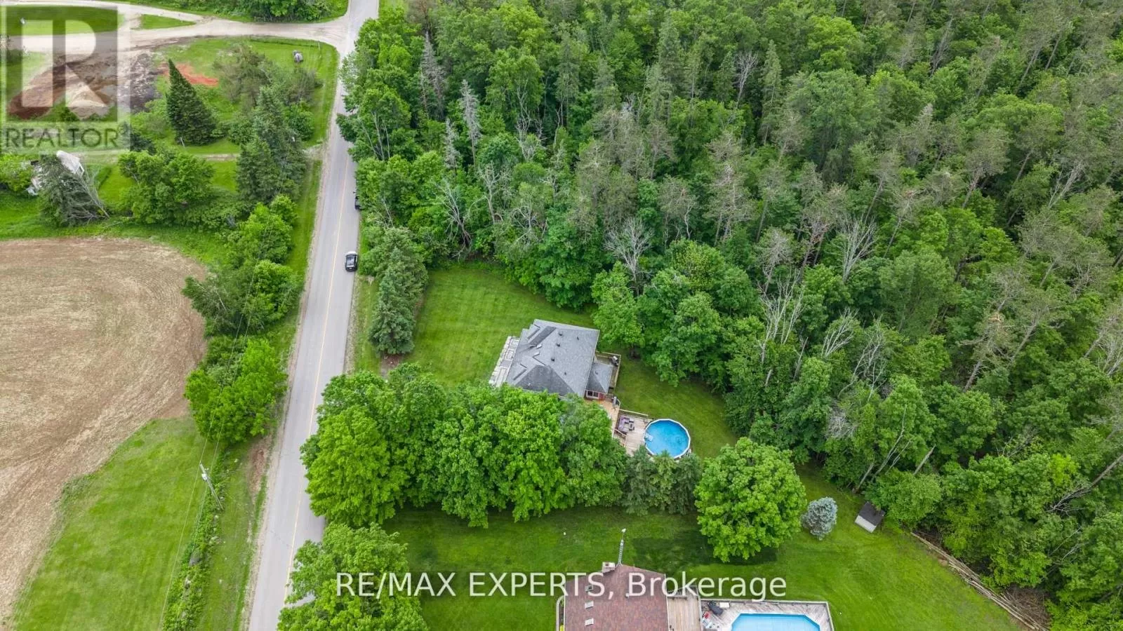 Moonstone/Scarlett Line Jump on in to your own private backyard pool surrounded by green space, complete with a full custom wraparound deck and entertaining area! This incredible home is situated on one of the best lots in the entire neighborhood. Backing and siding onto the Simcoe County Forest, you and your family are surrounded by peace, quiet and tranquility. Enjoy spending time with your family and friends entertaining in your sprawling and private back and front yard, complete with an above ground pool and integrated deck with gas fireplace and seating area, and children's playground. Step inside to a large well laid out floor plan, with a main floor office space, formal dining room, eat in kitchen with breakfast area overlooking the backyard, and sunken living room with walkout to your private deck. Upstairs you're greeted with 4 large bedrooms, the primary suite having a full 5 piece ensuite bath. Each bedroom has a generous sized closet and window that allows lots of natural light. The roof has 2 skylights installed for even more natural light to enter the home. The basement is completely finished, with a walkout, a kitchen, and a separate bedroom for income potential, or an in-law suite. Garage complete with workshop area for the man of the house! This home truly checks all the boxes. This is the home you can enjoy with your entire family and friends. Imagine all the memories you can make with your family running around and playing on this property. See Wildlife from your home. Deer can be seen from your bedroom windows! Neighbours nearby sell fresh eggs, meats, fruits vegetables and flowers, from farm to table! Total above ground square footage is 2546 plus the finished walkout basement. (id:27476)