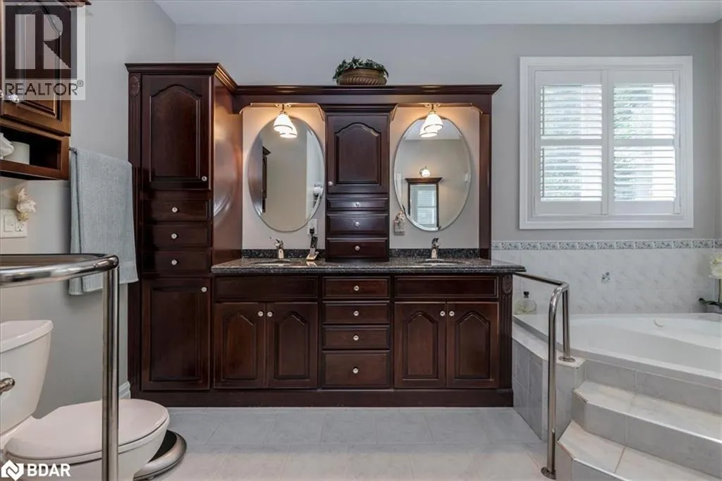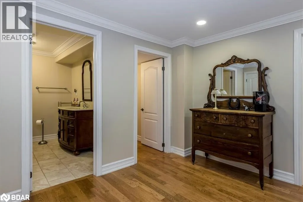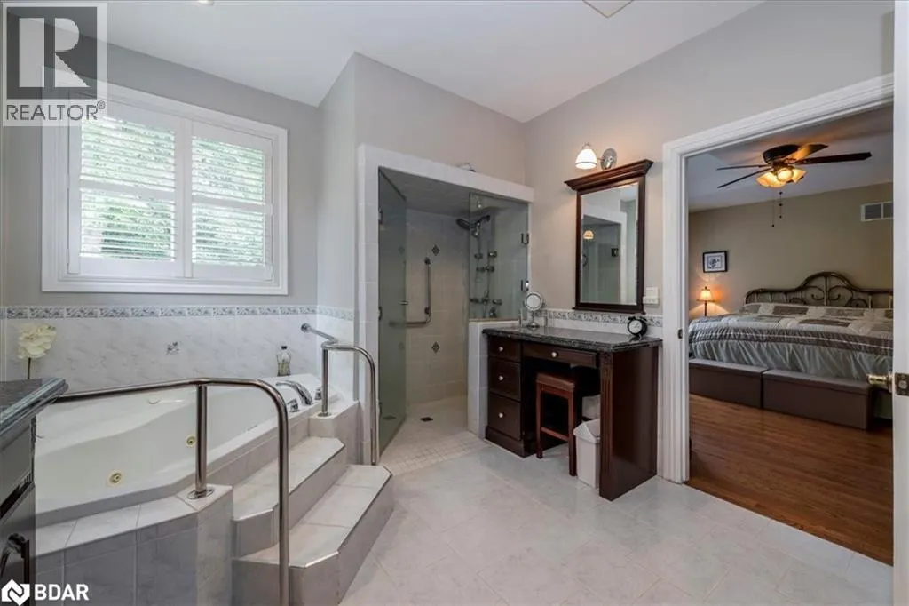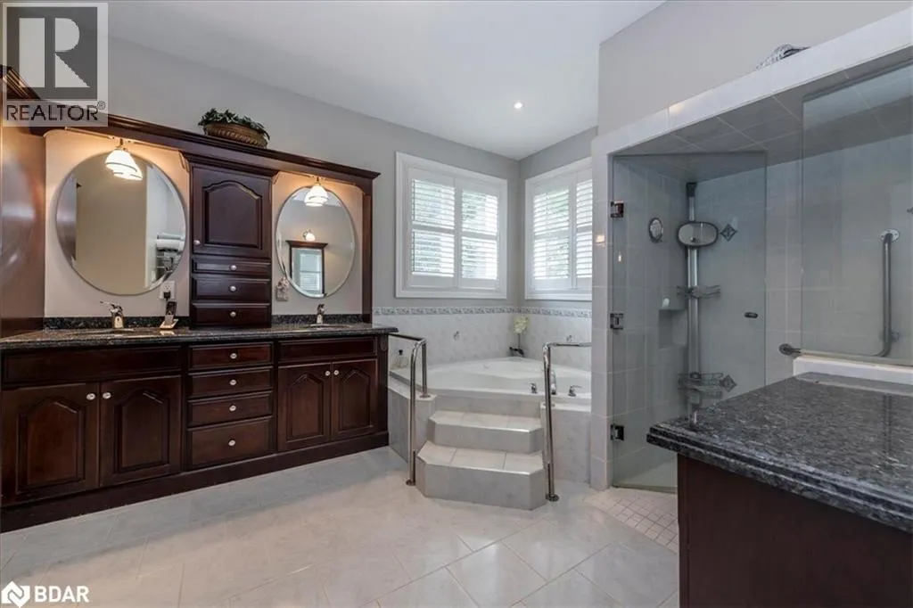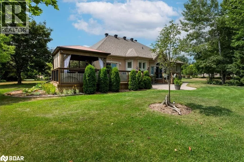 BAYFIELD TO GLEN ECHO RIGHT ON HEATHERWOOD Step into a world of elegance, comfort, and effortless luxury in this stunning executive bungalow, perfectly situated on a prominent corner lot with meticulously landscaped gardens. Combining sophisticated design with functional accessibility, this home offers soaring 9-foot ceilings, hardwood floors, crown moulding, and a vaulted great room that creates a warm and inviting atmosphere. The chef-inspired eat-in kitchen boasts granite countertops and walkout access to a spacious deck, ideal for entertaining, while a private deck off the primary suite provides a peaceful retreat. Designed with accessibility in mind, the home features extra-wide doors and hallways, a custom zero-barrier steam shower, and a Bruno vertical lift from the garage for seamless mobility. Additional highlights include a three-car side-facing garage, central vacuum, reverse osmosis water system, Generac generator, advanced air filtration, lead glass windows and a modern security system. The fully finished lower level offers a versatile in-law suite and a generous living area with a gas fireplace, perfect for extended family or guests. With excellent proximity to schools, a bus stop just steps away, and thoughtful upgrades throughout, this turnkey home is ready to welcome its next owners. Experience refined living, elegant design, and unmatched convenience in one exceptional residence. (id:27476)