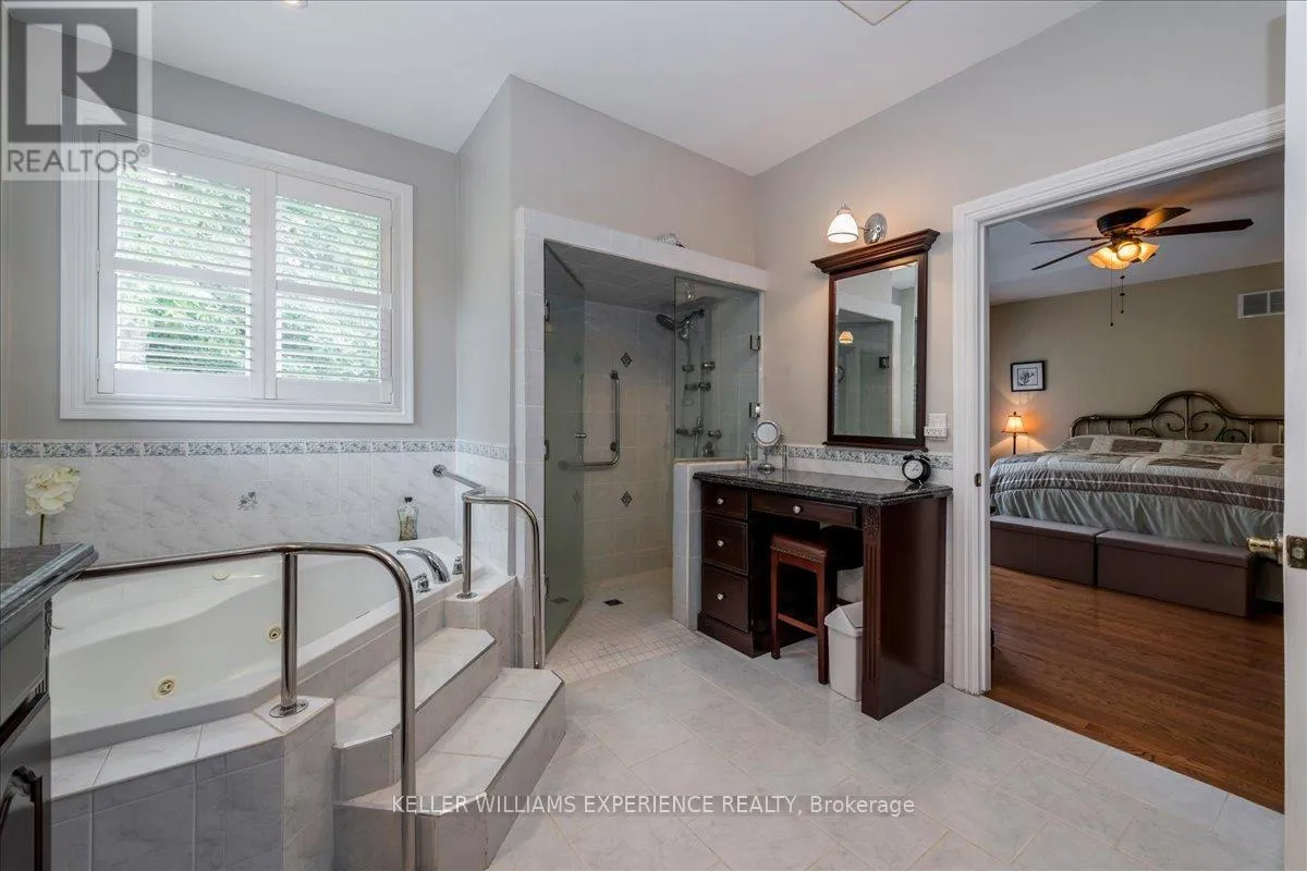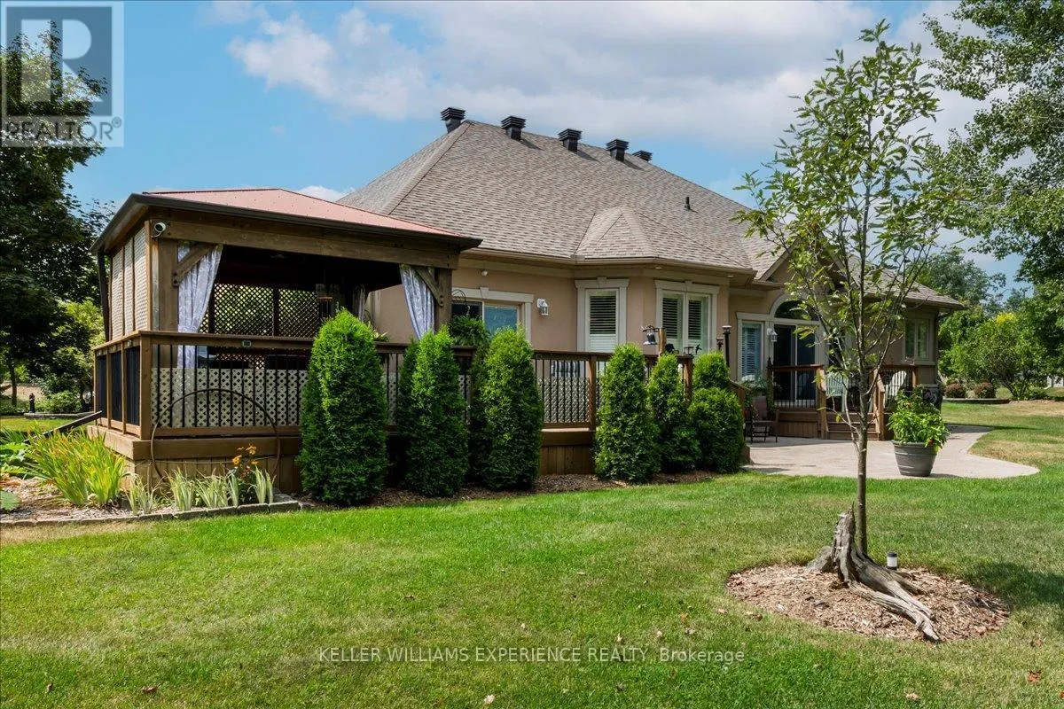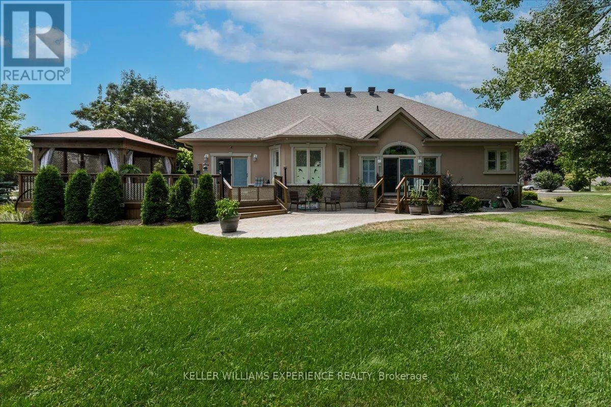 Cross Streets: Glen Echo/Heatherwood. ** Directions: Northbound on Bayfield turn right onto Glen Echo Dr. then another right onto Heatherwood Dr. Step into a world of elegance, comfort, and effortless luxury in this stunning executive bungalow, perfectly situated on a prominent corner lot with meticulously landscaped gardens. Combining sophisticated design with functional accessibility, this home offers soaring 9-foot ceilings, hardwood floors, crown moulding, and a vaulted great room that creates a warm and inviting atmosphere. The chef-inspired eat-in kitchen boasts granite countertops and walkout access to a spacious deck, ideal for entertaining, while a private deck off the primary suite provides a peaceful retreat. Designed with accessibility in mind, the home features extra-wide doors and hallways, a custom zero-barrier steam shower, and a Bruno vertical lift from the garage for seamless mobility. Additional highlights include a three-car side-facing garage, central vacuum, reverse osmosis water system, Generac generator, advanced air filtration, lead glass windows and a modern security system. The fully finished lower level offers a versatile in-law suite and a generous living area with a gas fireplace, perfect for extended family or guests. With excellent proximity to schools, a bus stop just steps away, and thoughtful upgrades throughout, this turnkey home is ready to welcome its next owners. Experience refined living, elegant design, and unmatched convenience in one exceptional residence. (id:27476)