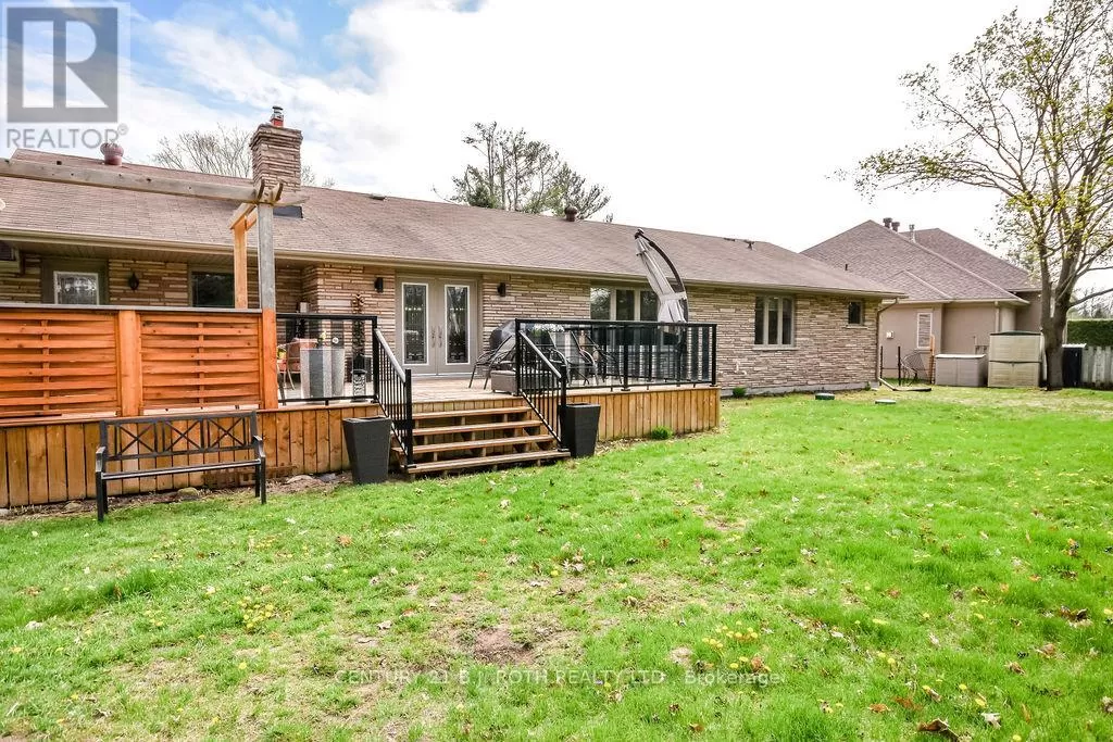St.Vincent To Noraline Ave Welcome to this beautiful ranch bungalow. As you pull up to the home, you are greeted with a large covered front porch and beautifully landscaped front yard. The home is on an oversized 140 x 280 ft irregular lot. Once you step inside, you are walking into an elegant style home. Hardwood floors, zebra blinds, a cozy gas fireplace, and large spacious rooms throughout. The kitchen is every chefs dream. With an oversized island, granite countertops, high end appliances, and an abundance of pantry and cupboard space. As you walk through the home, you will come across a therapeutic sauna, perfect to use to unwind, with a 3 piece bathroom. A beautiful dining room perfect for hosting, and a large and spacious family room, perfect for family gatherings. The primary bedroom is generously large with a walk-in closet and beautifully updated ensuite bathroom. The additional bedroom offers a walk in closet and a lovely ensuite bathroom as well. In the basement, you have a spacious rec room, large bedroom with a spacious closet, and a stunning 4 piece bathroom with a luxurious soaking tub. The basement offers a walk-up to the garage, and a rough-in for a kitchen, perfect for those looking for multi-generational capabilities. In the rear yard, the home boasts a generous rear wood deck with two entries into the home. Numerous mature trees offer beautiful views as well as lots of privacy. A must see! (id:27476)