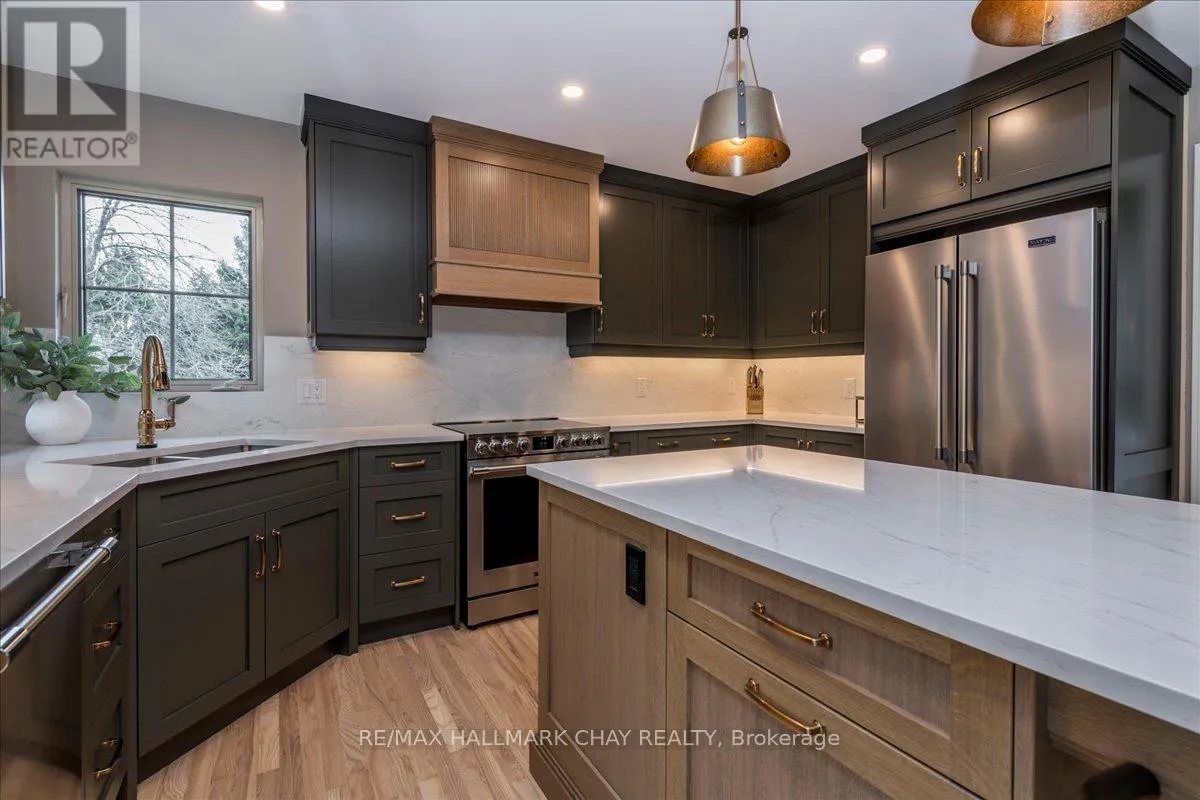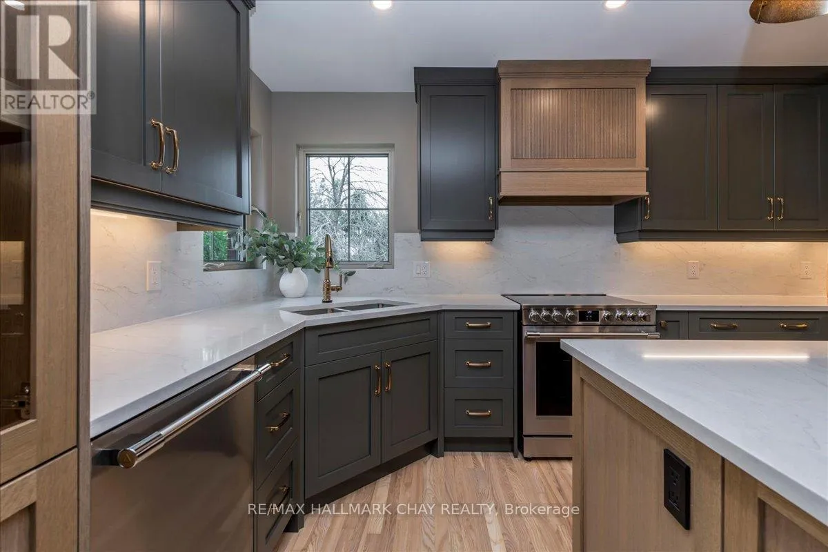 Cross Streets: HIGHWAY 27 TO DORAN TO MIDPARK TO FOREST HILL. ** Directions: DORAN TO FOREST HILL. Next-Level Living in Prestigious Midhurst! Welcome to Forest Hill Estates, where luxury, design, and comfort meet on a stunning 102 x 197 park-like lot. This beautifully updated 3+1 bed, 3 full bath home offers approximately 3309 finished sq-ft of exceptional living space, including a rare full-size triple car garagebig enough to fit a full-size truck or suv with ease. Step inside to a soaring main level with vaulted and cathedral ceilings, a grand entryway, and a layout thats both spacious and functional. Enjoy a formal dining room, cozy den/sitting room, convenient main floor laundry, and an open-concept living room with a gas fireplaceall flowing into a brand-new custom kitchen featuring rift-cut oak cabinetry, quartz countertops & backsplash, and top-tier appliances. Down the hall, discover 3 family-sized bedrooms, including a show-stopping primary suite with a custom walk-in closet and spa-inspired ensuite. Just a few steps up is a massive loft/rec roomperfect for a home office, playroom, or media space. The lower level offers in-law or income potential with a separate entrance from the garage, sizable bedroom, full bath, tons of storage, and ample space to finish to your taste. Outside, the fully fenced backyard oasis is lined with mature trees and features a newer deck with pet ramp, hot tub, irrigation system, and plenty of room to entertain or unwind. KEY UPGRADES: Custom Kitchen (cabinets, quartz, backsplash, lighting & select appliances). Refinished hardwood floors. Berber carpet (bedrooms, hall, loft, 2 staircases). Loft fireplace surround. Interior & exterior doors. Exterior stonework, front steps & walkway. Soffits, eaves & downspouts. Furnace, lighting, & fresh paint throughout. Ensuite & basement bath renos. Garage doors & washer/dryer. Located in one of Midhursts most sought-after, upscale communities, just minutes to top schools, parks, trails, and all major amenities. This home is the total package theres nothing else like it! (id:27476)