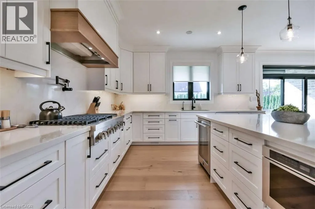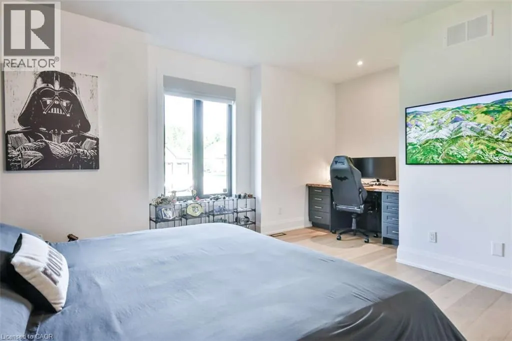 From Highway 400N Barrie, exit to Bayfield St North, take left on Carson Rd, cross roundabout onto Seadon Rd, take right on Byers Crt, take right on Glenna Tr, take right on Morrison Place. For more info on this property, please click the Brochure button. Luxury meets lifestyle in this 5,750 sq. ft. custom home located in the highly sought after Cameron Estates community, beside Vespra Hills Golf Course & steps to Snow Valley Ski Resort. Set on a premium corner lot with an oversized 100' x 60' backyard & 128 mature cedars for privacy, this property offers over $500K in recent upgrades. Main floor features an open-concept chef's kitchen (JennAir & Dacor appliances), 63 inch gas fireplace, home office, laundry/mudroom & 3 spacious bedrooms each with ensuite & walk-in closet. The luxury basement includes a spa-inspired steam room, gym, guest suite, designer 4 queen bunk bed room, living room, game room and office - all with heated floors. Car enthusiasts will love the oversized 5 vehicle 1,603 sq. ft. heated garage with epoxy floors, massive storage, EV wiring ready, basement access and garage door to the backyard. Smart home tech includes whole-home audio system w/ 14 zones, 7 Sonos amps and 37 speakers, remote blinds, 7-camera security & Bell Fiber internet. Spacious covered deck, complete with rough-ins for gas and electrical - ready for your BBQ, heater, or future upgrades. Equipped with a full lawn irrigation system for easy maintenance. This is truly a true 4-season retreat. Don't wait, this one won't last long! (id:27476)