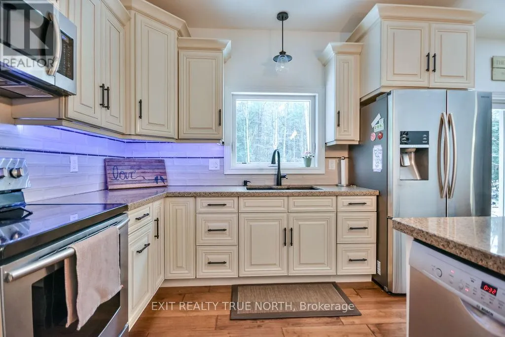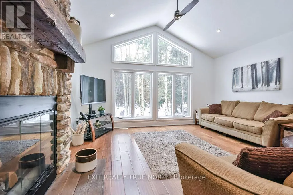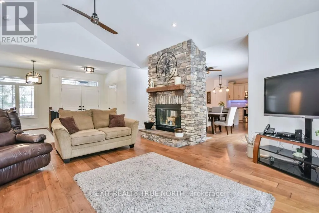 Cross Streets: Flos Rd 4 E/Marni Ln. ** Directions: Bayfield St/Hwy 27 W to Flos Rd 4 E to Marni Ln. Welcome to 22 Marni Lane in peaceful Fergusonvale Estatesan exceptional 3+1 bedroom, 2 bathroom bungalow nestled on a private 2-acre lot in this executive neighbourhood. This home offers a warm and inviting layout with a vaulted ceiling in the living room and a stunning double-sided fireplace creating a cozy ambience. The spacious primary bedroom features a private ensuite and walk-in closet, while the oversized triple car garage includes a separate entrance to a partially finished basement, with rec room, additional bedroom and future additionalbathroom. Enjoy the expansive backyard surrounded by nature, perfect for relaxing or entertaining and equipped with a full irrigation system. Stay connected with Bell Fibe internet, convenient highway access to the GTA, and just minutes from Barrie, skiing, golf, and scenic trails. Property allows for the construction of a 1500 sqft shop. (id:27476)