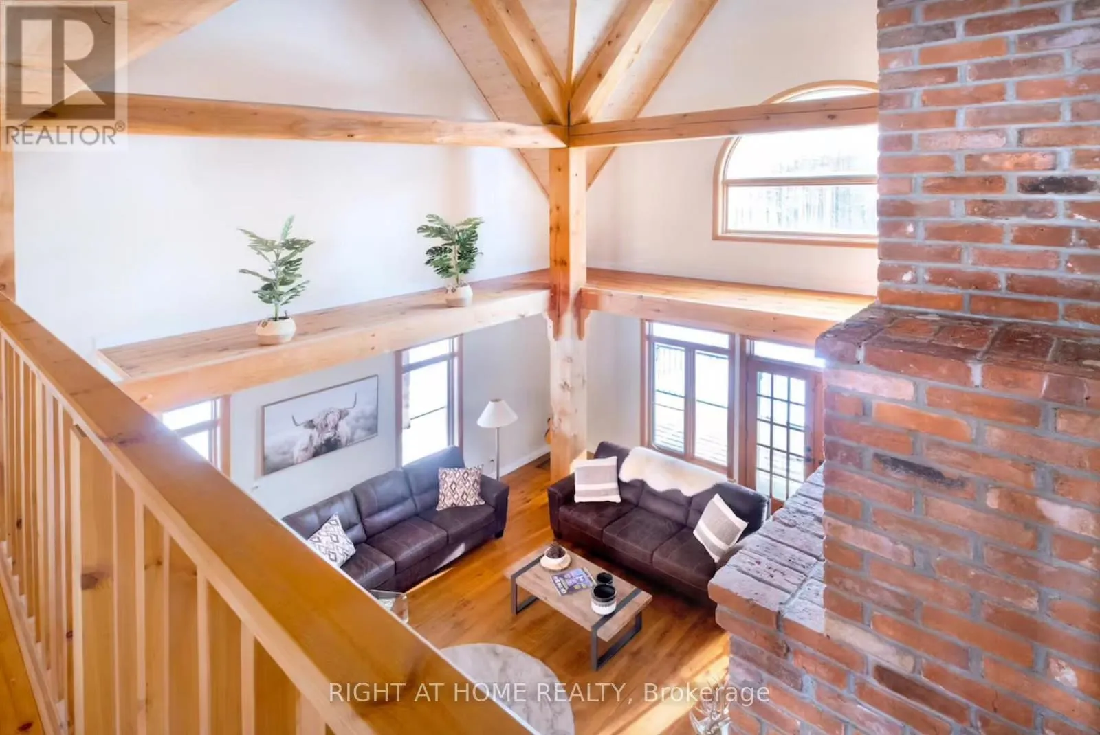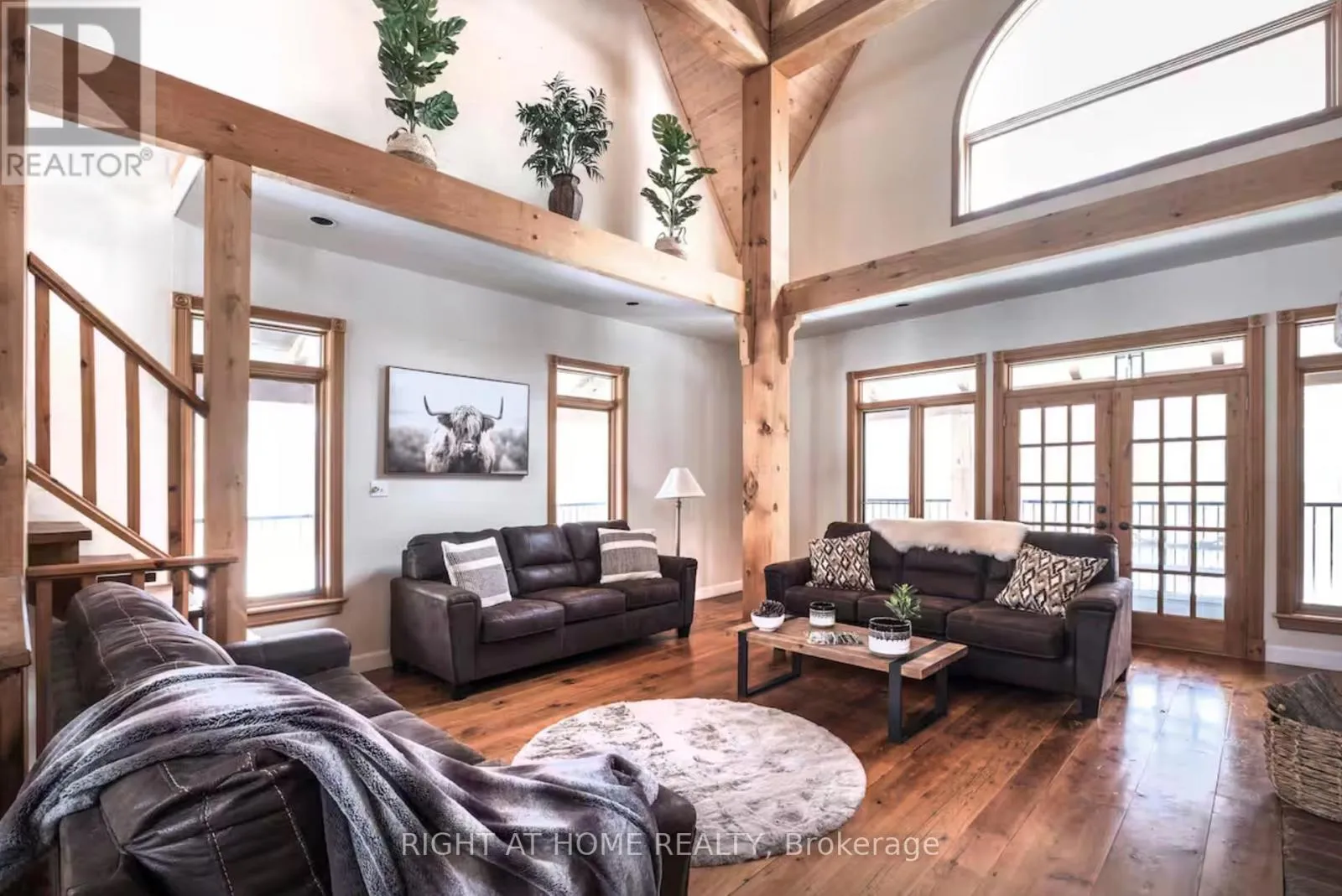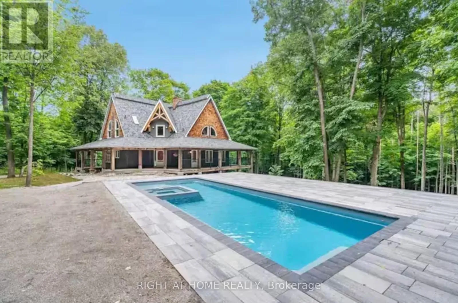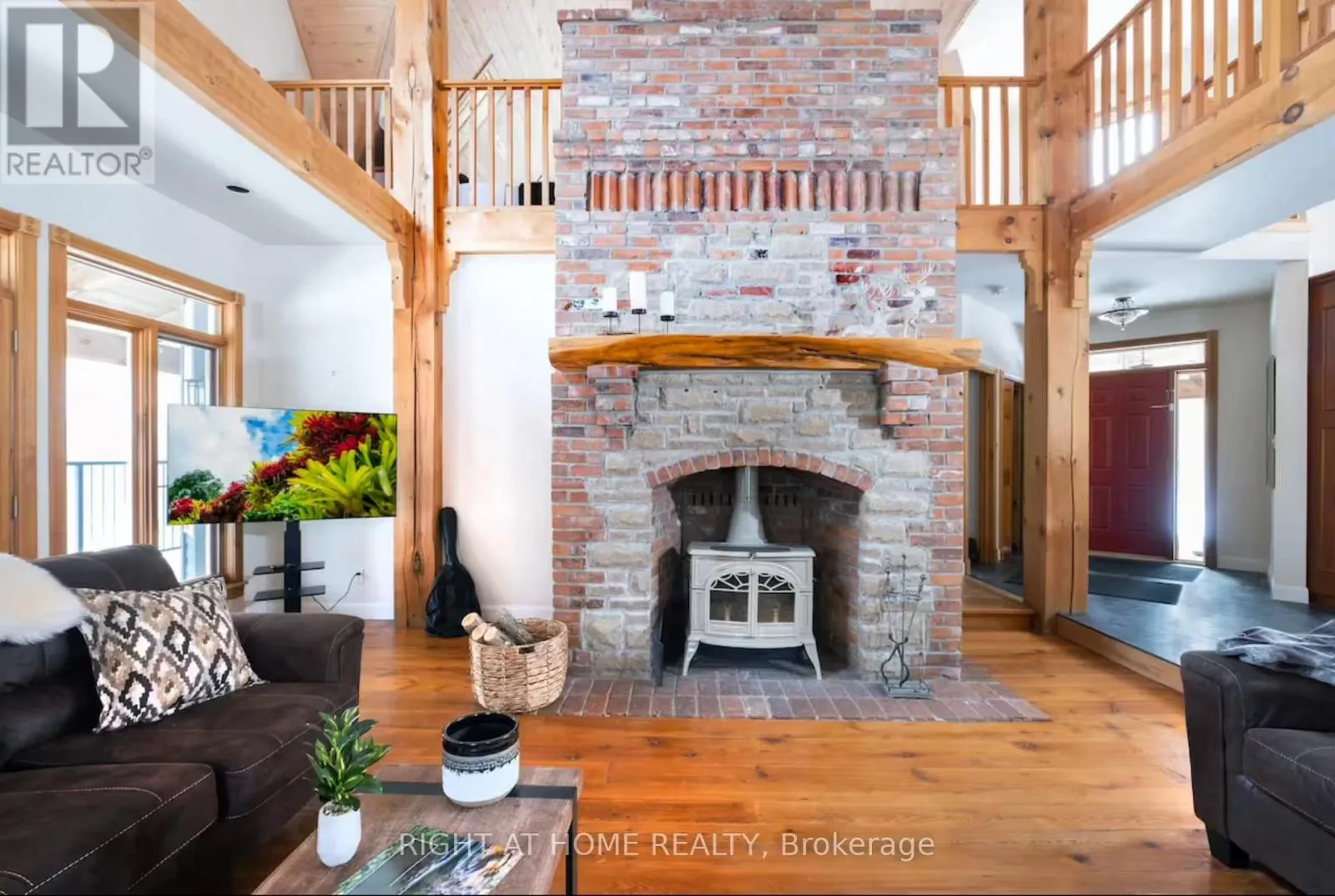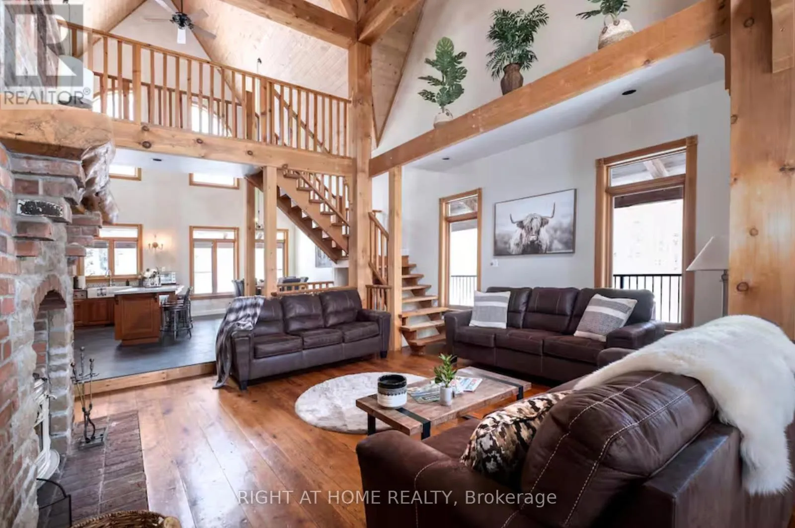 Atkinson and hwy26 Welcome to this secluded custom Timberframe retreat, set on nearly 100 acres of pristine land surrounded by mature trees, farmland, and a tranquil pond. This architectural gem showcases soaring 28 ceilings, a dramatic floor-to-ceiling fireplace, and an open-concept layout filled with natural light. The main floor offers a spacious bedroom and mudroom with shower, while the loft-style primary suite boasts an 18 ceiling and skylights. A 1,300 sq. ft. wraparound deck extends the living space outdoors, leading to a true backyard oasis complete with a newer inground pool (2021) and hot tub.With 3,328 finished square feet, the fully finished walkout basement provides excellent in-law suite potential, featuring two additional bedrooms, a large recreation room, office, bathroom, and the option for a second kitchen. This property offers endless lifestyle and investment opportunities whether as a private family retreat, a short-term rental destination, or future development potential. Just minutes from Wasaga Beach and a short drive to Barrie and Collingwood, this is a rare chance to live in your own private paradise while securing an exceptional long-term investment. (id:27476)