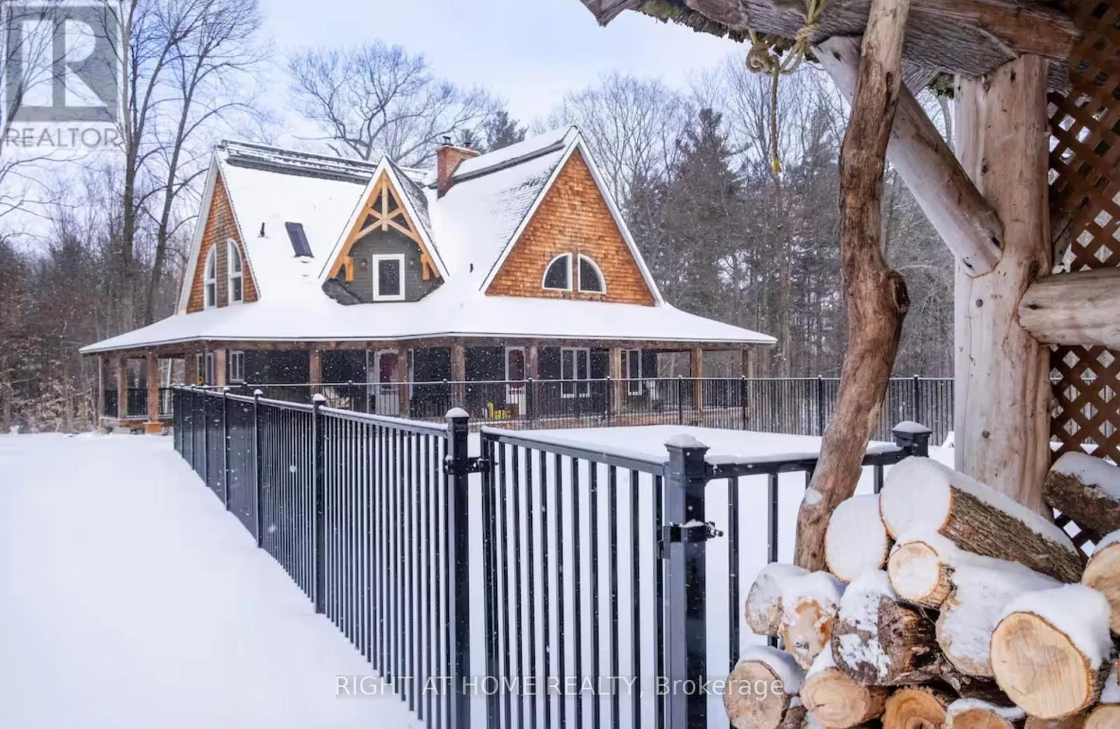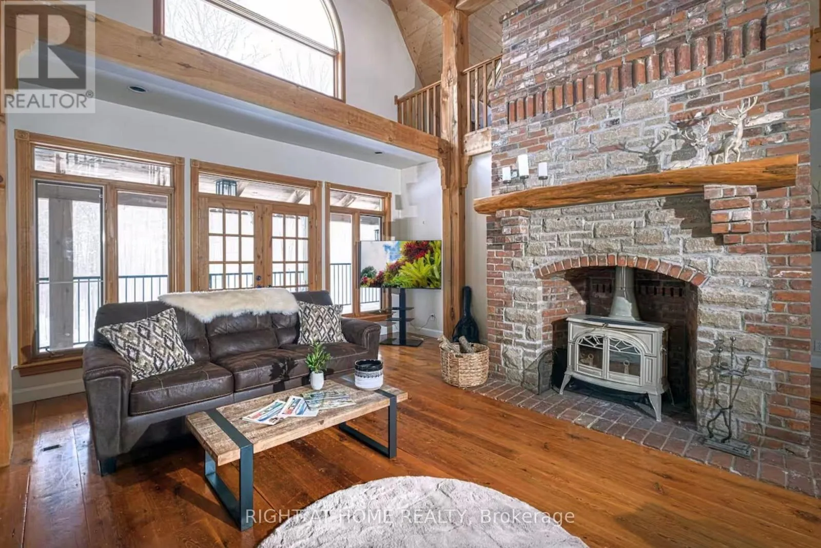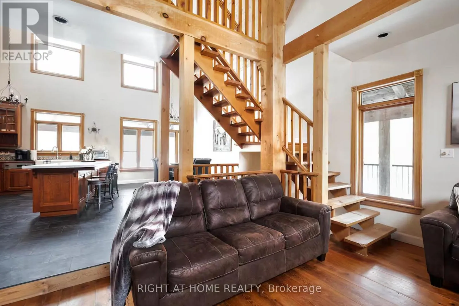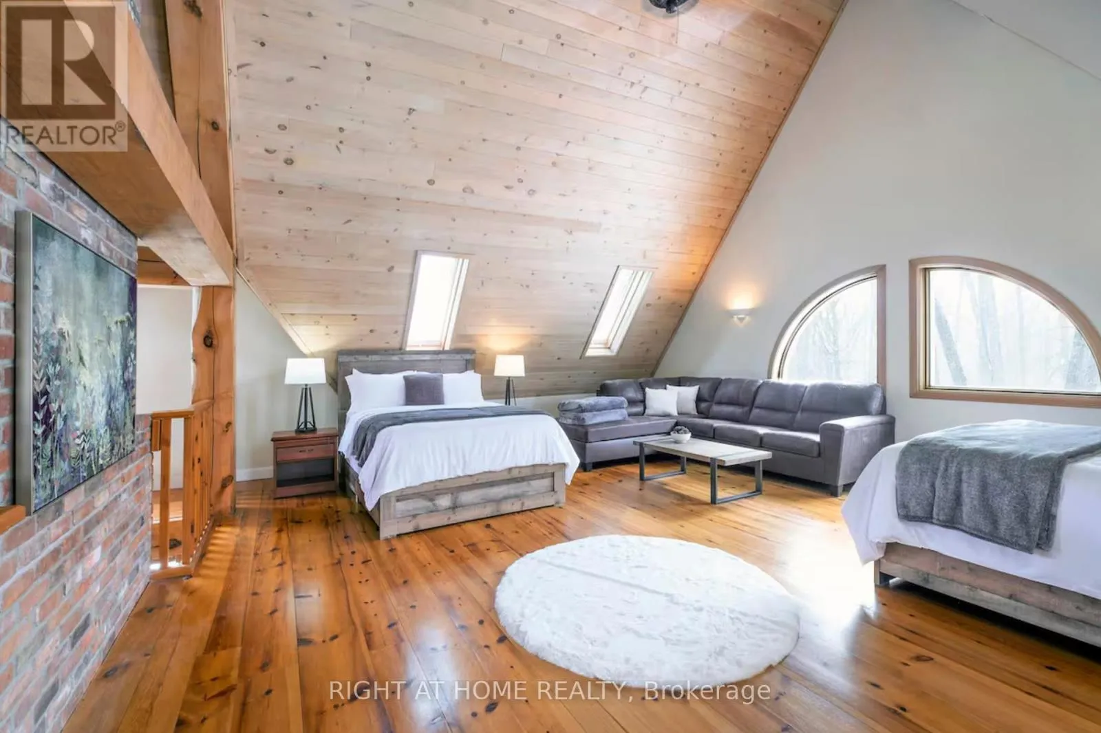 Atkinson and hwy26 Welcome to this secluded custom Timberframe retreat, set on nearly 100 acres of pristine land surrounded by mature trees, farmland, and a tranquil pond. This architectural gem showcases soaring 28 ceilings, a dramatic floor-to-ceiling fireplace, and an open-concept layout filled with natural light. The main floor offers a spacious bedroom and mudroom with shower, while the loft-style primary suite boasts an 18 ceiling and skylights. A 1,300 sq. ft. wraparound deck extends the living space outdoors, leading to a true backyard oasis complete with a newer inground pool (2021) and hot tub.With 3,328 finished square feet, the fully finished walkout basement provides excellent in-law suite potential, featuring two additional bedrooms, a large recreation room, office, bathroom, and the option for a second kitchen. This property offers endless lifestyle and investment opportunities whether as a private family retreat, a short-term rental destination, or future development potential. Just minutes from Wasaga Beach and a short drive to Barrie and Collingwood, this is a rare chance to live in your own private paradise while securing an exceptional long-term investment. (id:27476)