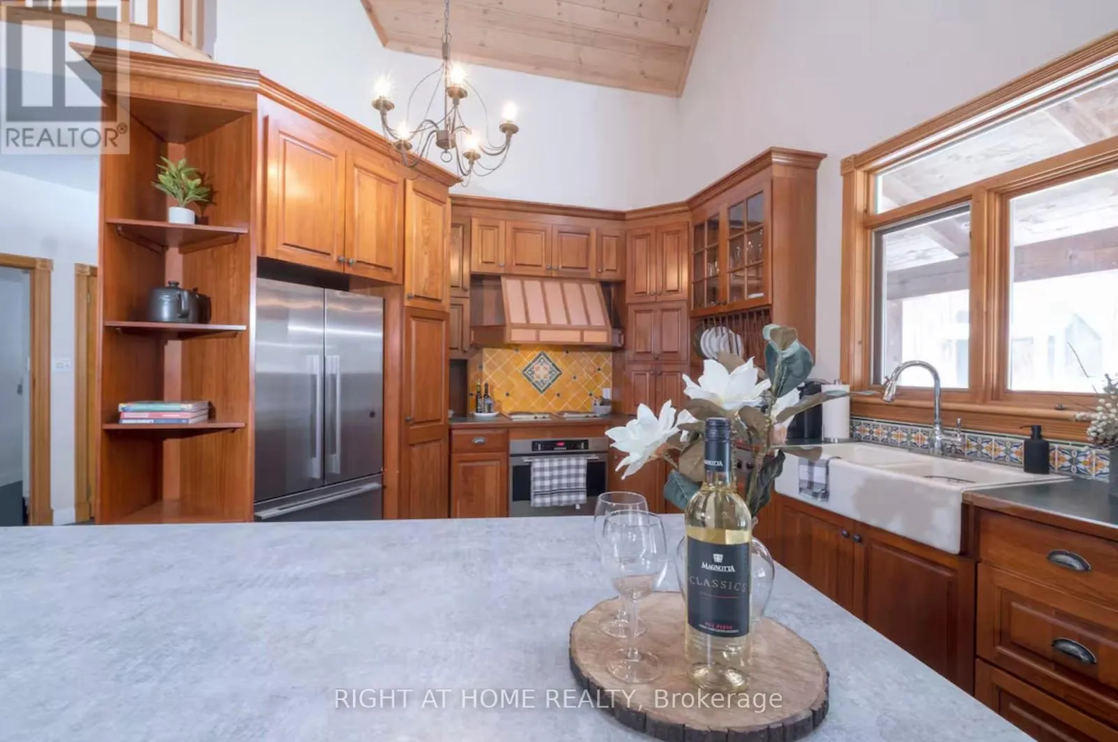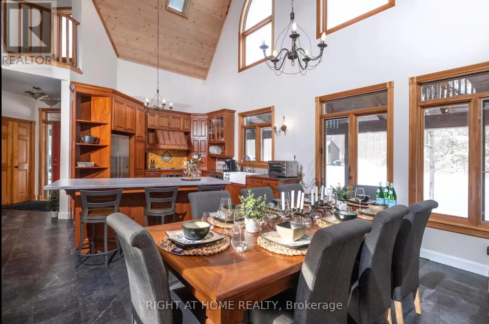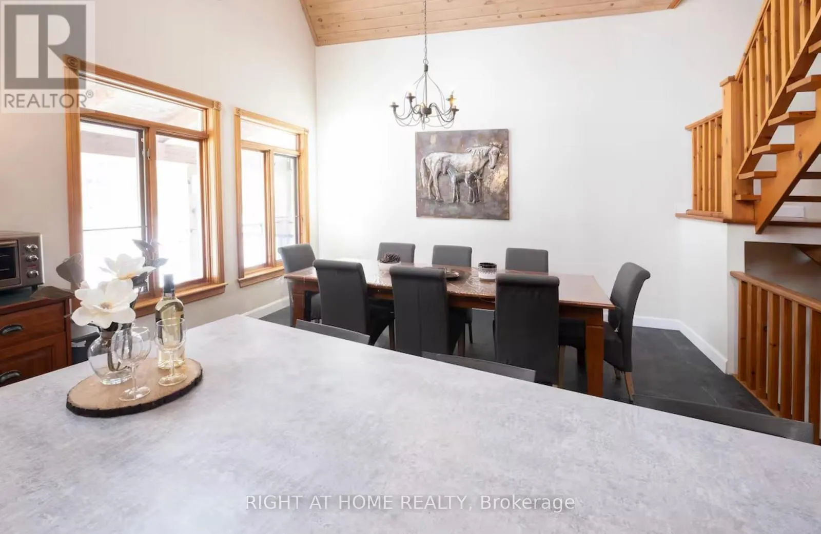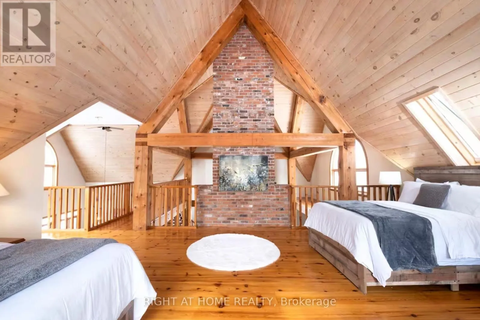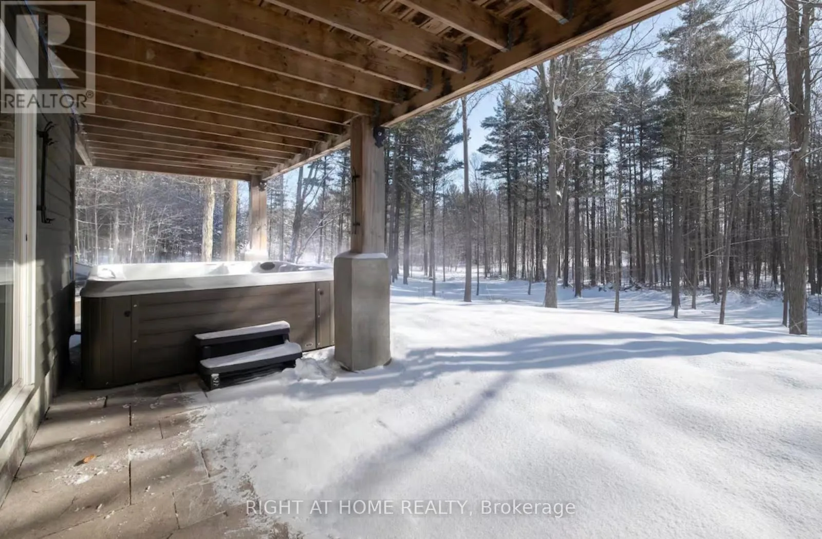 Atkinson and hwy26 Welcome to this secluded custom Timberframe retreat, set on nearly 100 acres of pristine land surrounded by mature trees, farmland, and a tranquil pond. This architectural gem showcases soaring 28 ceilings, a dramatic floor-to-ceiling fireplace, and an open-concept layout filled with natural light. The main floor offers a spacious bedroom and mudroom with shower, while the loft-style primary suite boasts an 18 ceiling and skylights. A 1,300 sq. ft. wraparound deck extends the living space outdoors, leading to a true backyard oasis complete with a newer inground pool (2021) and hot tub.With 3,328 finished square feet, the fully finished walkout basement provides excellent in-law suite potential, featuring two additional bedrooms, a large recreation room, office, bathroom, and the option for a second kitchen. This property offers endless lifestyle and investment opportunities whether as a private family retreat, a short-term rental destination, or future development potential. Just minutes from Wasaga Beach and a short drive to Barrie and Collingwood, this is a rare chance to live in your own private paradise while securing an exceptional long-term investment. (id:27476)