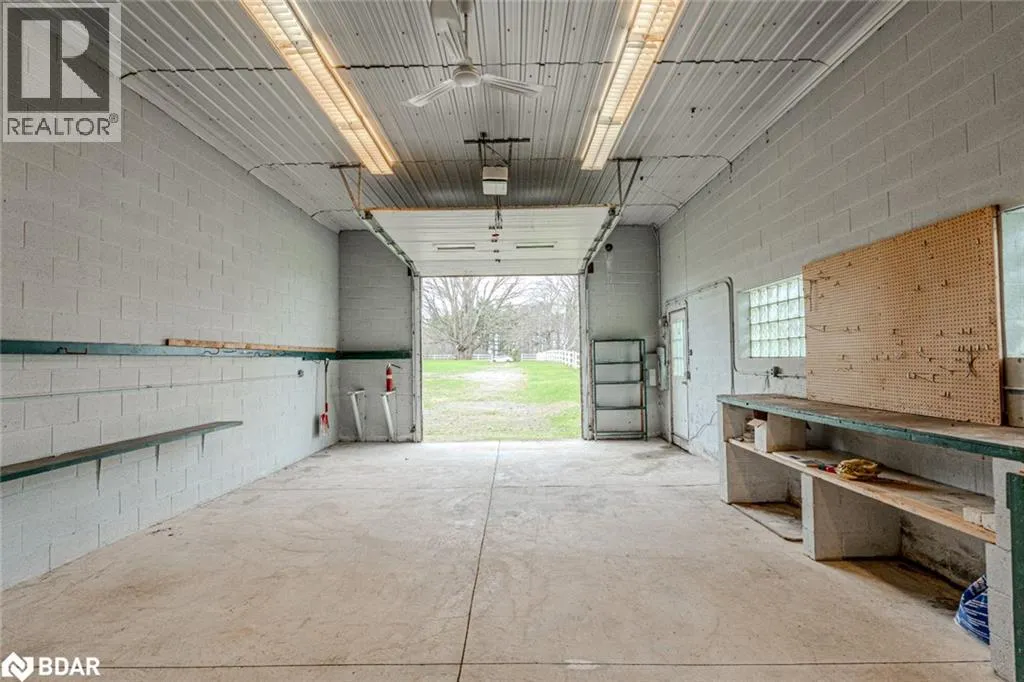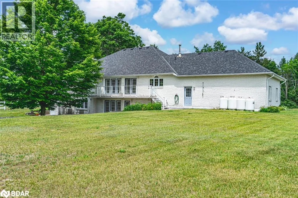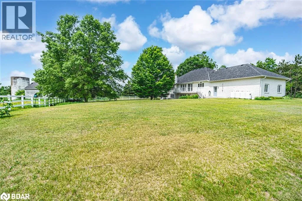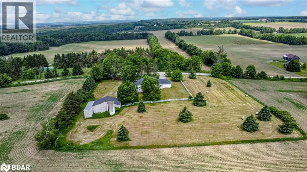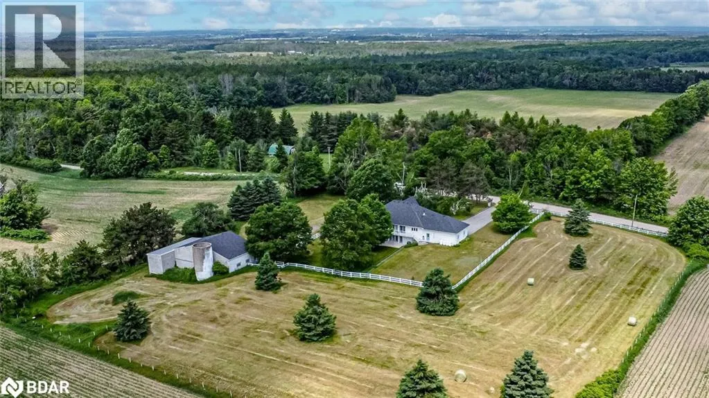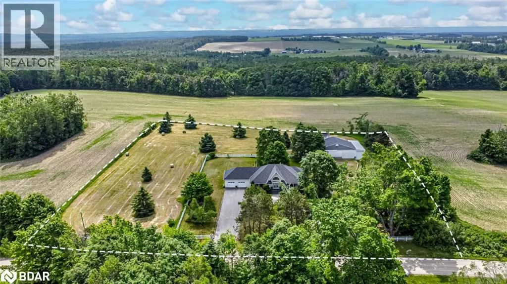 Hwy 27 North to Flos Rd 3 East BEAUTIFUL ESTATE ON NEARLY 3.5 ACRES WITH OVER 3,800 FINISHED SQ FT, DREAM SHOP & GARAGE, PLUS IN-LAW POTENTIAL! Get ready to fall in love with this beautiful estate, perfectly situated on nearly 3.5 acres under 15 mins to Barrie, Elmvale and Highway 400. Located across from the Toner Tract Trail and close to skiing, golfing, beaches, shopping, and a hospital, this property offers peaceful living without sacrificing convenience. This home showcases over 3,800 sq ft of finished living space with oversized windows, hardwood floors, crown moulding and timeless finishes. A grand front foyer welcomes you with a 15 ft arched ceiling, winding staircase and dual closets. The open-concept kitchen features a large island with a breakfast bar and ample cabinetry flowing into a great room with a walkout to a balcony with a glass railing. Host in style in the separate dining room that comfortably seats up to 10. The primary bedroom includes two walk-in closets, access to an enclosed porch, and a 5-piece ensuite. The finished walkout basement offers a self-contained unit with a kitchen, rec room with fireplace, 2 bedrooms, office, den, two full bathrooms and storage - ideal for multi-generational living. The attached 30 ft x 24.5 ft 2-car garage includes 11 ft ceilings, interior access, a backyard man door and automatic openers. A 2,500 sq ft detached garage/shop with three separate bays: (1) a heated 700 sq ft workshop with a 10 ft x 10 ft roll-up door, man door, 100 amp panel and workbench (2) a nearly 1,200 sq ft bay with 17 ft wide barn-style doors and 12.5 ft clearance with a 300 sq ft overhead storage loft and (3) a 600 sq ft bay measuring 13 ft x 46 ft with an 11 ft x 13.5 ft roll-up door and 14.5 ft ceilings. Zoning May Permit Home Industry, Home Occupation & Other Uses With Applicable Permits & Municipal Approval. Updated furnace, A/C, shingles, 200 amp service to the home, a 100 amp panel for the shop, some newer appliances and custom window treatments. (id:27476)