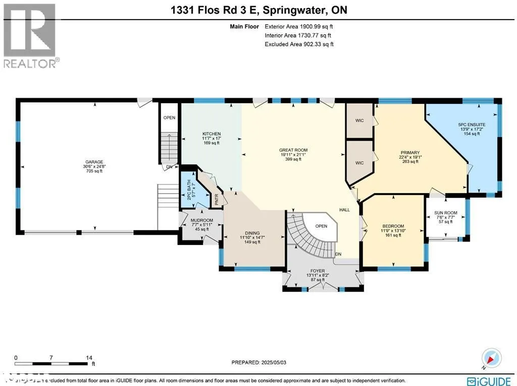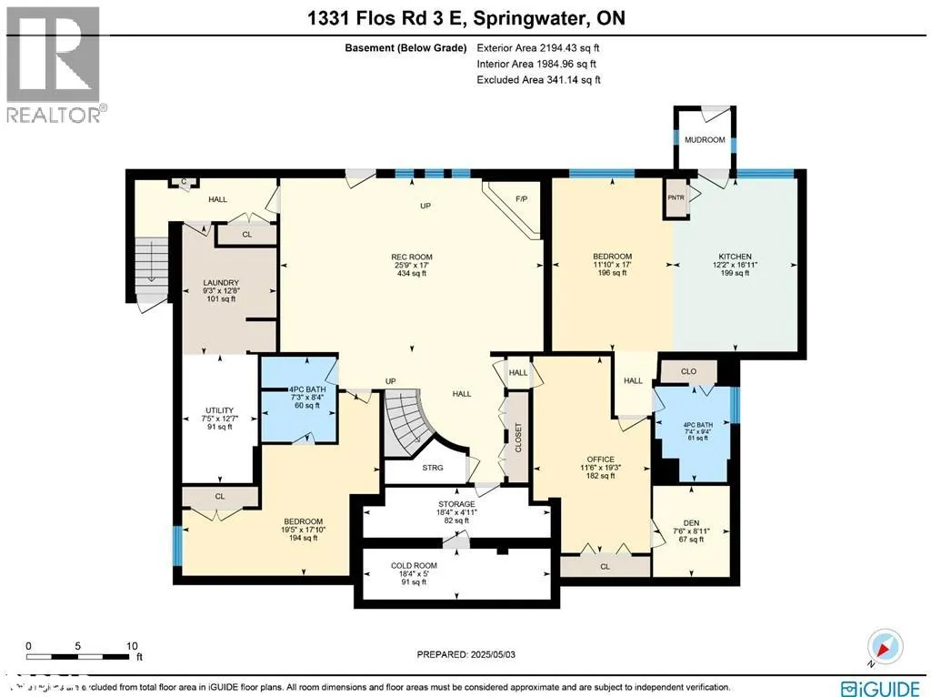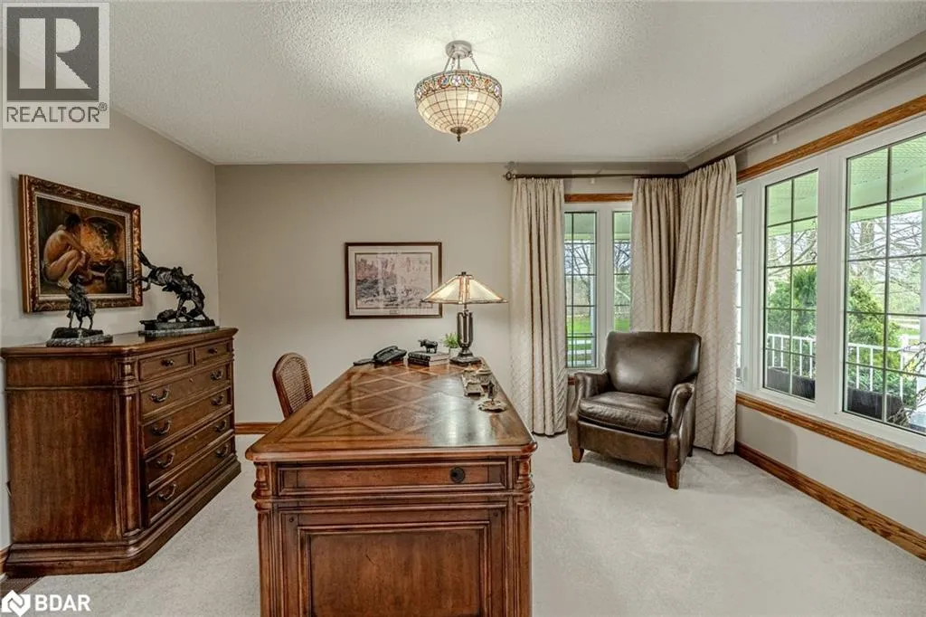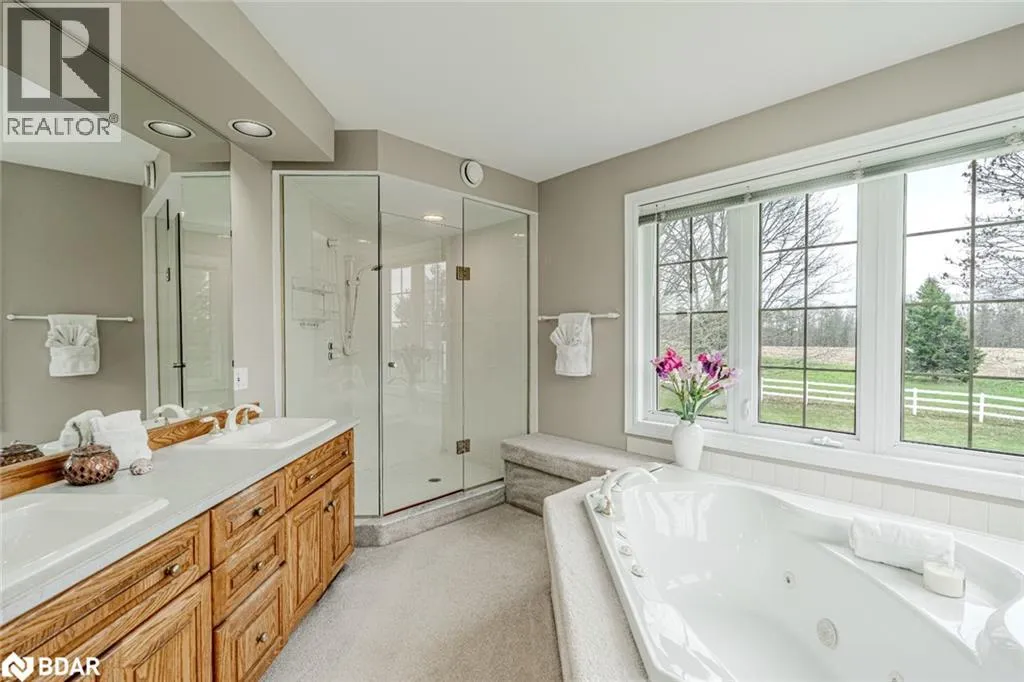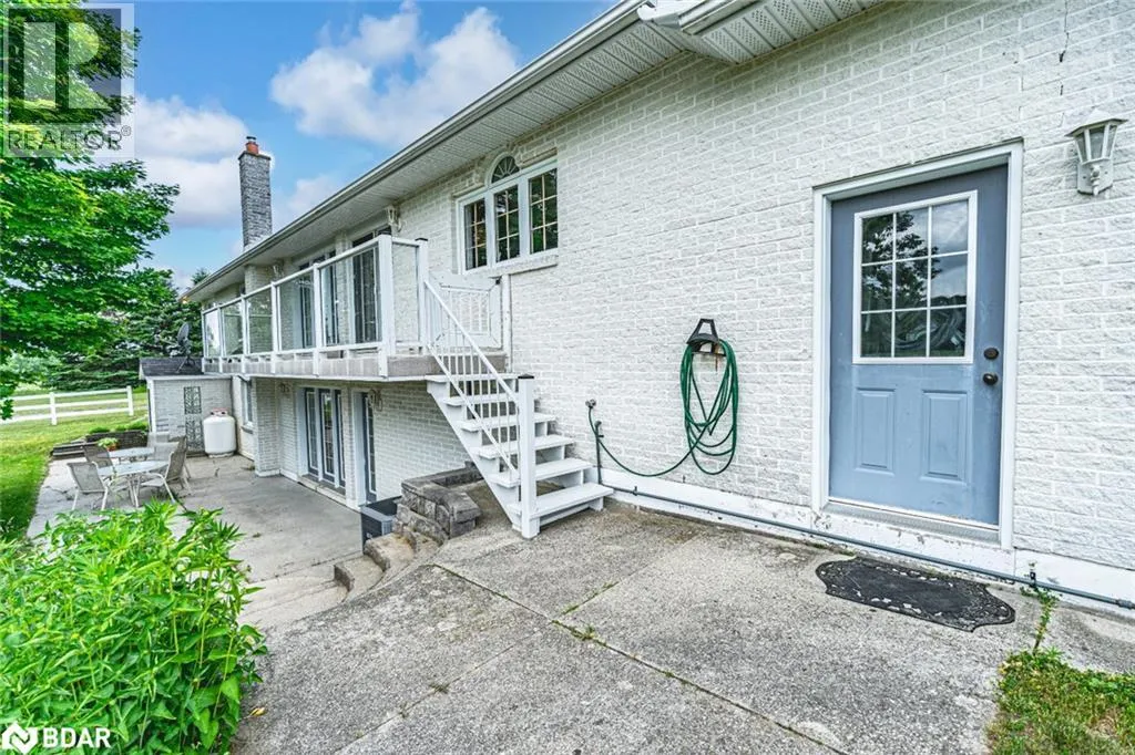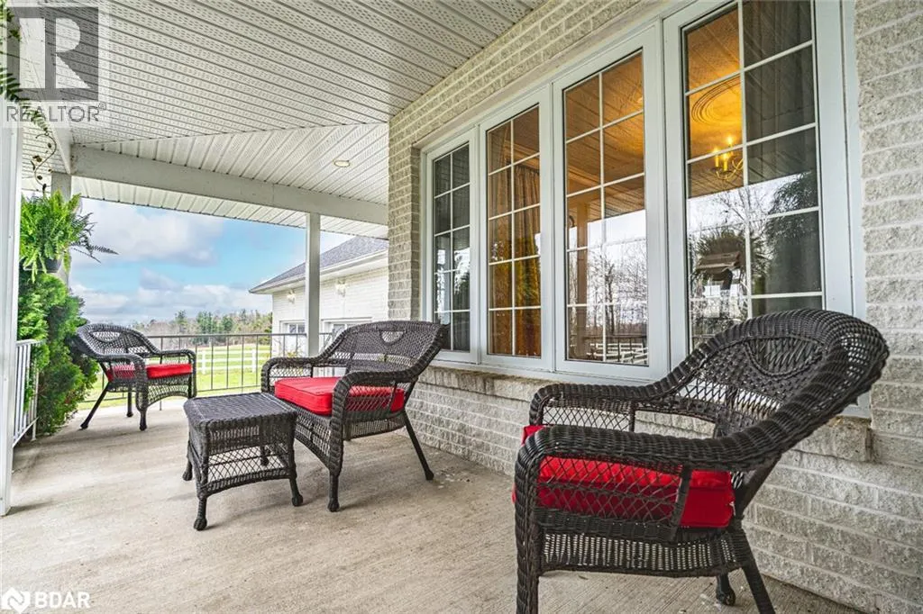 Hwy 27 North to Flos Rd 3 East BEAUTIFUL ESTATE ON NEARLY 3.5 ACRES WITH OVER 3,800 FINISHED SQ FT, DREAM SHOP & GARAGE, PLUS IN-LAW POTENTIAL! Get ready to fall in love with this beautiful estate, perfectly situated on nearly 3.5 acres under 15 mins to Barrie, Elmvale and Highway 400. Located across from the Toner Tract Trail and close to skiing, golfing, beaches, shopping, and a hospital, this property offers peaceful living without sacrificing convenience. This home showcases over 3,800 sq ft of finished living space with oversized windows, hardwood floors, crown moulding and timeless finishes. A grand front foyer welcomes you with a 15 ft arched ceiling, winding staircase and dual closets. The open-concept kitchen features a large island with a breakfast bar and ample cabinetry flowing into a great room with a walkout to a balcony with a glass railing. Host in style in the separate dining room that comfortably seats up to 10. The primary bedroom includes two walk-in closets, access to an enclosed porch, and a 5-piece ensuite. The finished walkout basement offers a self-contained unit with a kitchen, rec room with fireplace, 2 bedrooms, office, den, two full bathrooms and storage - ideal for multi-generational living. The attached 30 ft x 24.5 ft 2-car garage includes 11 ft ceilings, interior access, a backyard man door and automatic openers. A 2,500 sq ft detached garage/shop with three separate bays: (1) a heated 700 sq ft workshop with a 10 ft x 10 ft roll-up door, man door, 100 amp panel and workbench (2) a nearly 1,200 sq ft bay with 17 ft wide barn-style doors and 12.5 ft clearance with a 300 sq ft overhead storage loft and (3) a 600 sq ft bay measuring 13 ft x 46 ft with an 11 ft x 13.5 ft roll-up door and 14.5 ft ceilings. Zoning May Permit Home Industry, Home Occupation & Other Uses With Applicable Permits & Municipal Approval. Updated furnace, A/C, shingles, 200 amp service to the home, a 100 amp panel for the shop, some newer appliances and custom window treatments. (id:27476)