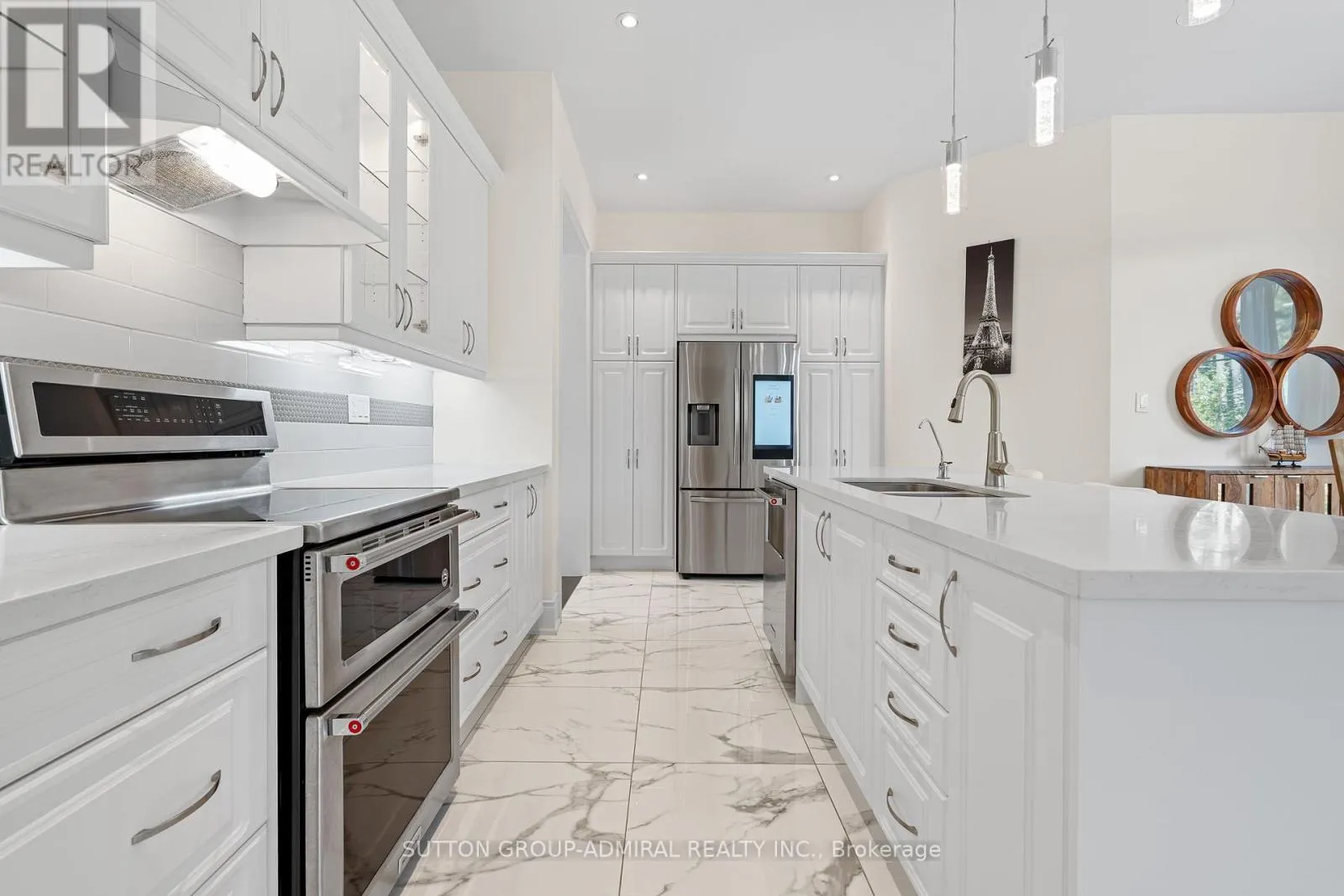 Victoria Wood Ave / Redmond Cres Welcome to 1 Redmond Crescent in Springwater an executive residence on a premium ravine lot backing onto mature trees. This nearly new home is loaded with upgrades you won't find elsewhere. Soaring 10ft ceilings on the main level (with a breathtaking 20ft vaulted great room) and a wall of oversized windows flood the open concept living space with natural light. The gourmet kitchen, complete with centre island, overlooks the living and dining areas and walks out to a composite deck and fully fenced yard. Professional landscaping includes an automatic irrigation system with rain sensors, and a rare composite fence for low maintenance privacy.Main floor primary retreat with a spa-like ensuite; two additional generous bedrooms upstairs plus a dedicated office provide plenty of space. Gleaming hardwood floors run throughout, while 9ft ceilings continue on the second level and even in the bright 9ft basement, ready for your finishing touches. Additional features include a whole home natural gas generator to back up the electrical supply, central vacuum, and custom window packages.. The Township of Springwater offers breathtaking views, fresh air and expansive outdoor spaces; charming homes are surrounded by peaceful wood lots and rolling farmland, yet you're just minutes to Snow Valley Ski Resort, walking trails, parks and schools, with easy access to Hwy 400 and the amenities of Barrie. This is a rare opportunity to own a customized, ravine lot home in one of Springwaters most desirable communities a place to relax and enjoy the simple pleasures of country life. Total Finished Sq Ft: ~4,500 (id:27476)