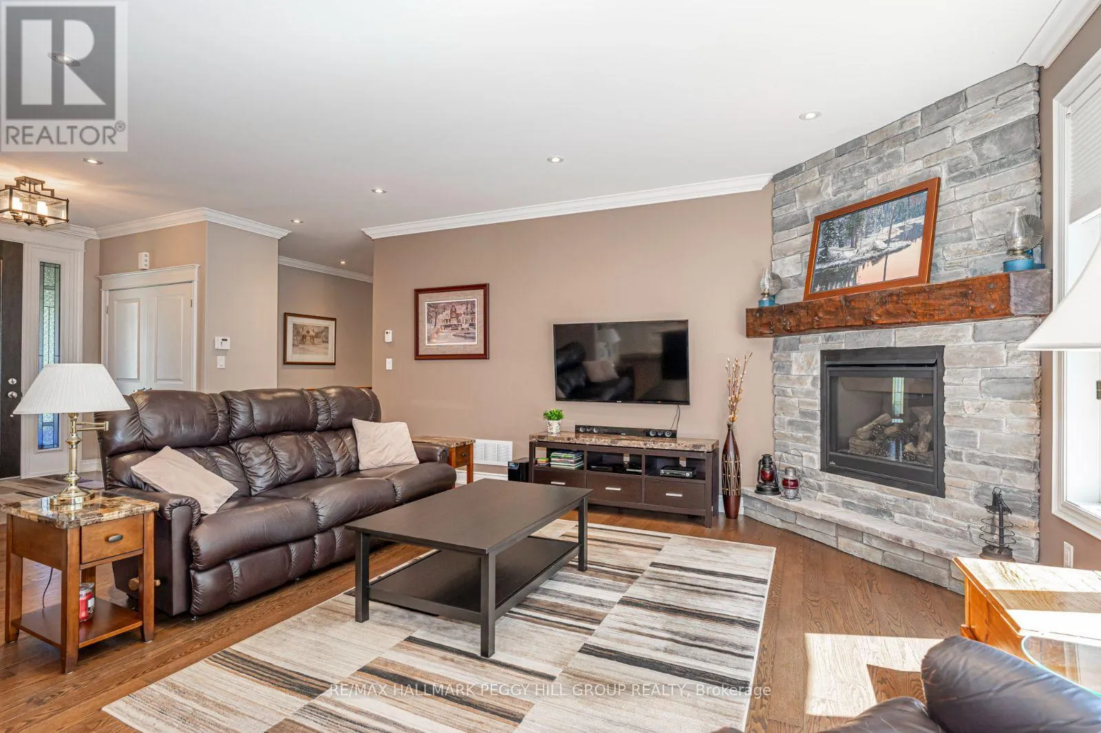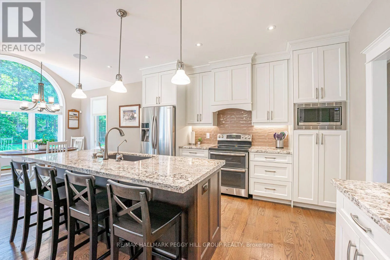 Cross Streets: Black Creek Trl/Mennill Dr. ** Directions: Snow Valley Rd/Black Creek Trl/Mennill Dr. ELEGANTLY CRAFTED EXECUTIVE BUNGALOW ON HALF AN ACRE IN A SOUGHT-AFTER NEIGHBOURHOOD! Designed to impress, this one-of-a-kind custom home delivers upscale living in a highly coveted neighbourhood surrounded by natural beauty. Set on a 104 x 208 ft lot just 5 minutes from Barrie, with quick access to trails, Vespra Hills Golf Club, and Snow Valley Ski Resort, this property showcases exceptional curb appeal with a stately brick and stone exterior, stone walkway, covered front porch, and striking front door framed by elegant architectural detailing. A triple-wide driveway and three-car garage provide ample parking to match the home's grandeur. Built with 2" x 6" kiln-dried lumber, a silent floor system, thermal pane windows, Energy Star rated low E glass, and durable aluminum soffits and eaves, this home is as solid as it is stylish. The 1,900 sq ft main floor features 9 ft ceilings, crown moulding, pot lights, solid interior doors, and an upgraded trim and millwork package. A gourmet kitchen stands out with granite counters, stainless steel appliances, soft-close cabinetry, a custom backsplash, and a wood-toned island contrasted with white cabinets. A bright breakfast area with a walkout to the deck and a formal dining room both feature elegant arched windows. The great room offers a stone fireplace with a wood mantle, while the primary suite includes a walk-in closet and an ensuite with quartz counters, a double vanity, and a glass-enclosed shower. Additional features include main floor laundry with garage access, upgraded toilets and faucets, hardwood and ceramic tile flooring, and a finished basement with rec room, fireplace, office, exercise room, and full bath. The backyard offers a forest backdrop, an expansive deck, a retractable awning, and a multi-zone irrigation system. Equipped with an HRV system, 200-amp panel, alarm, sound system, central vac, and Generac generator, every inch of this home reflects thoughtful design and an exceptional standard of living (id:27476)