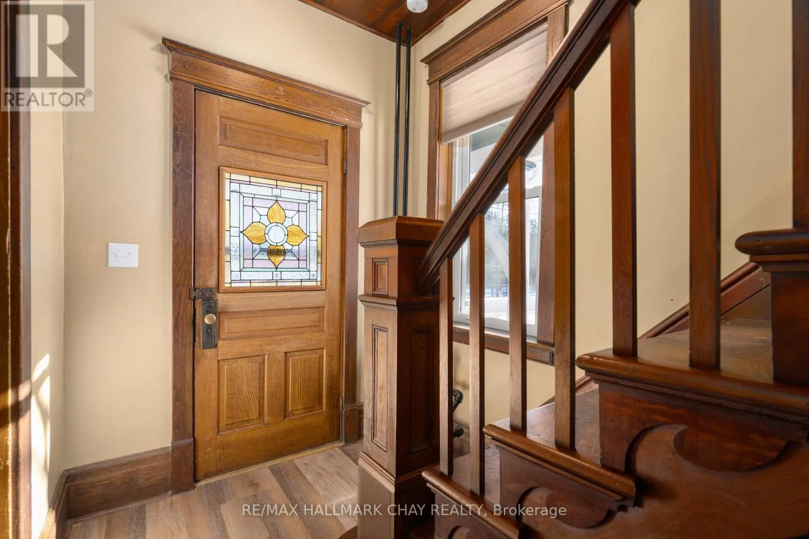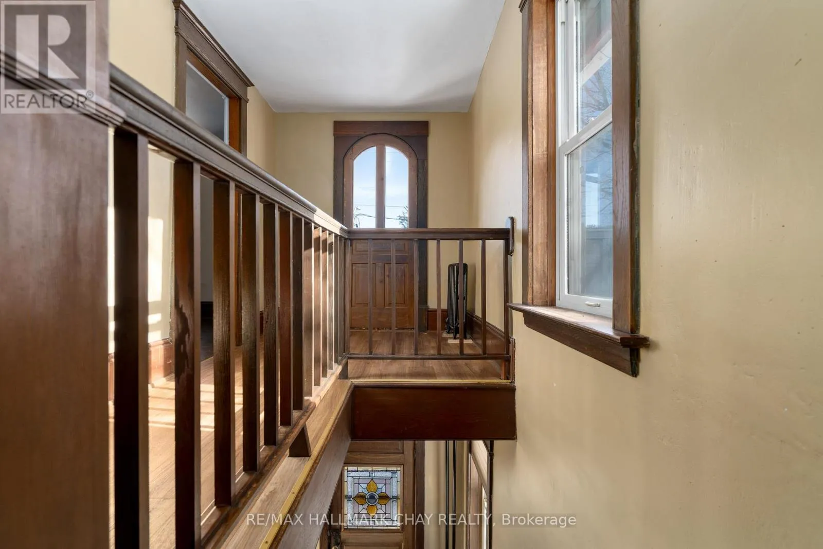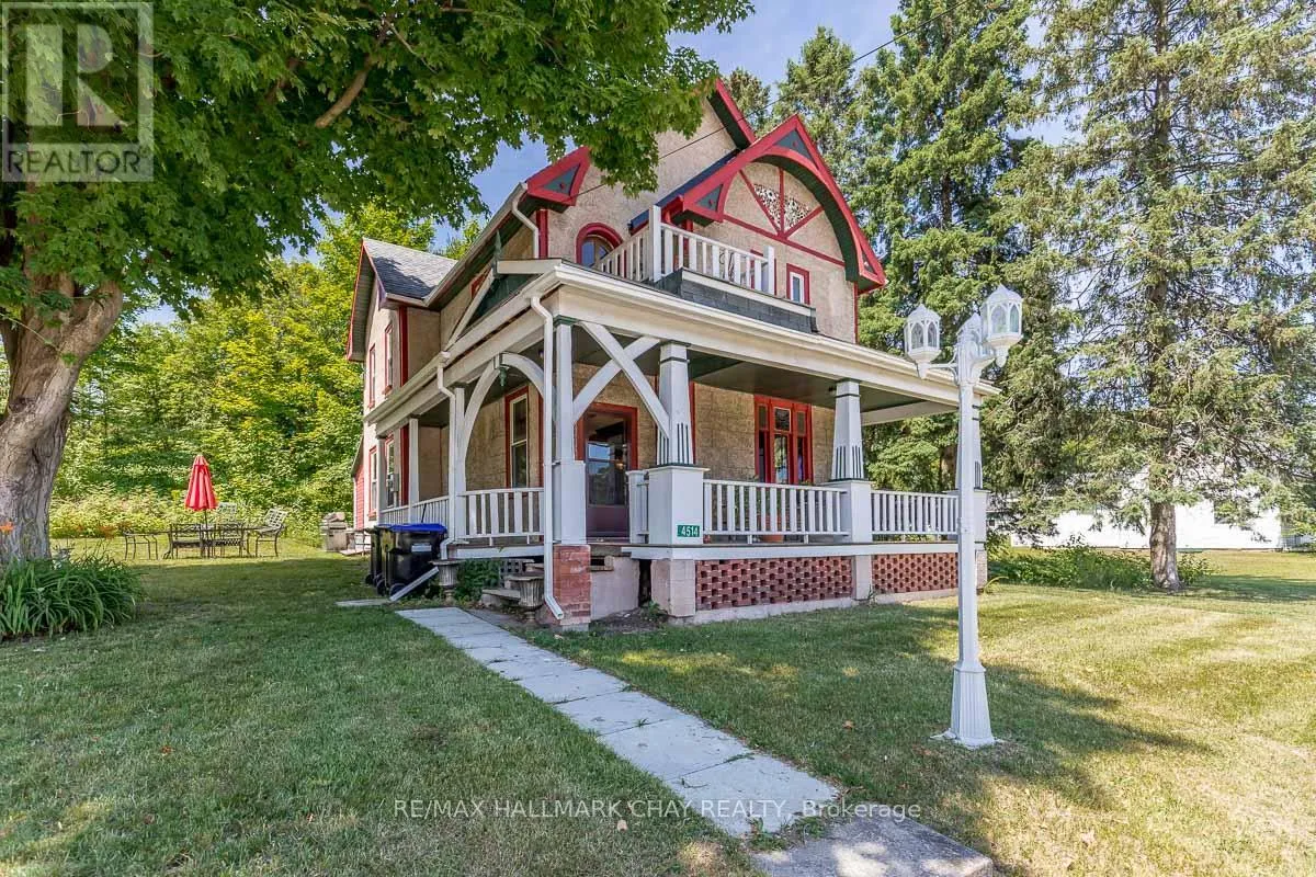 Cross Streets: Mill St. ** Directions: Highway 400 N, Exit towards Hillsdale left on Penetanguishene Rd N. Welcome to the Davenport House. This beautiful century custom builders home will call you with it's unique custom finishes. The wrap around covered porch, original craftsman front door with stained glass. Custom wood work staircase, balusters and under staircase storage wood panels. Crown molding, 9 inch baseboards and wood detail custom ceiling. Classic century style with 2 separate stair cases. Kitchen offers the original Tin ceiling a walkout to side deck and a back 3 season den and enclosed storage room and back staircase to the upper level. Pantry/laundry room off kitchen. Separate dining room and living room. Main floor generous sized bathroom in addition to the upstairs full bathroom. Upper sunroom with walkout to the balcony. This home offers 3 upper bedrooms. This is an extremely well maintained century home. Updated gas hot water tank, updated copper electrical 200 amp breaker panel. Updated plumbing, basement walls have spray foam insulation and new septic. All exterior walls have been insulated. Most windows are updated, roof in in good condition. Heating cost is very efficient with the concrete exterior walls and added insulation. Outdoor structure a detached smaller barn and garden shed. Close hwy access 15 min from Barrie. Located across the road from a park. Close to skiing, golf, hiking and snowmobiling. (id:27476)