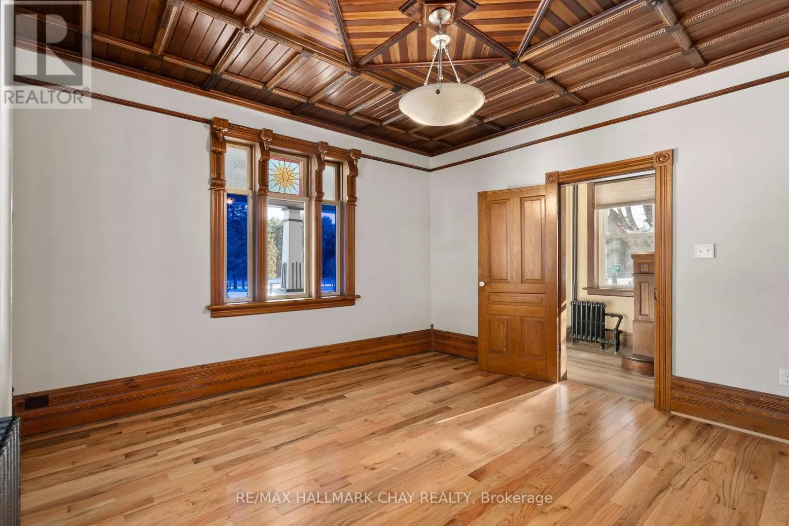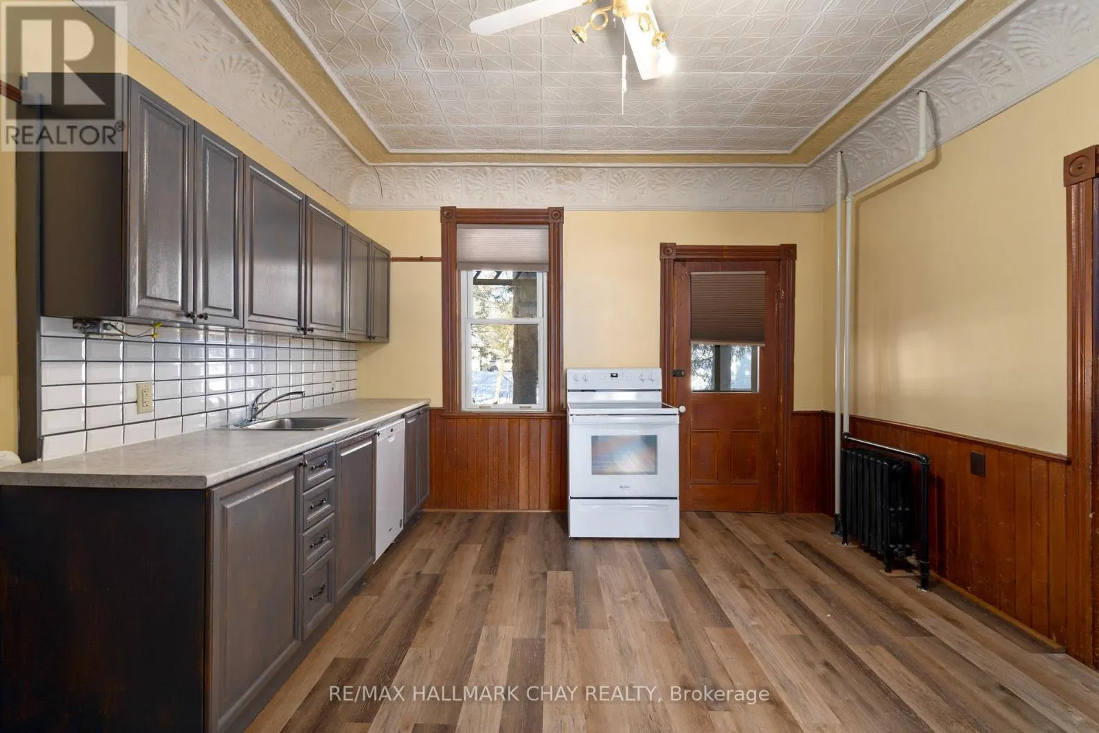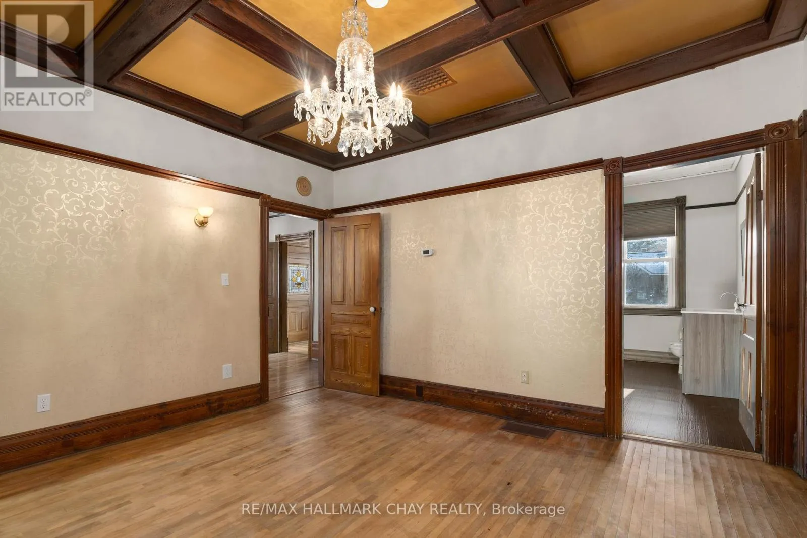 Cross Streets: Mill St. ** Directions: Highway 400 N, Exit towards Hillsdale left on Penetanguishene Rd N. Welcome to the Davenport House. This beautiful century custom builders home will call you with it's unique custom finishes. The wrap around covered porch, original craftsman front door with stained glass. Custom wood work staircase, balusters and under staircase storage wood panels. Crown molding, 9 inch baseboards and wood detail custom ceiling. Classic century style with 2 separate stair cases. Kitchen offers the original Tin ceiling a walkout to side deck and a back 3 season den and enclosed storage room and back staircase to the upper level. Pantry/laundry room off kitchen. Separate dining room and living room. Main floor generous sized bathroom in addition to the upstairs full bathroom. Upper sunroom with walkout to the balcony. This home offers 3 upper bedrooms. This is an extremely well maintained century home. Updated gas hot water tank, updated copper electrical 200 amp breaker panel. Updated plumbing, basement walls have spray foam insulation and new septic. All exterior walls have been insulated. Most windows are updated, roof in in good condition. Heating cost is very efficient with the concrete exterior walls and added insulation. Outdoor structure a detached smaller barn and garden shed. Close hwy access 15 min from Barrie. Located across the road from a park. Close to skiing, golf, hiking and snowmobiling. (id:27476)