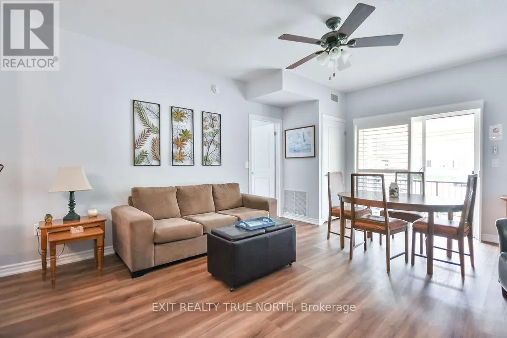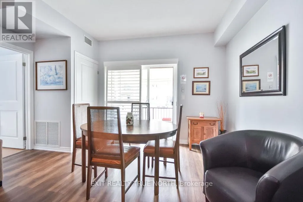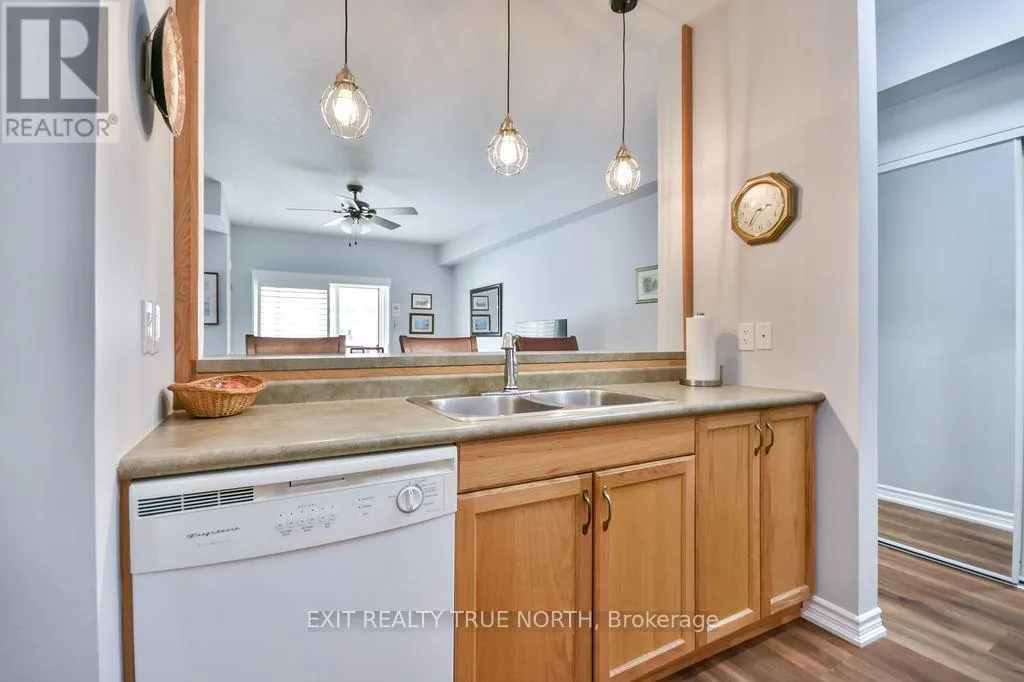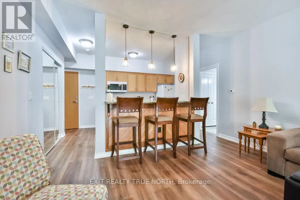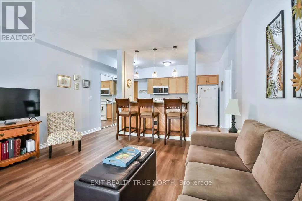 Queen St E/Yonge St N This bright and stylish one-bedroom unit combines comfort and convenience in the heart of Elmvale. Located in the well-maintained Maplecrest building, this thoughtfully designed, main floor unit features 9-foot ceilings and an open-concept layout, creating a spacious and airy atmosphere ideal for everyday living. Enjoy the convenience of key fob entry, elevator access, visitor parking, and an owned parking space. Step outside through the sliding glass doors to your own private balconyperfect for relaxing or entertaining. Residents also have access to a party room, adding extra value for gatherings and events. Situated within walking distance to local shops, restaurants, and services, this location offers the perfect blend of small-town charm and accessibility. With just a 10-minute drive to the sandy shores of Wasaga Beach and only 20 minutes to Barrie or Midland, this ideally positioned unit is a smart and stylish choice. (id:27476)