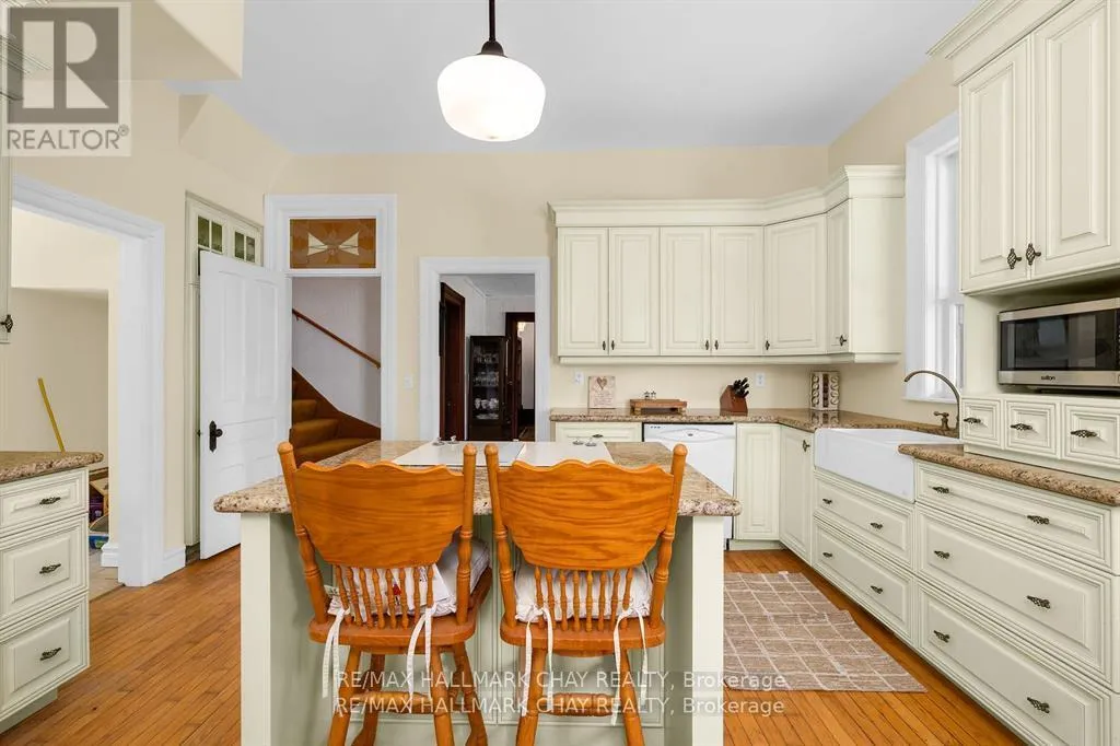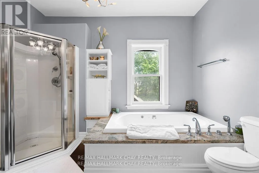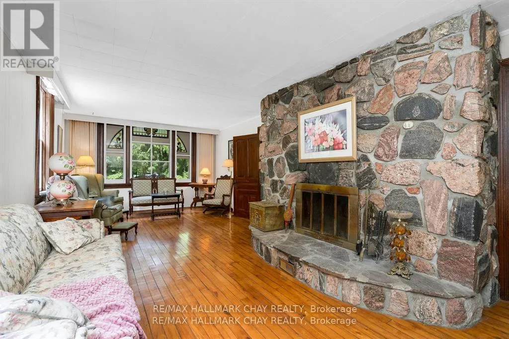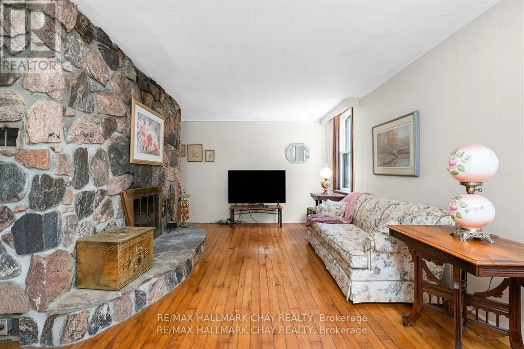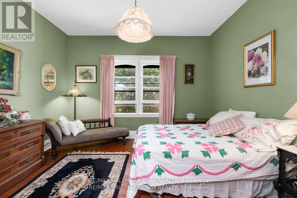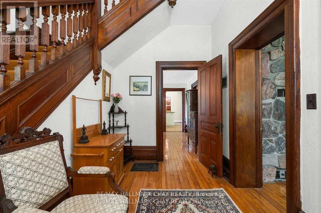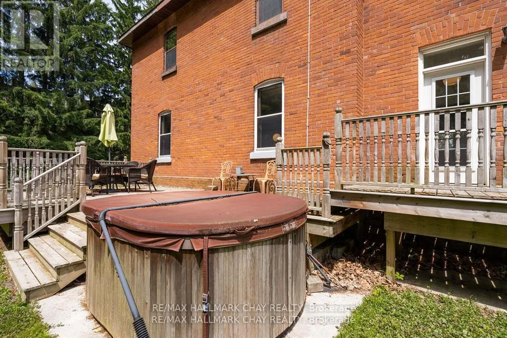 Cross Streets: County Road 92/County Road 27. ** Directions: HWY 400 to County Road 92 to Ushers Rd to Left on Flos Road 8. Welcome to Martingrove! One of springwaters designated Heritage homes. The handcrafted details are stunning, this home will call you... Built in 1906 on a private 2.57 acre property surrounded by mature trees and backing and siding onto a farm field. Sound of birds and tanquility. Original Wavy stained glass windows and stained glass transom windows with Fleur-de-lis above doorways. Hardwood flooring on main and upper. Solid field stone wood fireplace surround. Two bathrooms 3 piece on main and very large spa size bathroom on upper. Updated electrical, metal roof. The hand crafted railing and balusters are breath taking.Back staircase from kitchen with a gorgeous amber glass fixture and fleur de lis transom window. Wrap around porch for serene outdoor seating. Hot Tub off the back deck. Solar panel contract that draws income. This home is charming and grand. (id:27476)