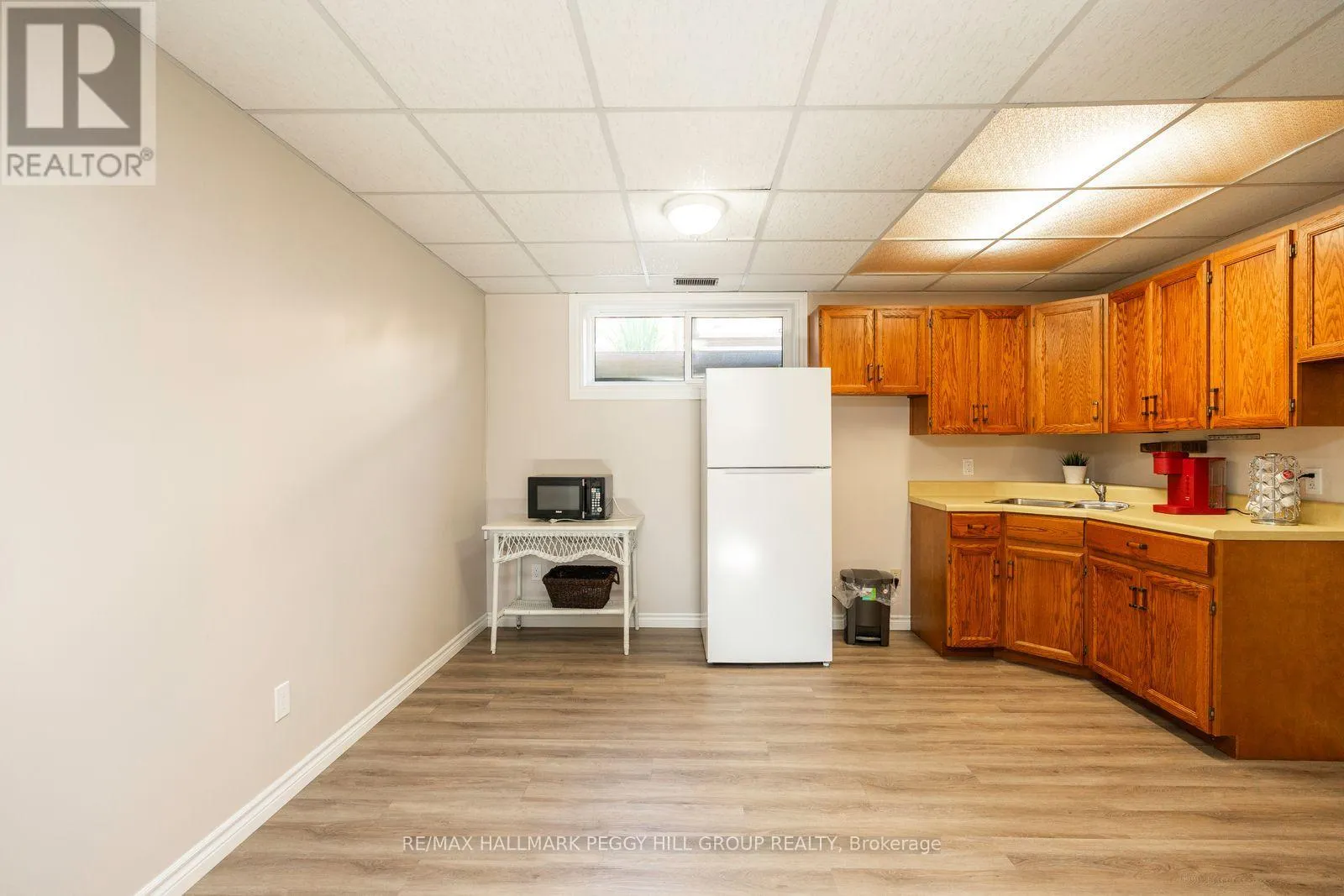 Cross Streets: Queen St E/Bertram Dr. ** Directions: Yonge St S/Queen St E/Bertram Dr. SMALL-TOWN LIVING WITH BIG UPGRADES & IN-LAW SUITE POTENTIAL! Set on a desirable corner lot, this raised bungalow catches the eye with its timeless all-brick exterior, recently updated Garaga garage doors, upgraded windows, and a stamped concrete walkway leading to a newer front door with sidelights that create an inviting entrance. The breezeway connecting the garage to the home is a standout feature, boasting updated sliding doors at both ends, a cozy seating area, and direct access to the basement. The backyard feels like your own getaway, complete with a hot tub, updated deck, stamped concrete walkway and patio, colourful gardens, and a fenced yard, ready for both entertaining and quiet evenings. The kitchen is bright and stylish, featuring white shaker cabinets, quartz counters, a subway tile backsplash, a large center island, and updated stainless steel appliances, including a stove with a built-in air fryer, which flows into an open dining and living area filled with natural light and a walkout to the deck. The main level has been refreshed with updated flooring, interior doors, fresh paint, a newer washer and dryer, and an updated bathroom. The versatile walk-up basement is designed for extended family living, complete with its own kitchen, a spacious rec room with a gas fireplace, a bedroom, and a 4-piece bath. All of this is within walking distance of elementary and secondary schools, parks, a grocery store, an LCBO, restaurants, an excellent local bakery, and more. A move-in ready #HomeToStay with plenty of updates, versatile living spaces, and the ease of small-town living with everything you need just steps away! (id:27476)