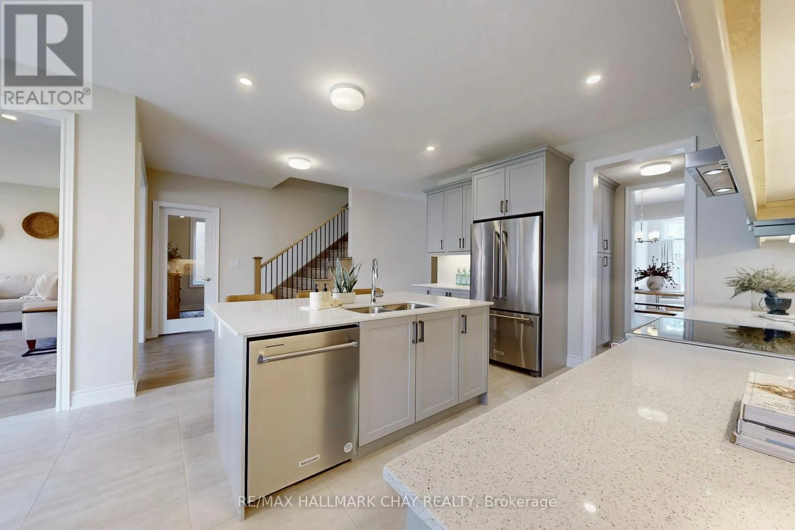Snow Valley Road to Bearberry Road Welcome to this stunning 5-bedroom, 3.5-bathroom home located in the highly sought-after Midhurst Valley Community-where modern luxury meets family-friendly comfort. This beautifully designed residence offers exceptional living space and thoughtful features throughout. The main floor showcases a bright and inviting layout with beautiful, seamless wood flooring, complete with a spacious office/den perfect for working from home, and an additional sitting room ideal for reading or relaxing. The gourmet eat-in kitchen is a true showpiece, featuring stone countertops, undermount lighting, stainless steel appliances, a large island with breakfast bar, and a convenient butler's pantry with an additional sink & storage-a dream for both everyday living and entertaining. The adjoining living room offers a warm ambiance with its elegant electric fireplace, while the separate dining room provides the perfect setting for family dinners and special occasions. Upstairs, the primary suite is a peaceful retreat with a spa-inspired 5-piece ensuite complete with a soaker tub, glass shower, and dual sinks. Four additional bedrooms are well-appointed and connected by two Jack and Jill bathrooms, offering comfort and convenience for the whole family. The home also features an unfinished basement w/rough-in and cold room, ready to be customized to suit your needs, and a 3-car tandem garage providing ample storage and parking, along with two additional exterior parking spaces. Set in a scenic neighborhood surrounded by nature, you'll enjoy close proximity to a community pond, Vespra Hills Golf Club, Snow Valley Ski Resort, local parks, and walking trails, making it the perfect location for an active family lifestyle. Experience refined living in one of Simcoe County's most desirable communities. (id:27476)