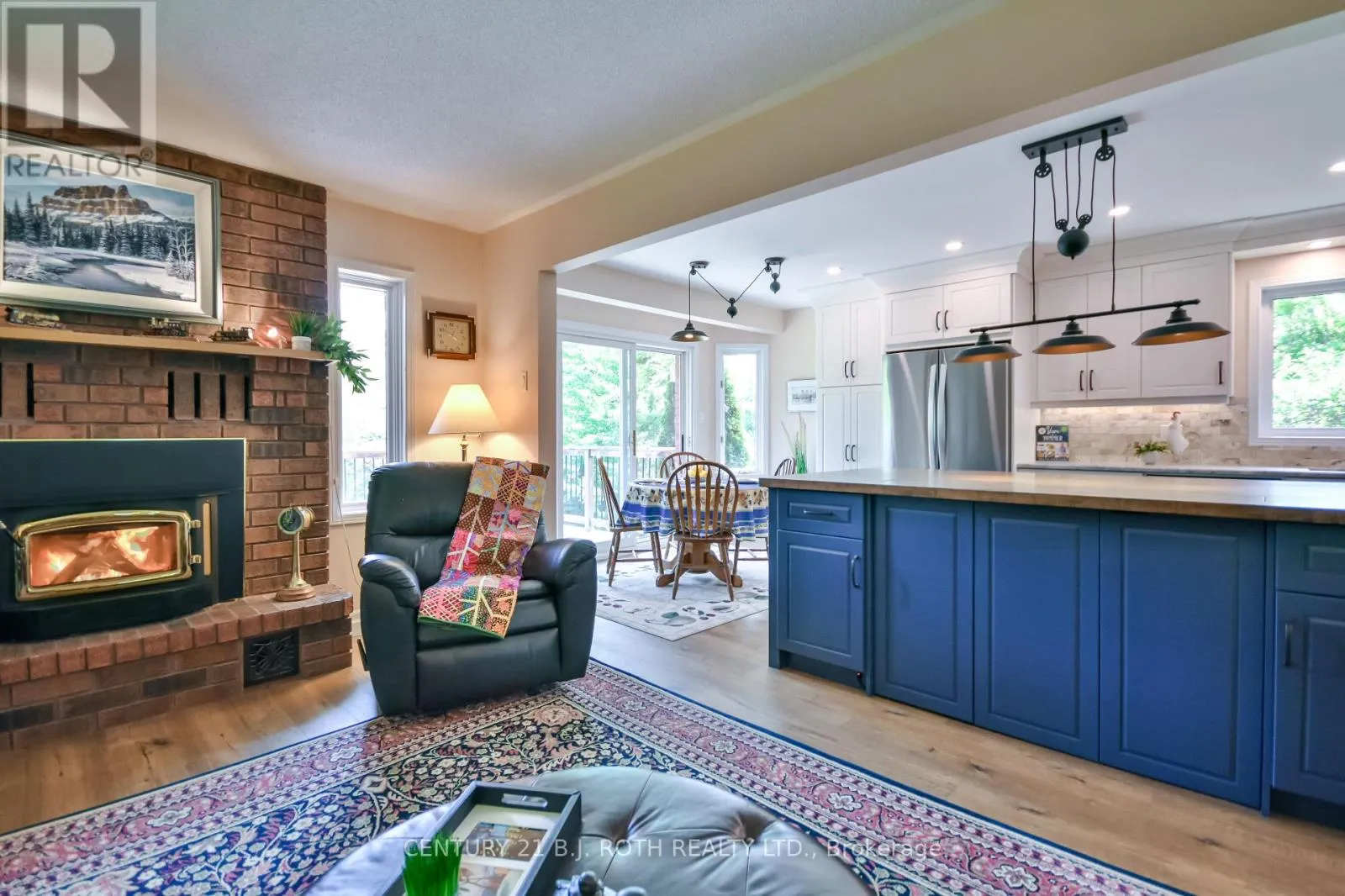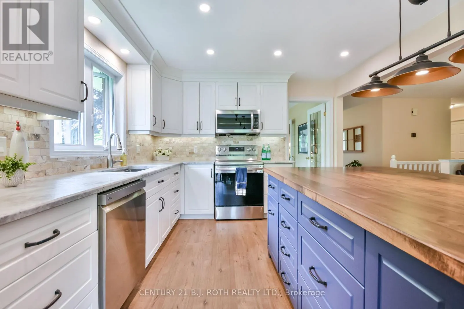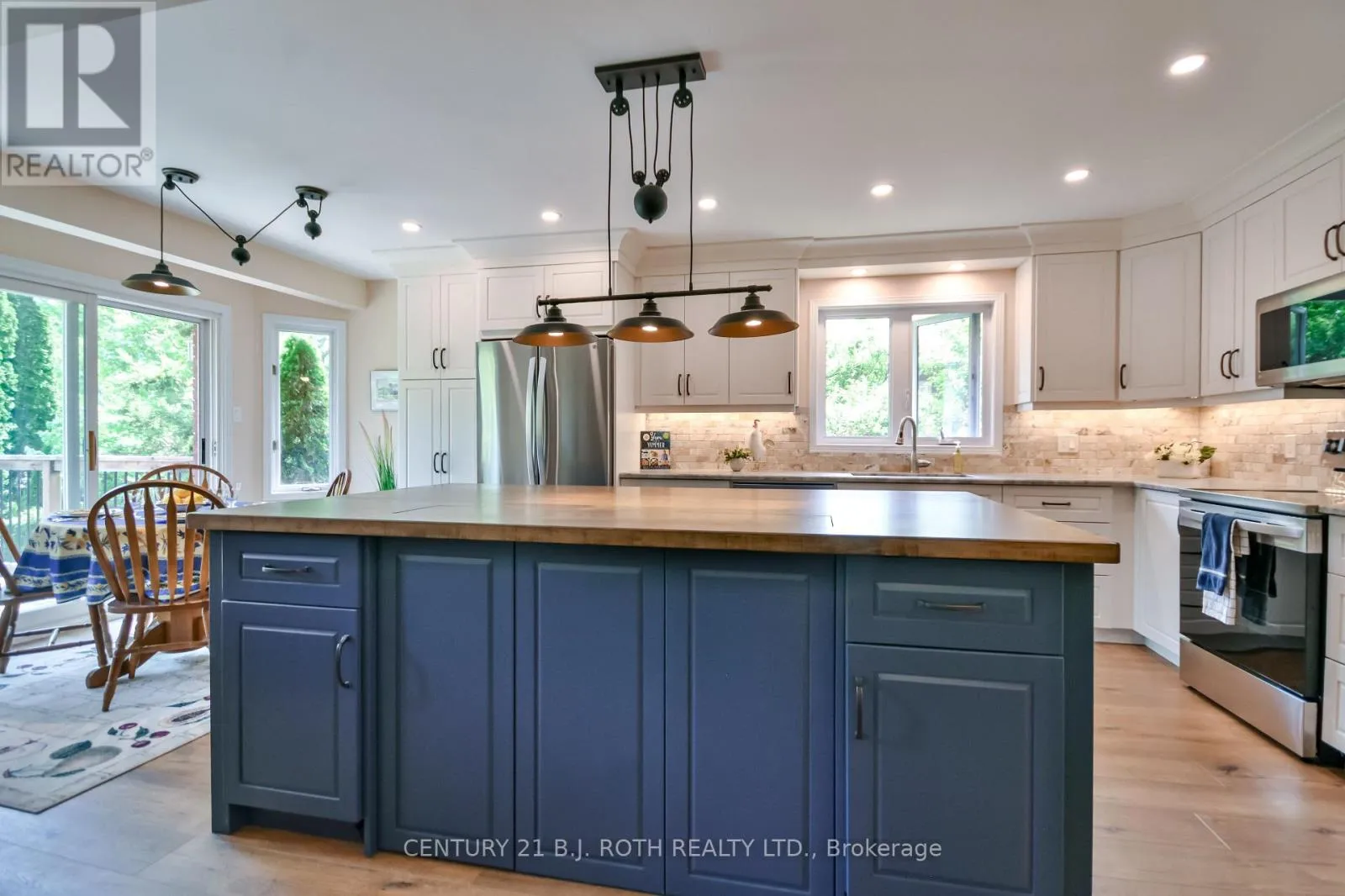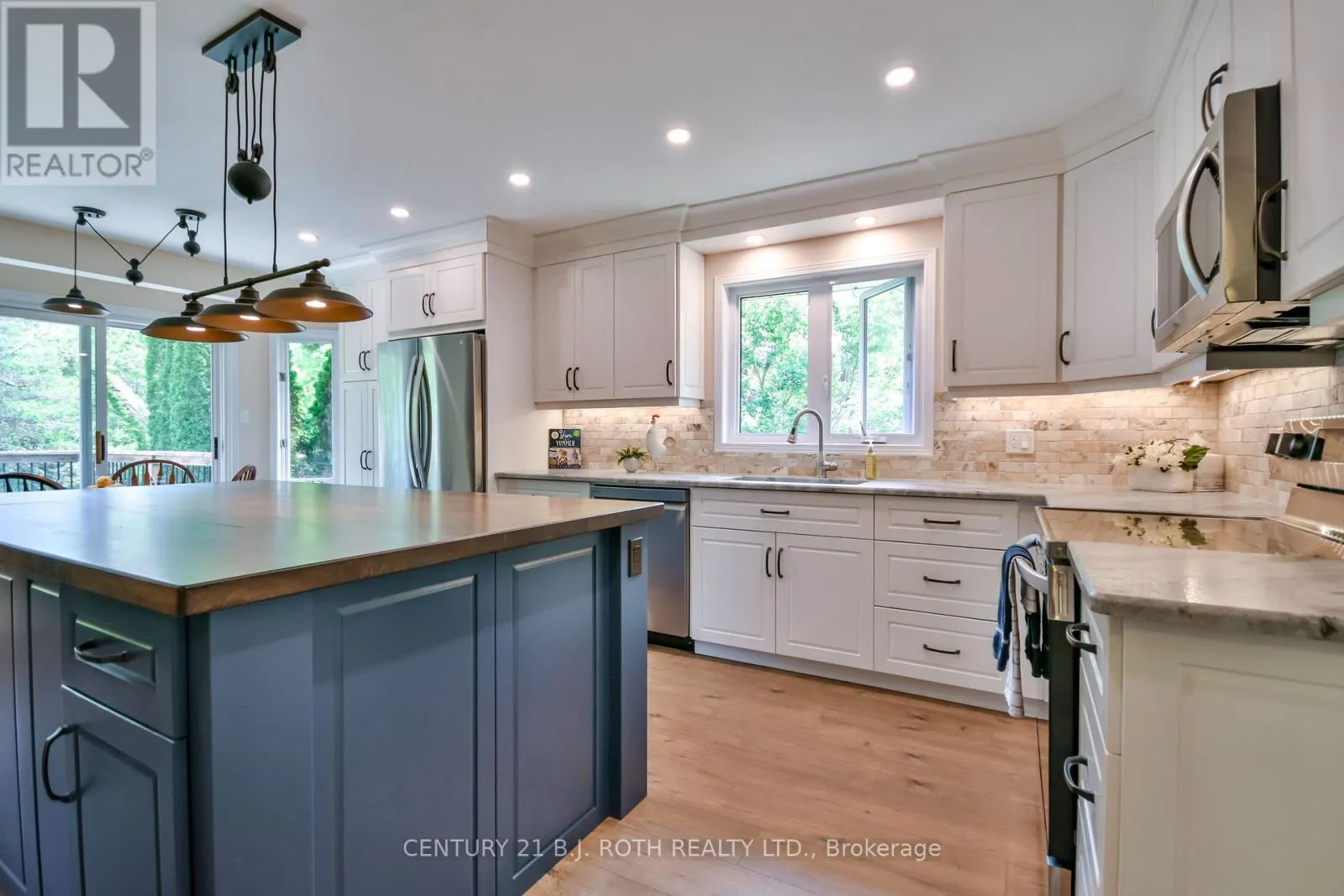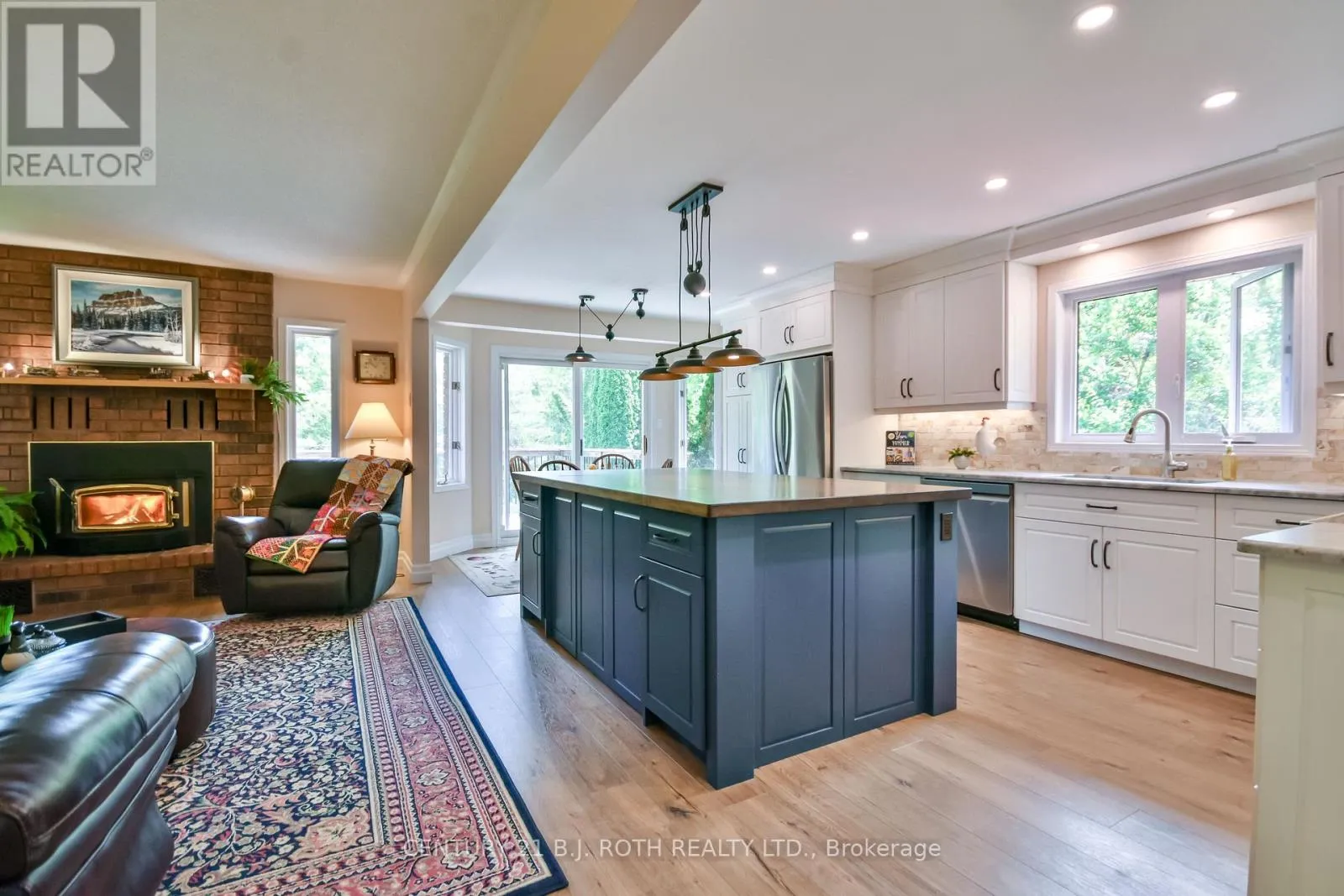 Cross Streets: Finlay Mill & Cowdry Park. ** Directions: Hwy 26 to Glen Echo, Heatherwood L, Cairns L. Welcome to coveted Midhurst and this sprawling ranch bungalow with triple garage, set on a premium lot backing onto mature forest & Willow Creek that meanders throughout the village of Midhurst. Over 3300 sq ft of living space on 2 floors, front foyer leads to a large, separate living & dining room, bright great room & eat in kitchen with sliding doors to the large deck with stairs that overlook the private lush backyard. Custom cabinetry in the updated kitchen, complete with Quartz counters, undercounter lighting, stone backsplash, double sink, easy close doors, multitude of pull outs & focal 4 x 8' island made out of wormy maple hardwood, with more great features on both sides. Surprise within the island is a 47' TV, accessed via a remote that lifts the tv from within! Family room with focal, energy efficient Regency woodburning fireplace. Primary bedroom with ensuite, plus 2 other bedrooms, main floor laundry room & updated main bathroom. Idyllic full walkout basement to yard & patio, bright & spacious recreation room with bonus projector & surround sound for family movie nights. Idyllic full walkout for inlaw capabilities, large family or guests. Warm focal Waterford gas fireplace for those cooler days or nights. Newer kitchen with eat in area, separate inside entry from garage, 2 extra bedrooms, 3 piece bathroom, and bonus custom built ins in a bright & organized hobby room, office or workroom. Midhurst is the perfect place to raise a family or to enjoy your later years. Coveniently located close to hwy, Barrie amenities, Lake Simcoe, ski hills, and many country roads leading you to your next adventure exploring this beautiful area. (id:27476)