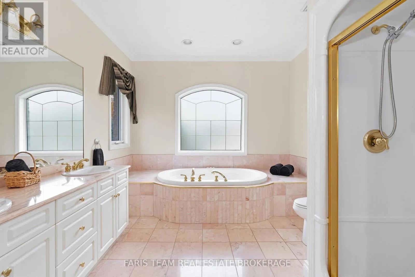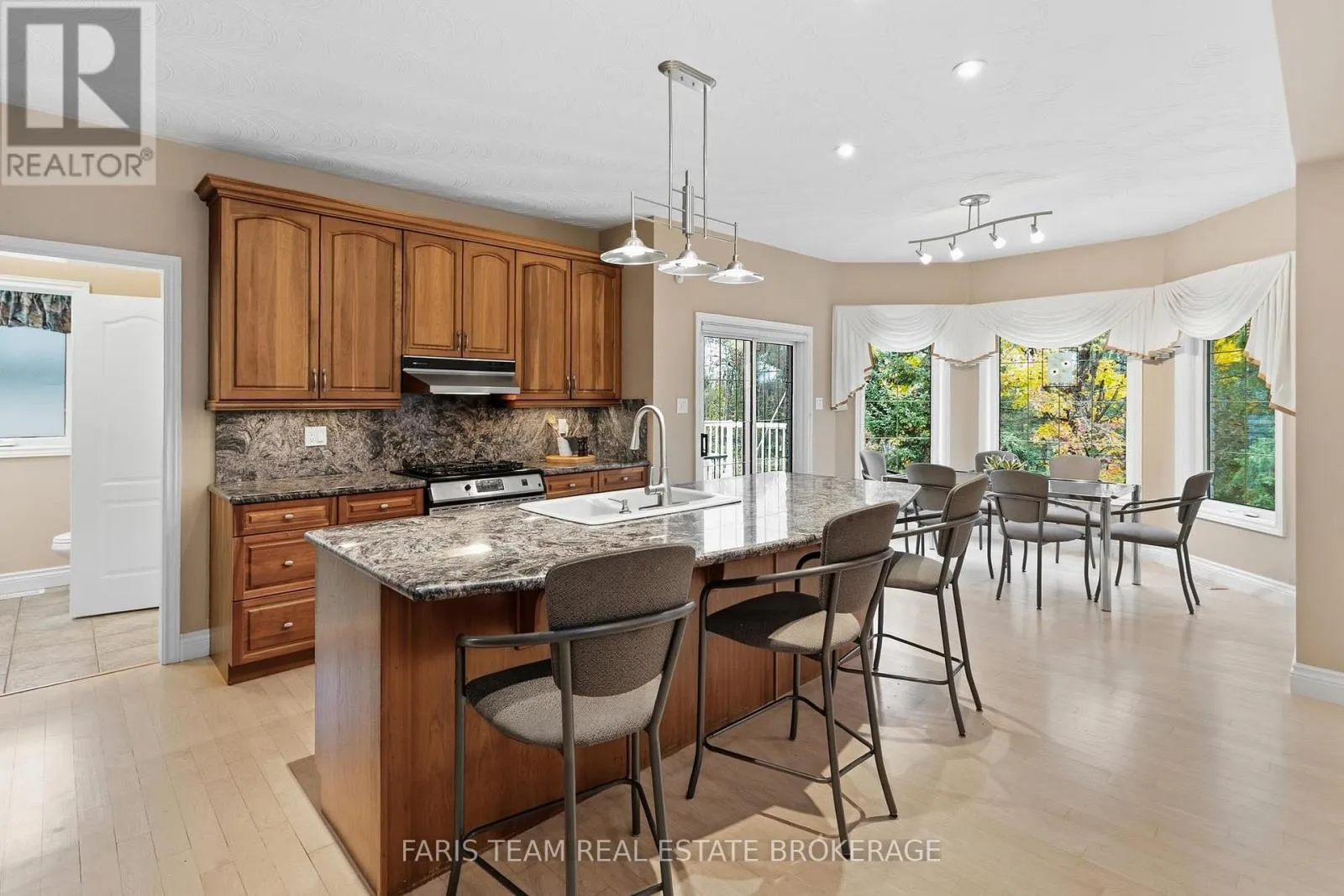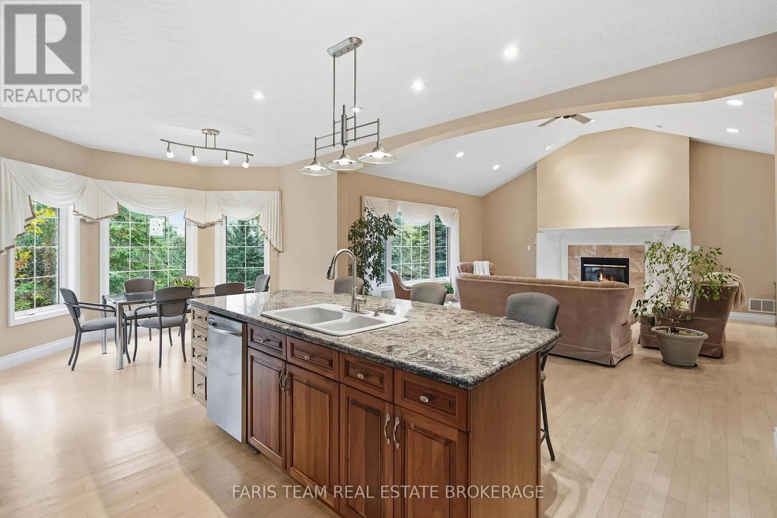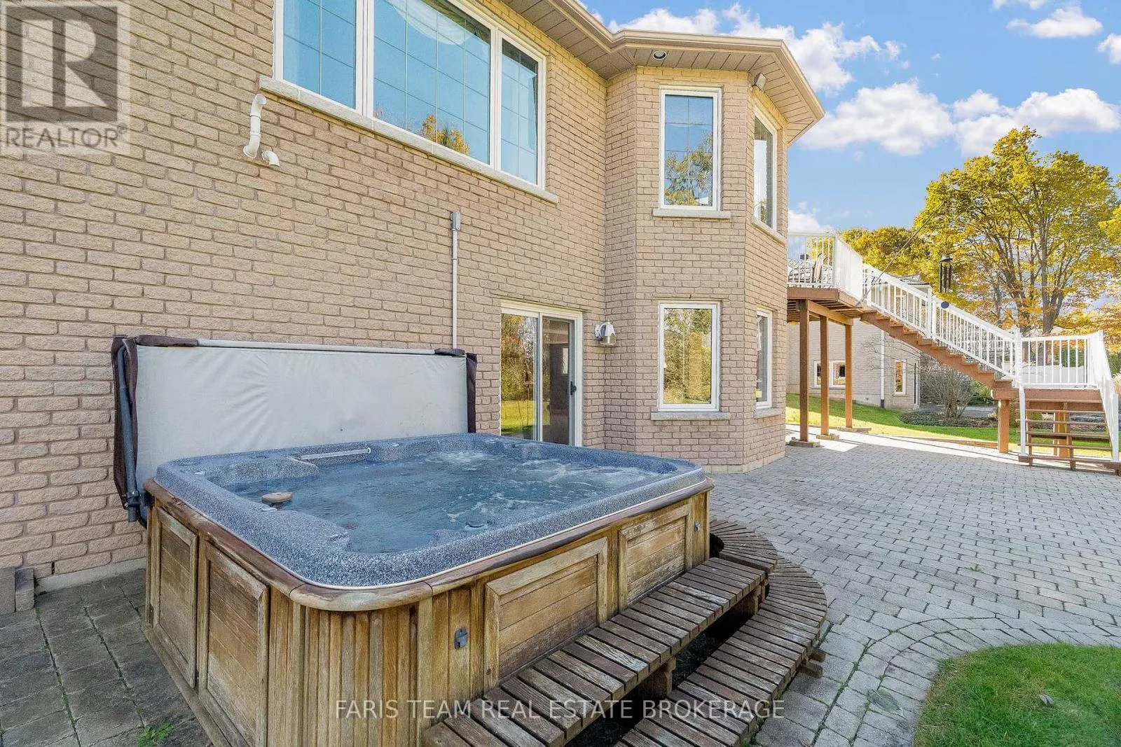 Carson Rd/Paddy Dunn's Cir Top 5 Reasons You Will Love This Home: 1) Experience soaring cathedral ceilings, with beautiful textured details, large windows and over 45 recessed lights that fill the home with natural and ambient light, and the spacious open concept layout flows seamlessly from the living and dining areas into the large kitchen, featuring a generous island with granite countertops, rich wood cabinetry, and an abundance of workspace, while the bedroom wing is thoughtfully separated from the main living area and closed off by double doors, providing both comfort and privacy within the home's expansive design 2) Enjoy a beautifully landscaped backyard thoughtfully designed for both relaxation and entertaining, where the upper deck off the main level offers a scenic view of the private yard, and the walkout stone patio below leads to a soothing hot tub for year-round enjoyment, with two separate basement walkouts adding versatility and ease of access 3) The bright basement features a versatile recreation room, two bedrooms, a full bathroom, and a separate entrance from the garage, ideal for an in-law suite or future rental setup, with a home down the street recently renting its lower level for $1,700 per month, showing strong income potential in this neighbourhood 4) From the extra-deep two-car garage with space for multiple vehicles or a boat, to elegant crown moulding, marble bathroom finishes, and a beautiful brick and stone exterior, this home showcases timeless quality and attention to detail inside and out 5) Nestled in the highly sought-after Midhurst community across from a park and close to top-rated schools, this home is just minutes from Barrie, Snow Valley Ski Hill, and Highway 400, creating the perfect balance for families and commuters. 2,296 above grade sq.ft. plus a finished basement. 4,497 sq.ft. of finished living space. (id:27476)