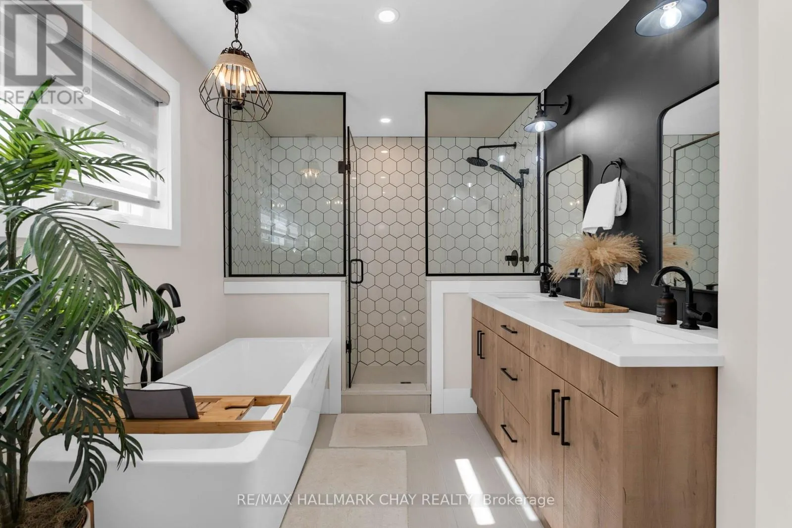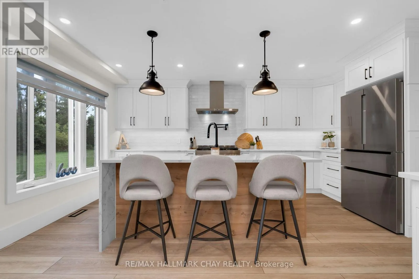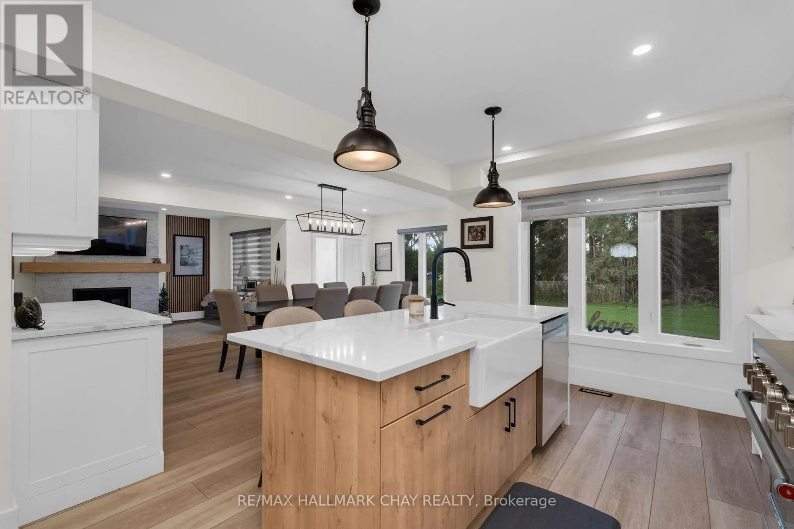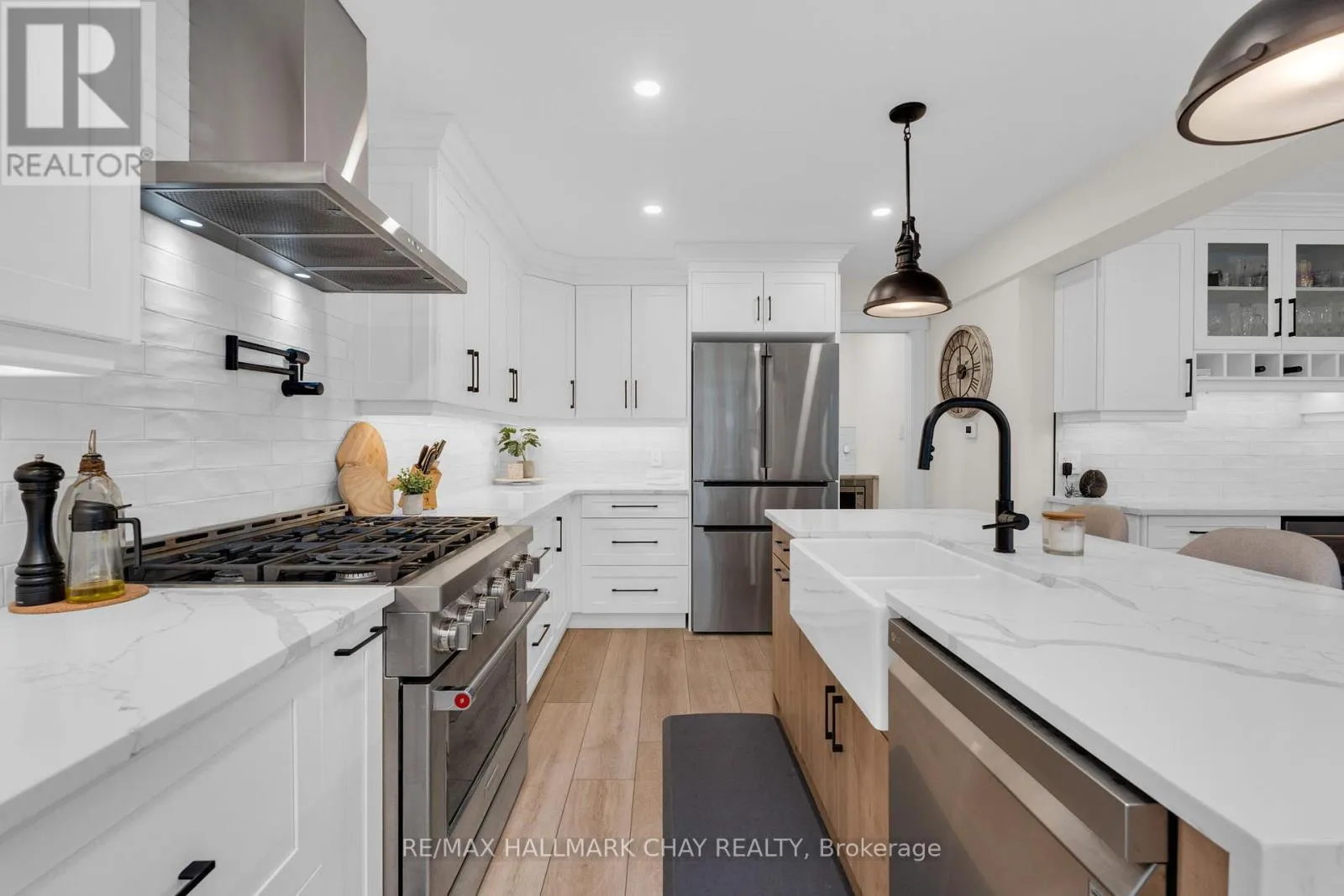 Cross Streets: Hwy 26/Glen Echo/Heatherwood. ** Directions: Hwy 26/Glen Echo. PRESENTING 3 Heatherwood Drive in Springwater's sought after Midhurst community of custom homes, offerings family-centric old-school charm. The curb appeal of this home starts from the moment you drive through this established neighbourhood with mature trees, where each home is unique. With over 2400 sq.ft. of functional living space and an open main level floor plan - this fully remodelled home offers a perfect blend of style, form and design. Tasteful neutral decor with contemporary finishes throughout incorporating extras like top-to-bottom oak staircase, hardwood flooring, feature walls, gas fireplace, walk-in pantry with custom storage, beverage station, study nook. Custom upgraded Chef's kitchen - truly the heart of this home - has been renovated to today's modern standards with an oversized island for serving/prep work, exceptional stainless steel appliance package with gas range, s/s range hood, farmhouse-style sink, quartz countertops, plenty of cabinets for storage, as well as a separate butler's pantry (built-in microwave) for even more storage space! Open concept from the kitchen to the living/dining rooms allows for effortless family connection and entertaining. You will appreciate the natural light throughout the main level from the large wrap around window package. Convenience of main floor office, 2pc guest bathroom, laundry with access to double car garage. Private upper level presents a large primary bedroom + oversized walk in closet with organizers + stunning 5pc ensuite (dual sink vanity, free-standing soaking tub, separate glass walled shower, as well as 3 comfortable bedrooms for family/guests, renovated main bath. Extend your living space outdoors into the large backyard of this premium lot - for family play time, outdoor games, room for four-legged friends to frolic. This property easily meets the needs of a busy household - even a home-based business (with ample parking for vehicles, RVs) - with plenty of room for everyone's comfort! (id:27476)