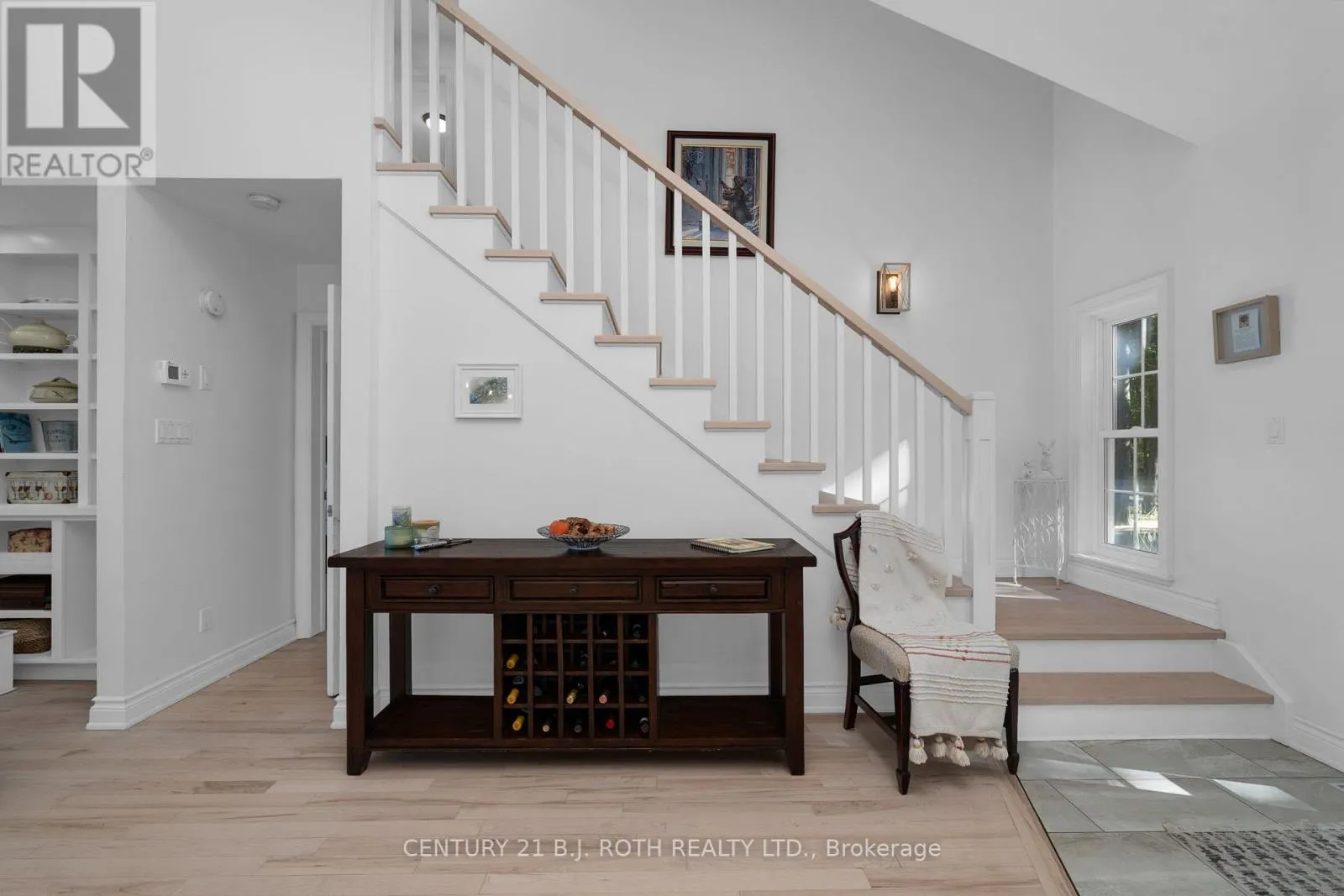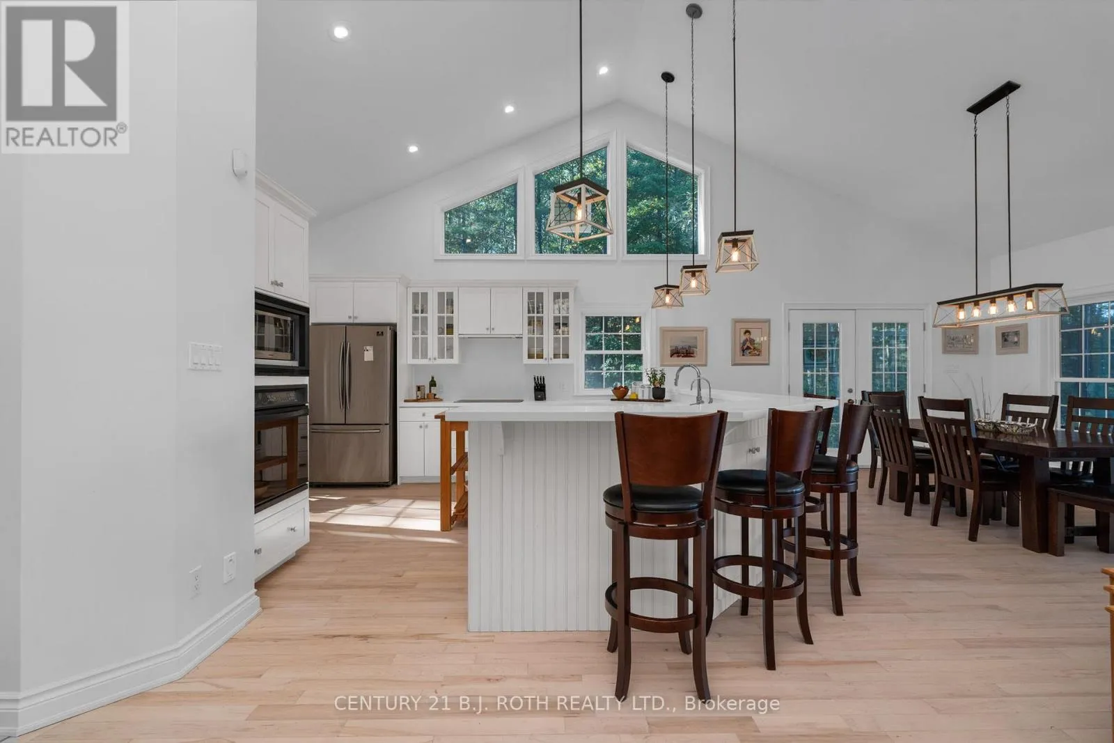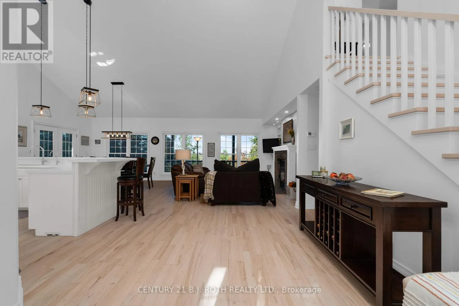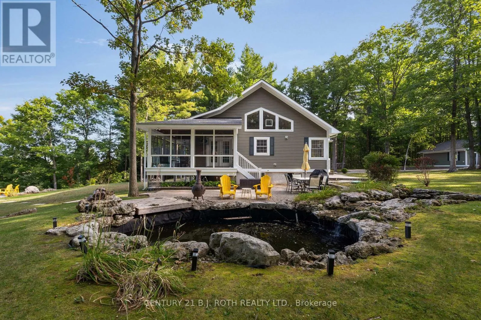 Cross Streets: George Johnson & Snow Valley Rd. ** Directions: Snow Valley Rd to Portage Tr. This stunning custom-built 4-bedroom, 3-bath home offers breathtaking views of the Blue Mountains and direct access to Fort Willow Conservation Area and Simcoe Rail Trail, providing the perfect balance of peace, privacy, and connection to nature. The main floor features a spacious kitchen with brand new quartz countertops, and slab backsplash, a walk-in pantry, and a cozy breakfast nook. The bright and inviting living room is filled with natural light and anchored by a beautiful wood-burning fireplace, while the dining room offers plenty of space for a large table and opens to a sunroom and deck with endless panoramic views. The main-floor primary bedroom serves as a private retreat with a spa-inspired ensuite and a walkout to the built-in hot tub. Upstairs, you'll find two generously sized bedrooms and a 4-piece bathroom. The fully finished basement expands the living space with a large recreation room featuring another wood-burning fireplace, an additional bedroom, a 3-piece bath, sauna, laundry area, and a convenient walk-up to the yard. Outside, the property continues to impress with a double detached garage, serene pond, cozy fire pit area, and unmatched views. Perfect for nature lovers seeking tranquility and within 10 minutes to Barrie, this exceptional home is a true retreat book your private showing today! (id:27476)