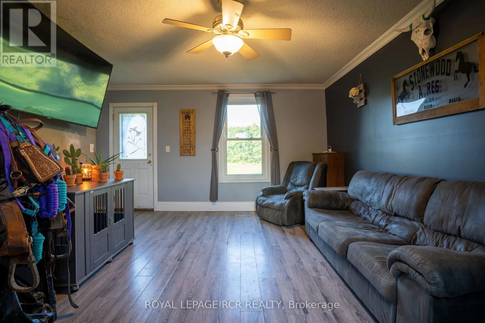 Cross Streets: County Rd 92 & Crossland Rd. between Flos Rd. 6W and Flos Rd.7W. ** Directions: County Rd 92 & Crossland Rd. Come see how you can make this sprawling 1.21-acre property your own. It offers abundant space to fulfill all your outdoor ambitions. Please note: The barn you see in the pictures sits on another property and is NOT included! Plan your next garden party, host barbecues with family and friends, or simply relax and enjoy the scenic countryside views. The large detached workshop/garage provides ample room for your next project. Conveniently situated near Wasaga Beach and Elmvale, this home is just a 25-minute drive to downtown Barrie. This all-brick, 1 1/2 storey home offers just over 1300sqft and is nestled on just over an acre of land, perfect for those who cherish the outdoors. The side porch offers a great place to sit and enjoy your favorite beverage and it invites you into the main entrance area of the house. The generously sized living room is bathed in sunlight, with a window offering a picturesque view of the expansive yard. The galley-style kitchen is conveniently located next to the dining room and off the living room, creating an ideal setting for entertaining. Just off the dining area, steps lead down to the sunken main floor primary bedroom, complete with a cozy fireplace. The upper level boasts two bright bedrooms one of which can be converted back into two smaller rooms. The partially finished basement provides additional living space with a fourth bedroom. The unfinished area in the basement provides ample storage. (id:27476)