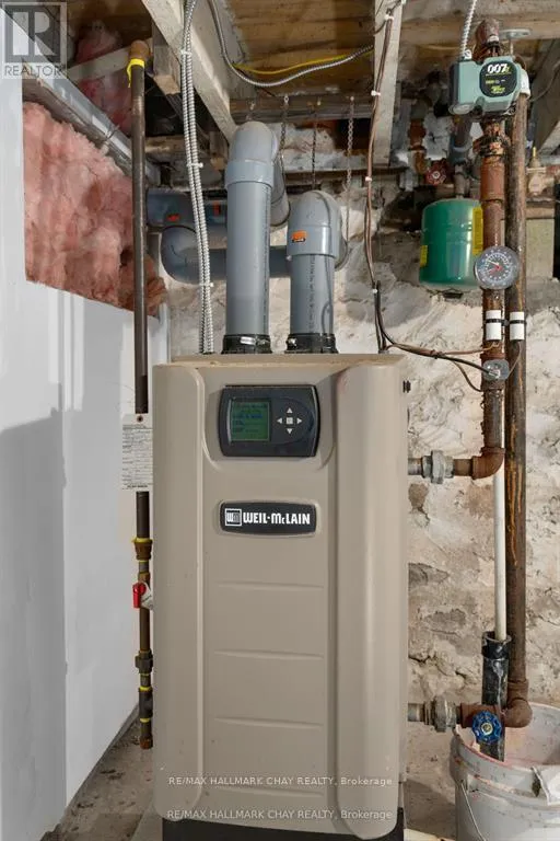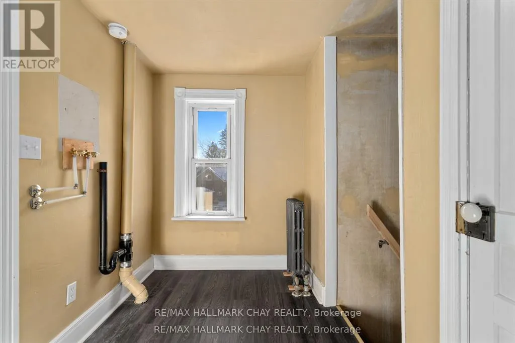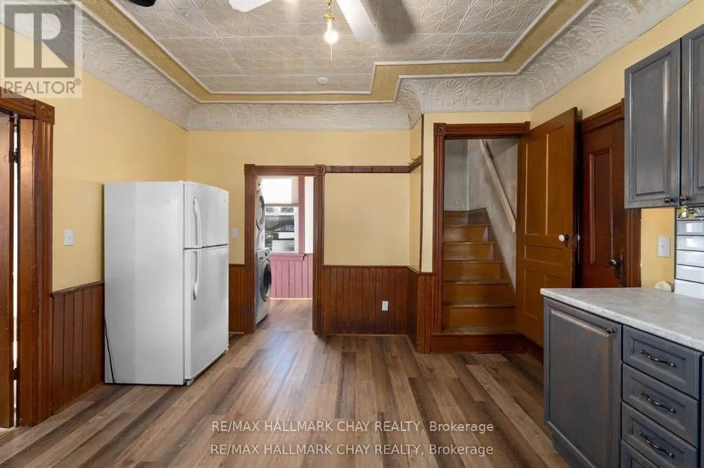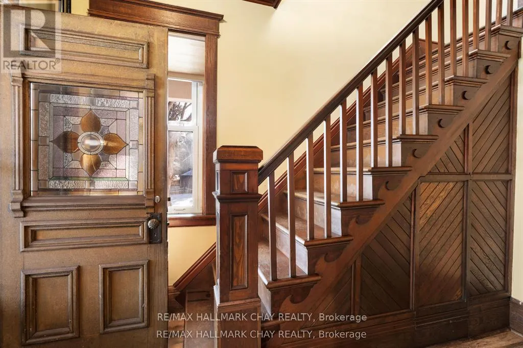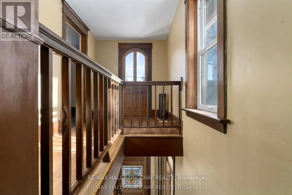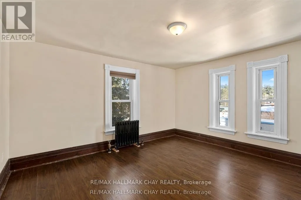 Cross Streets: Mill St. ** Directions: Highway 400 N, Exit towards Hillsdale left on Penetanguishene Rd N. Welcome to the Davenport House. This beautiful century custom builders home will call you with it's unique custom finishes. The wrap around covered porch, original craftsman front door with stained glass. Custom wood work staircase, balusters and under staircase storage wood panels. Crown molding, 9 inch baseboards and wood detail custom ceiling. Classic century style with 2 separate stair cases. Kitchen offers the original Tin ceiling a walkout to side deck and a back 3 season den and enclosed storage room and back staircase to the upper level. Pantry/laundry room off kitchen. Separate dining room and living room. Main floor generous sized bathroom in addition to the upstairs full bathroom. Upper sunroom with walkout to the balcony. This home offers 3 upper bedrooms. This is an extremely well maintained century home. Updated gas hot water tank, updated copper electrical 200 amp breaker panel. Updated plumbing, basement walls have spray foam insulation and new septic. All exterior walls have been insulated. Most windows are updated, roof in in good condition. Heating cost is very efficient with the concrete exterior walls and added insulation. Outdoor structure a detached smaller barn and garden shed. Close hwy access 15 min from Barrie. Located across the road from a park. Close to skiing, golf, hiking and snowmobiling. (id:27476)