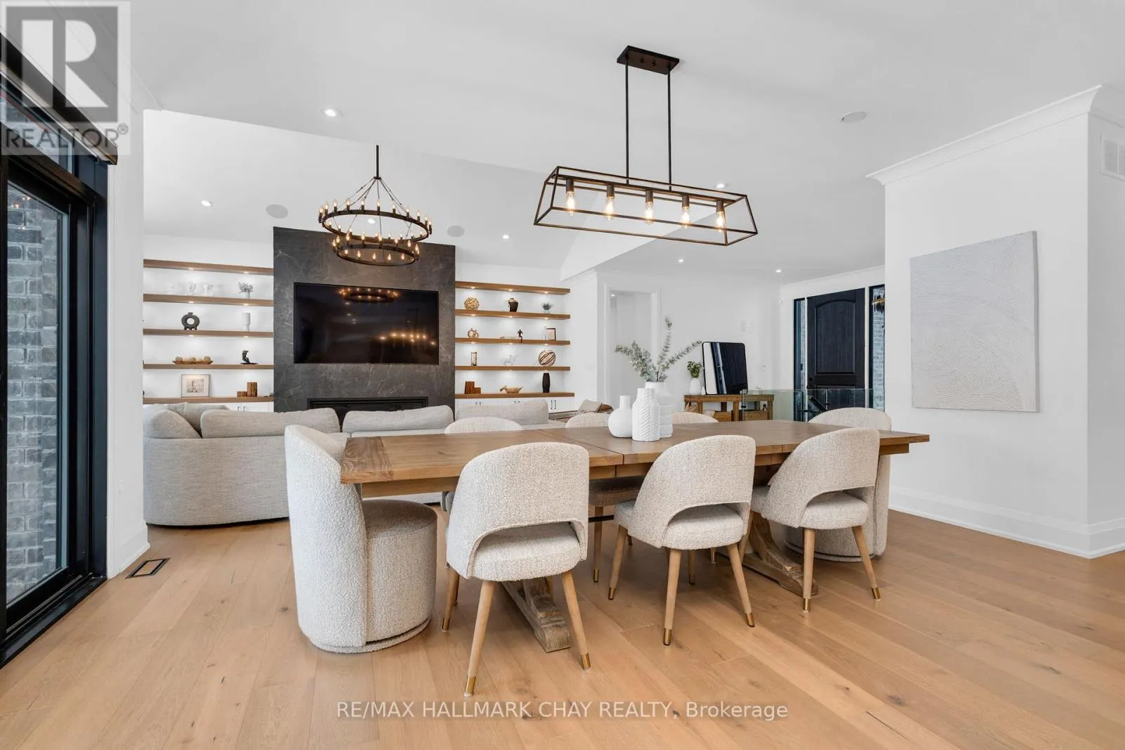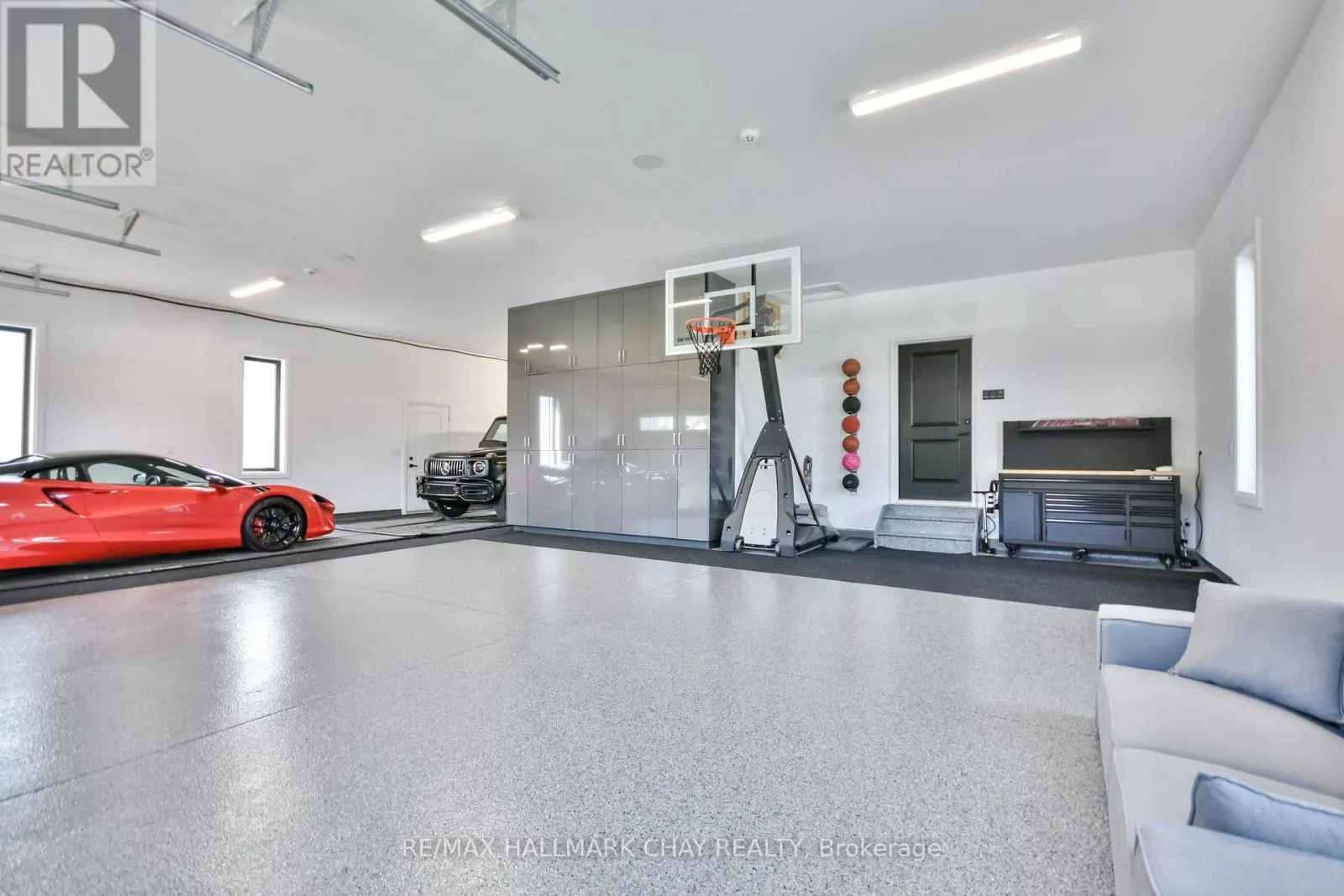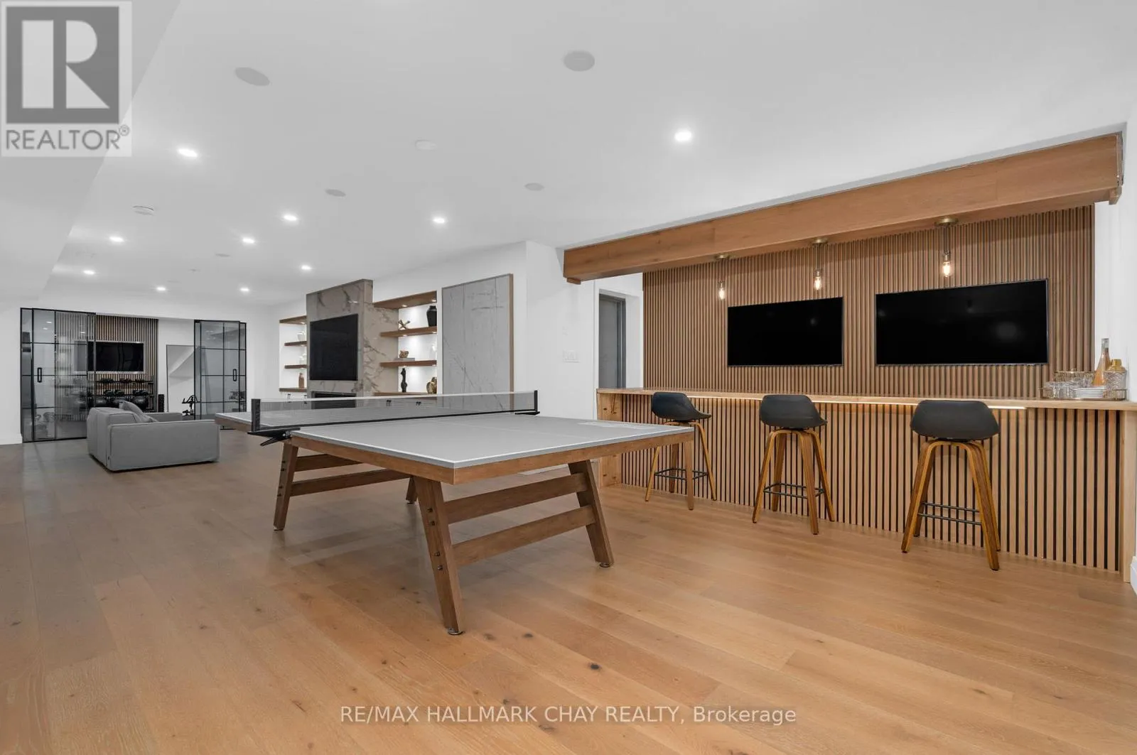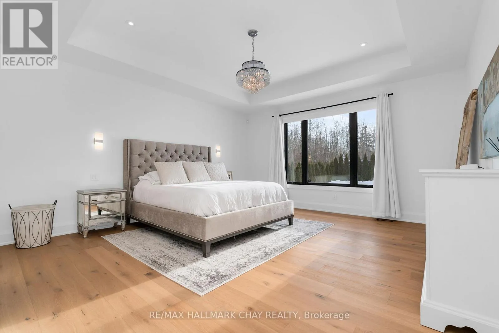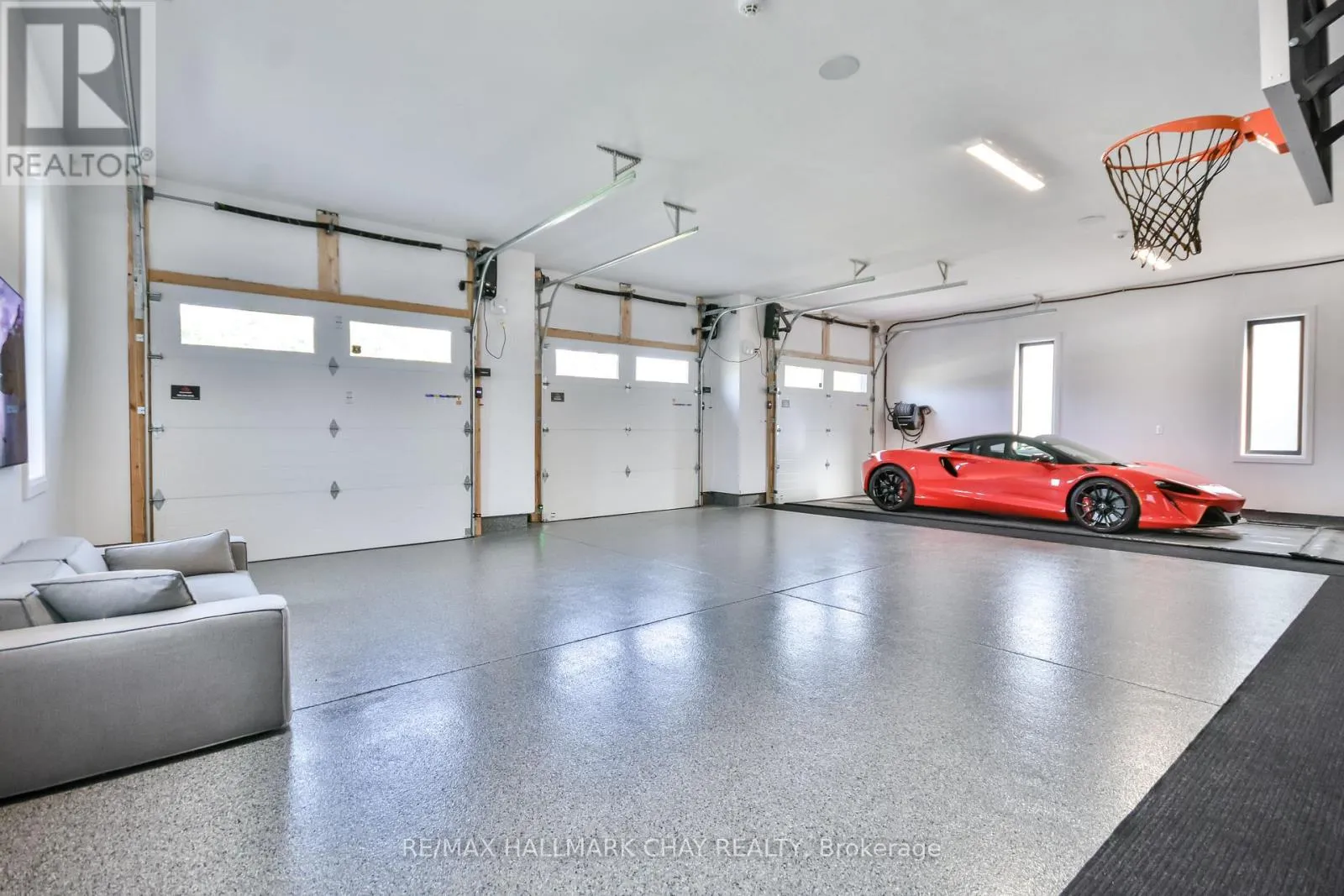 Cross Streets: Wilson to Seadon. ** Directions: Byers to Glenna to Morrison. PRESENTING luxury, lifestyle, privacy, and an exquisite location-all embodied in this stunning custom executive residence in Springwater's prestigious, family centric Cameron Estates. Set on a premium half acre corner lot, this exceptional bungalow offers 5,700+ sq.ft. of finished living space and an oversized 133'x187' private backyard framed by mature cedars and one of the community's largest reclaimed greenspaces. With over $550K in recent updates/upgrades, this home delivers an elevated living experience inside & out. The main level showcases a designer Chef's kitchen with expansive prep space, oversized island with integrated beverage centre, premium Jenn Air 6 burner + griddle range, dual ovens, Dacor fridge/freezer, and walk in pantry with prep sink. Great room impresses with a striking 63" floor to ceiling gas fireplace, vaulted ceilings, and wall to wall views of the private rear yard. Additional main floor features include a dedicated home office, guest 2 pc bath, spacious laundry/mudroom, and three generous bedrooms-each with its own ensuite and walk in closet. The full, finished lower level doubles the living space and continues the home's refined neutral palette. Purpose built for relaxation and entertainment, this level features a spa inspired steam room, home gym with heated padded flooring, guest suite, custom four queen designer bunk room, rec room with linear fireplace and built ins, games room, home bar, office, soundproof gaming room, and additional 2 pc bath. Energy efficient water heated flooring runs throughout. Smart home conveniences include whole home audio (14 zones, 7 Sonos amps, 37 speakers), remote electric blinds, 7 camera security system, wall mounted TVs, and Bell Fibre internet. Car enthusiasts will appreciate the oversized 1,600+ sqft heated 5 vehicle garage, complete with epoxy floors, storage, EV ready wiring, built in audio/TV, pressure washer system, direct basement access with mud room, and rear garage door to the backyard. (id:27476)