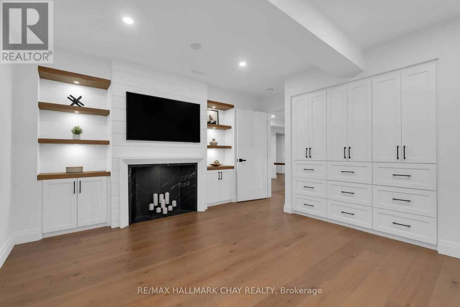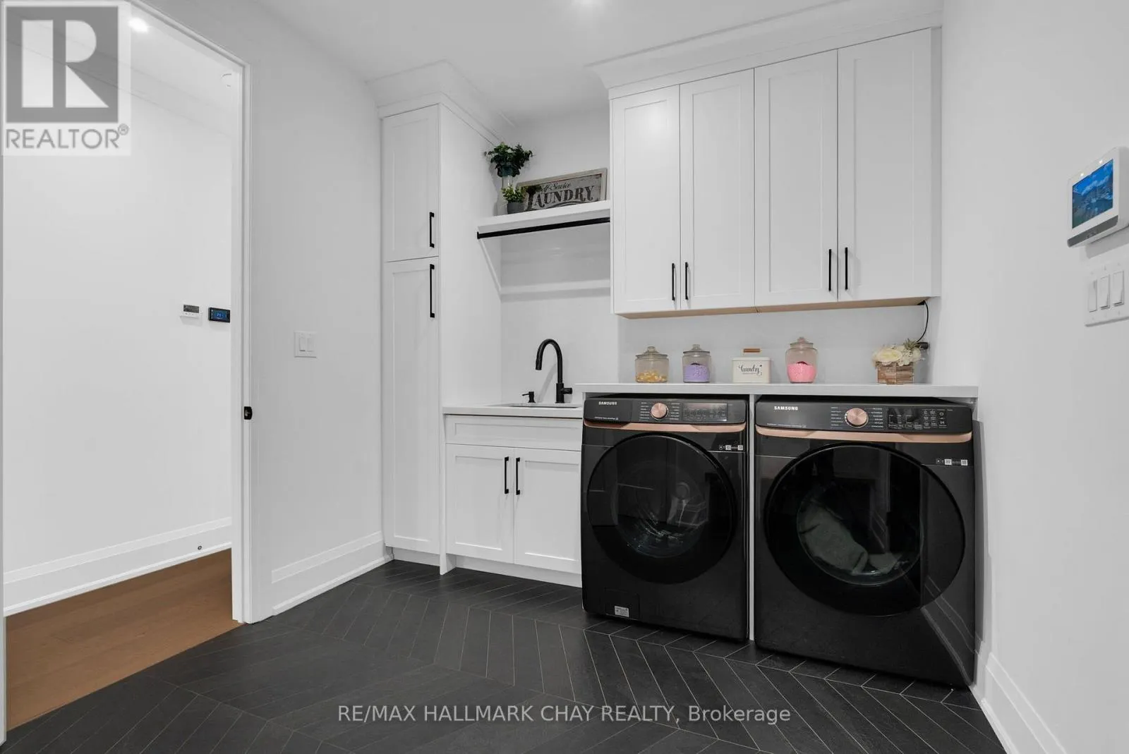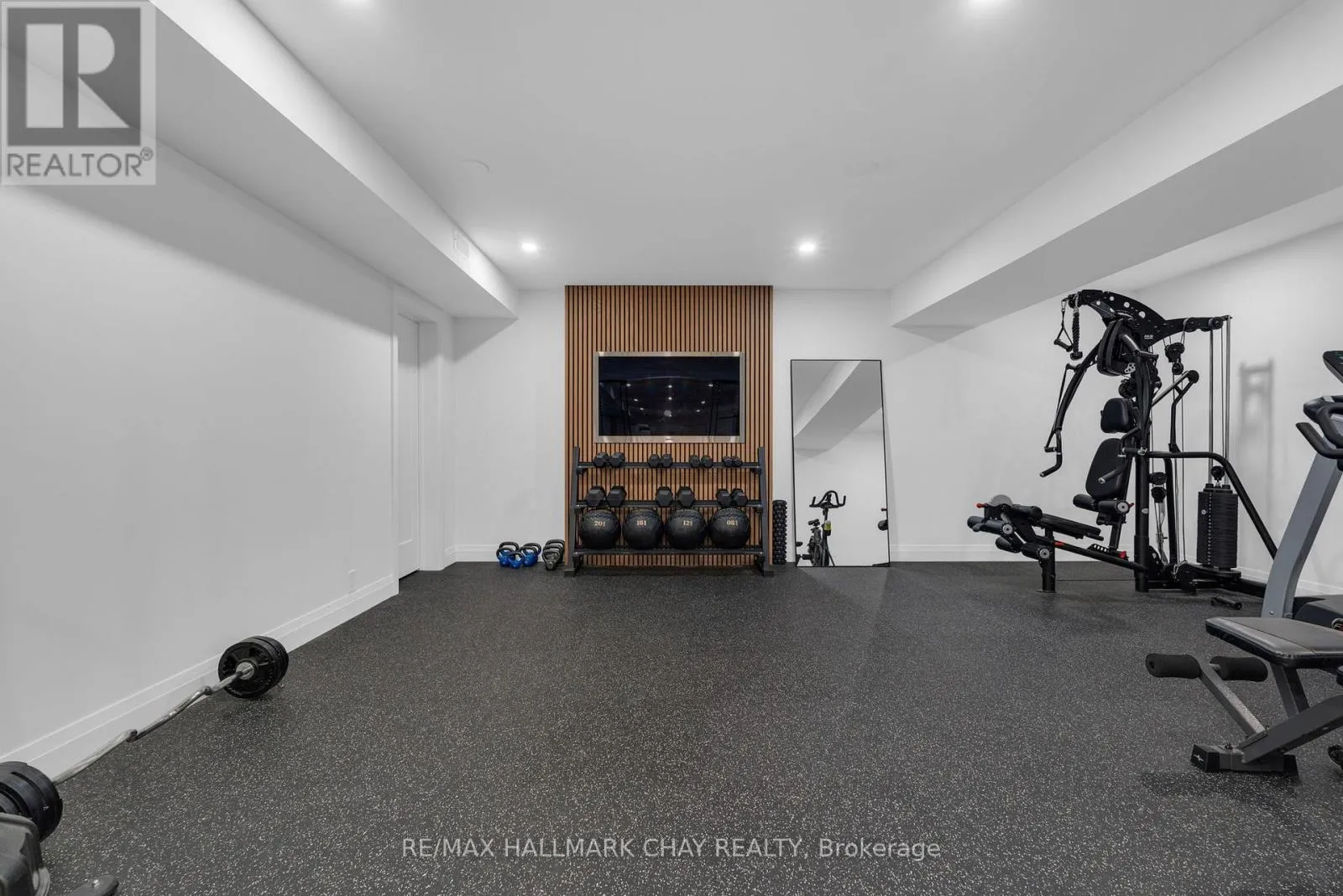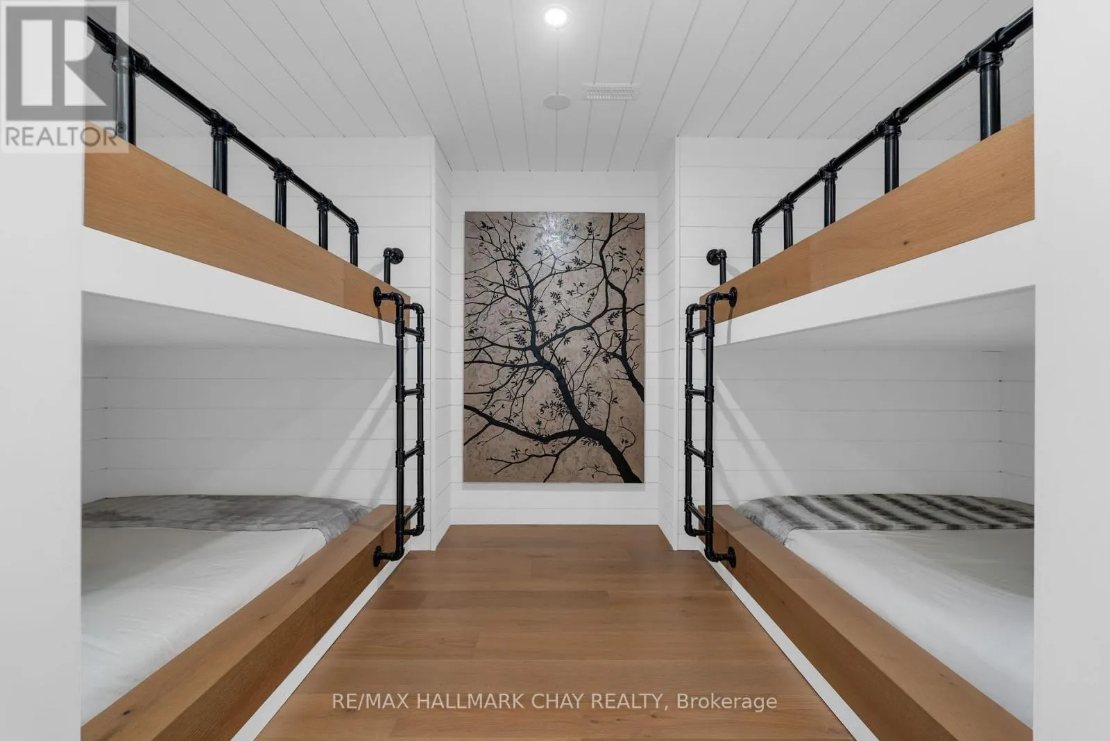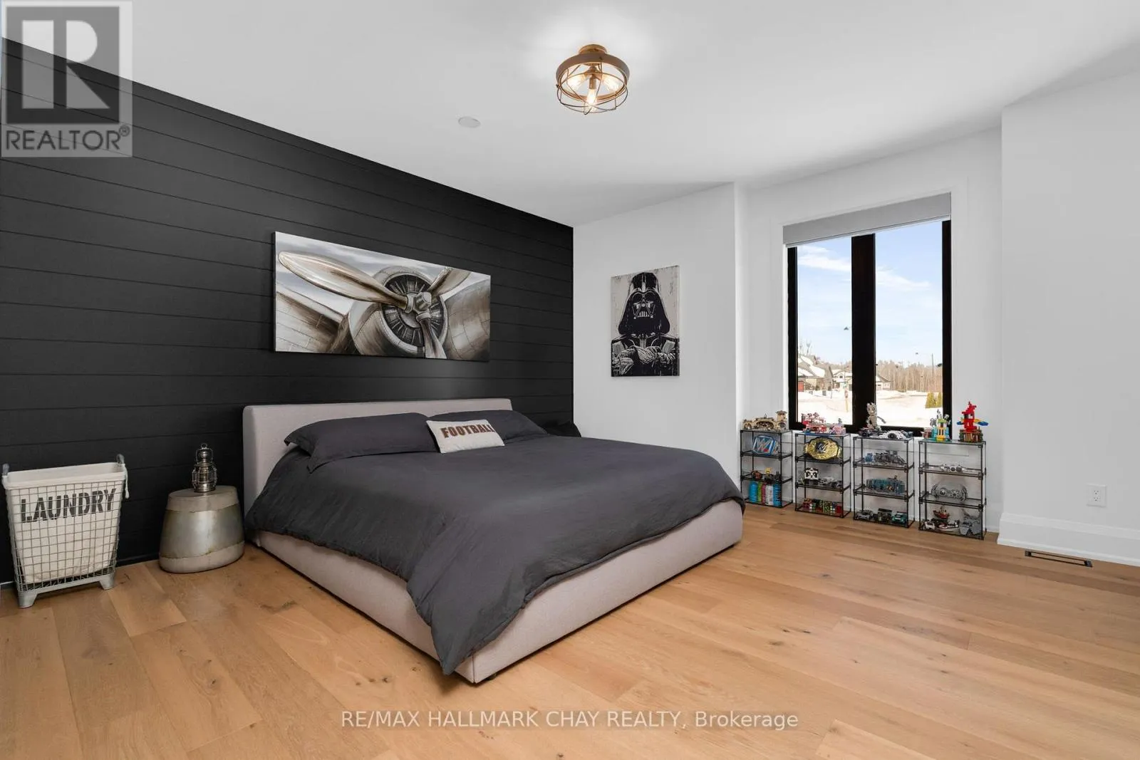 Cross Streets: Wilson to Seadon. ** Directions: Byers to Glenna to Morrison. PRESENTING luxury, lifestyle, privacy, and an exquisite location-all embodied in this stunning custom executive residence in Springwater's prestigious, family centric Cameron Estates. Set on a premium half acre corner lot, this exceptional bungalow offers 5,700+ sq.ft. of finished living space and an oversized 133'x187' private backyard framed by mature cedars and one of the community's largest reclaimed greenspaces. With over $550K in recent updates/upgrades, this home delivers an elevated living experience inside & out. The main level showcases a designer Chef's kitchen with expansive prep space, oversized island with integrated beverage centre, premium Jenn Air 6 burner + griddle range, dual ovens, Dacor fridge/freezer, and walk in pantry with prep sink. Great room impresses with a striking 63" floor to ceiling gas fireplace, vaulted ceilings, and wall to wall views of the private rear yard. Additional main floor features include a dedicated home office, guest 2 pc bath, spacious laundry/mudroom, and three generous bedrooms-each with its own ensuite and walk in closet. The full, finished lower level doubles the living space and continues the home's refined neutral palette. Purpose built for relaxation and entertainment, this level features a spa inspired steam room, home gym with heated padded flooring, guest suite, custom four queen designer bunk room, rec room with linear fireplace and built ins, games room, home bar, office, soundproof gaming room, and additional 2 pc bath. Energy efficient water heated flooring runs throughout. Smart home conveniences include whole home audio (14 zones, 7 Sonos amps, 37 speakers), remote electric blinds, 7 camera security system, wall mounted TVs, and Bell Fibre internet. Car enthusiasts will appreciate the oversized 1,600+ sqft heated 5 vehicle garage, complete with epoxy floors, storage, EV ready wiring, built in audio/TV, pressure washer system, direct basement access with mud room, and rear garage door to the backyard. (id:27476)