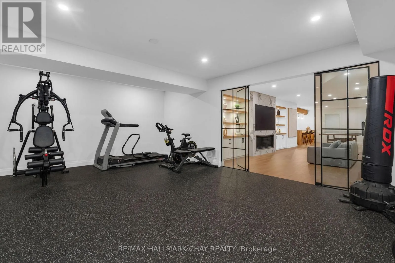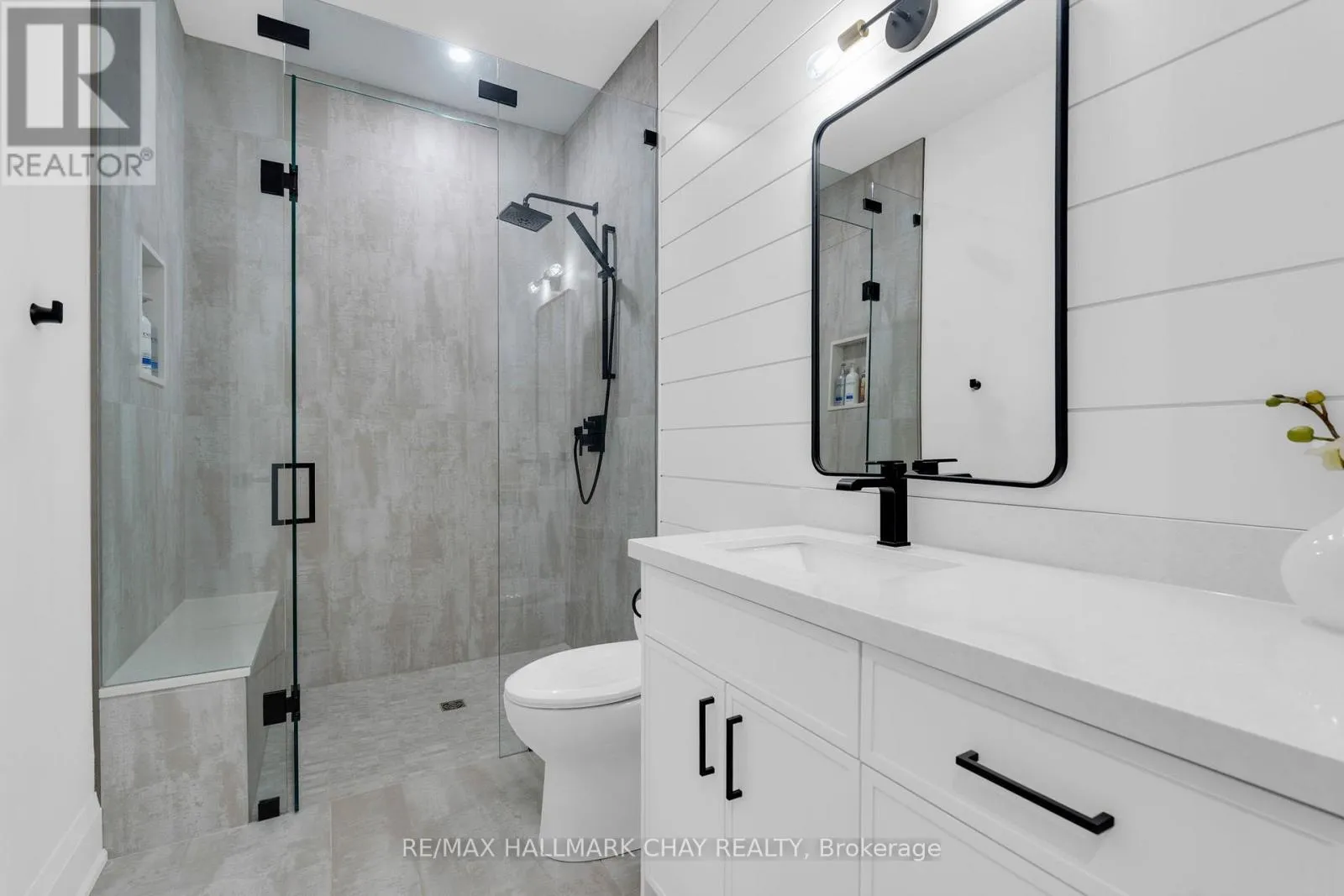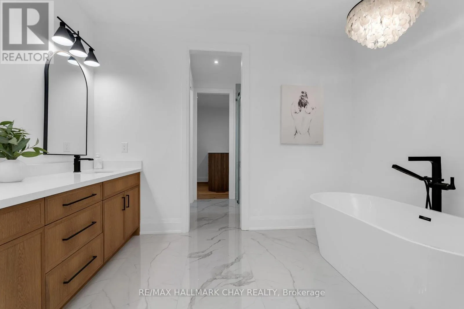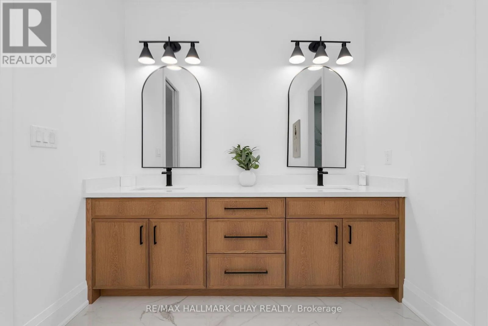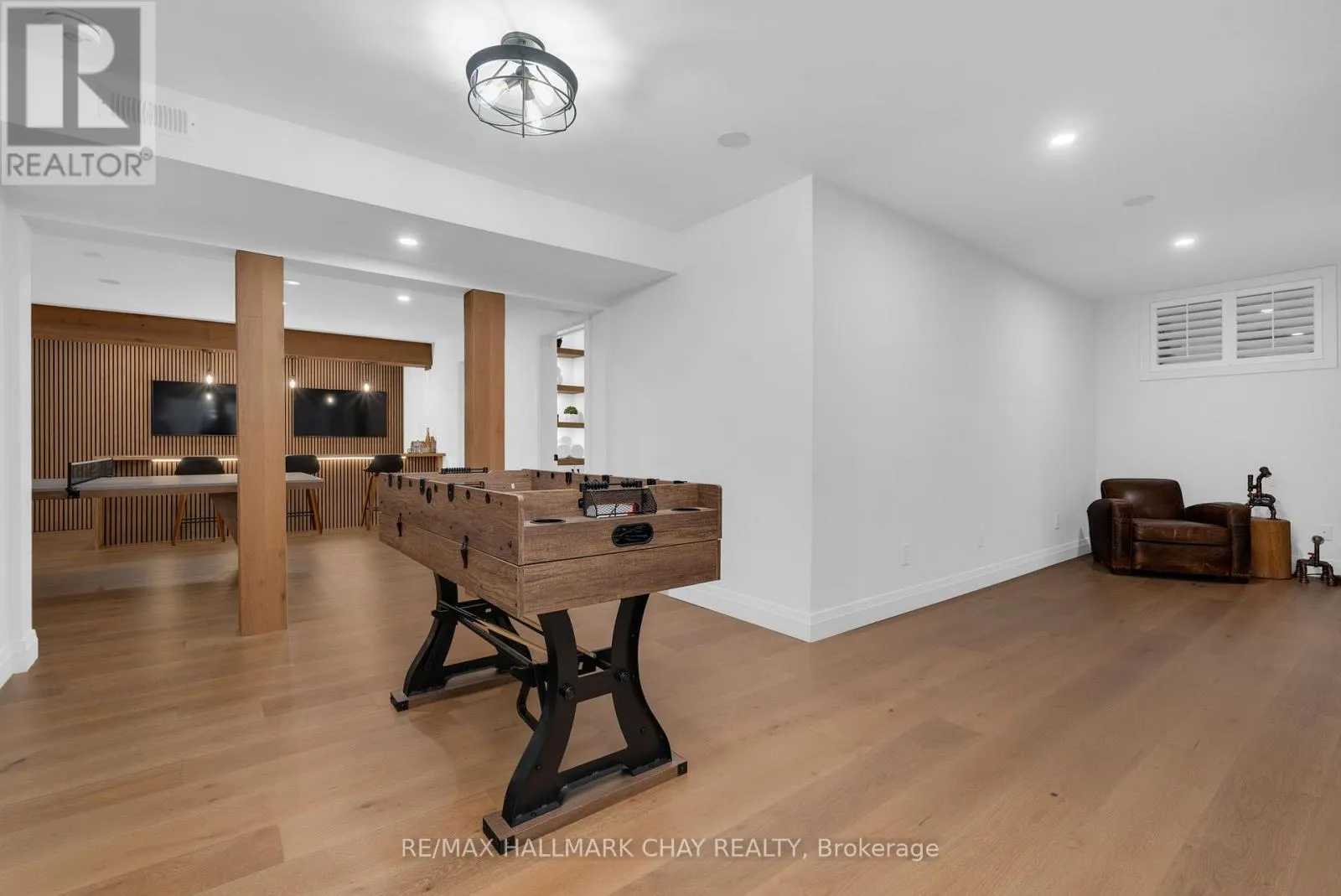 Cross Streets: Wilson to Seadon. ** Directions: Byers to Glenna to Morrison. PRESENTING luxury, lifestyle, privacy, and an exquisite location-all embodied in this stunning custom executive residence in Springwater's prestigious, family centric Cameron Estates. Set on a premium half acre corner lot, this exceptional bungalow offers 5,700+ sq.ft. of finished living space and an oversized 133'x187' private backyard framed by mature cedars and one of the community's largest reclaimed greenspaces. With over $550K in recent updates/upgrades, this home delivers an elevated living experience inside & out. The main level showcases a designer Chef's kitchen with expansive prep space, oversized island with integrated beverage centre, premium Jenn Air 6 burner + griddle range, dual ovens, Dacor fridge/freezer, and walk in pantry with prep sink. Great room impresses with a striking 63" floor to ceiling gas fireplace, vaulted ceilings, and wall to wall views of the private rear yard. Additional main floor features include a dedicated home office, guest 2 pc bath, spacious laundry/mudroom, and three generous bedrooms-each with its own ensuite and walk in closet. The full, finished lower level doubles the living space and continues the home's refined neutral palette. Purpose built for relaxation and entertainment, this level features a spa inspired steam room, home gym with heated padded flooring, guest suite, custom four queen designer bunk room, rec room with linear fireplace and built ins, games room, home bar, office, soundproof gaming room, and additional 2 pc bath. Energy efficient water heated flooring runs throughout. Smart home conveniences include whole home audio (14 zones, 7 Sonos amps, 37 speakers), remote electric blinds, 7 camera security system, wall mounted TVs, and Bell Fibre internet. Car enthusiasts will appreciate the oversized 1,600+ sqft heated 5 vehicle garage, complete with epoxy floors, storage, EV ready wiring, built in audio/TV, pressure washer system, direct basement access with mud room, and rear garage door to the backyard. (id:27476)