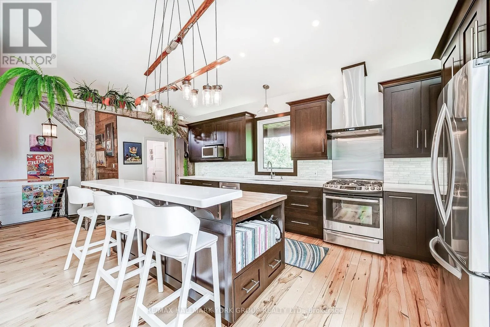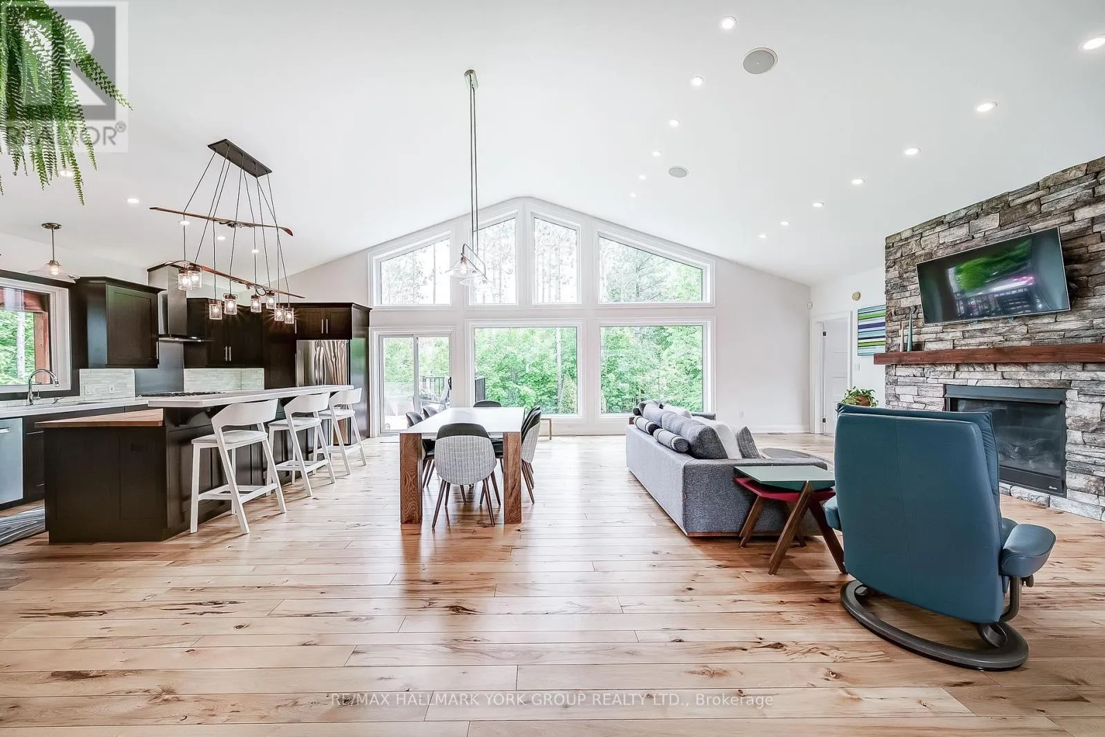Cross Streets: Snow Valley Rd/Wilson Drive. ** Directions: Snow Valley Rd to Black Creek Trail to Mennill Dr. Custom-built raised bungalow showpiece set on a private half-acre lot in the desirable Snow Valley area of Springwater, offering more than 3,600 sq ft of finished living space just minutes from the City of Barrie. The open-concept main level features soaring cathedral ceilings, a wall of windows, and 3/4' hickory flooring throughout. The thoughtfully designed kitchen includes custom cherry cabinetry, a large centre island, and generous counter space-ideal for everyday living and entertaining. The primary bedroom offers a private 5-piece ensuite and walk-in closet. A versatile additional main-level room with custom built-in shelving provides flexible space for a home office, music room, or playroom. The bright lower level includes three bedrooms and a spacious open living area, all with extra-large windows creating an above-grade feel. An oversized two-car garage provides excellent storage and workspace. Enjoy a wraparound deck with covered and open sections, extending main-floor living outdoors, surrounded by a treed and private yard. Ideal for four-season recreation with Snow Valley Ski Resort nearby, walking trails steps from the door, Simcoe County Forest trails minutes away, a golf course two minutes away, and easy access to biking, hiking, snowshoeing, and cross-country skiing. A wonderful opportunity to enjoy peace of mind, comfort, and community in an inviting home! (id:27476)