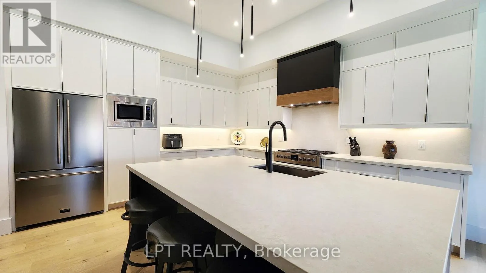 Cross Streets: Glenna Trl. ** Directions: Seadon Rd & Byers Street. Perfectly Located In One Of Springwater's Most Prestigious And Sought-after Neighbourhoods, This Stunning Modern Bungalow Offers Upscale Living With A Peaceful Country Feel-Just Minutes From Snow Valley Ski Resort, Vespra Hills Golf Club, And Barrie Hill Farms. Set Within A Quiet Enclave With No Through Streets, The Area Is Surrounded By Forest And Scenic Trails, Ideal For Hiking, Biking, And Daily Walks, All While Enjoying Minimal Traffic And Exceptional Privacy. From The Moment You Arrive, The Home's Striking Exterior Impresses With Contemporary Brickwork, Natural Wood Accents, And Professional Landscaping. A Covered Front Porch Provides A Welcoming Place To Relax, While The Expansive Driveway And A Triple Car Garage With A Car Lift Making Room For 4 Vehicles. Inside, The Bright Open-concept Layout Is Designed For Both Everyday Comfort And Entertaining. The Custom Kitchen Is A True Showpiece, Featuring Built-in Appliances, Sleek Cabinetry, A Large Centre Island With Seating, And Impressive Statement Lighting. Oversized Windows Flood The Space With Natural Light And Showcase Serene Views Of The Surrounding Greenery. The Living And Dining Areas Flow Seamlessly, Anchored By A Stunning Linear Gas Fireplace That Adds Warmth And Architectural Appeal. Hardwood Flooring Runs Throughout, Except in the Basement Bedrooms And Theatre Room, Which Are Comfortably Finished With Carpet. The Main Floor Offers Three Spacious Bedrooms And Three Full Bathrooms, Including A Tranquil Primary Suite With A Spa-inspired Ensuite Featuring A Freestanding Tub, Dual Vanity, And Modern Fixtures. The Fully Finished Basement Expands The Living Space With Two Additional Bedrooms, A Full Bathroom, A Dedicated Theatre Room, And A Wet Bar-ideal For Entertaining, Guests, Or Extended Family Living. Thoughtfully Designed Outdoor Spaces With Landscaped Lawns, Covered Seating, And Year-Round Privacy. A Perfect Blend Of Modern Style, Comfort, And Nature --- A Must-See Home You Won't Want To Miss. (id:27476)