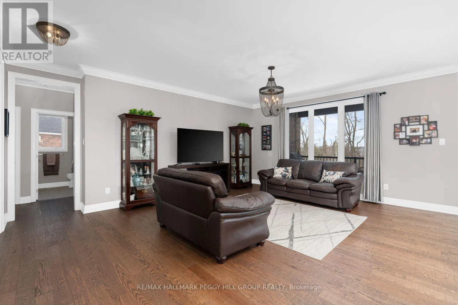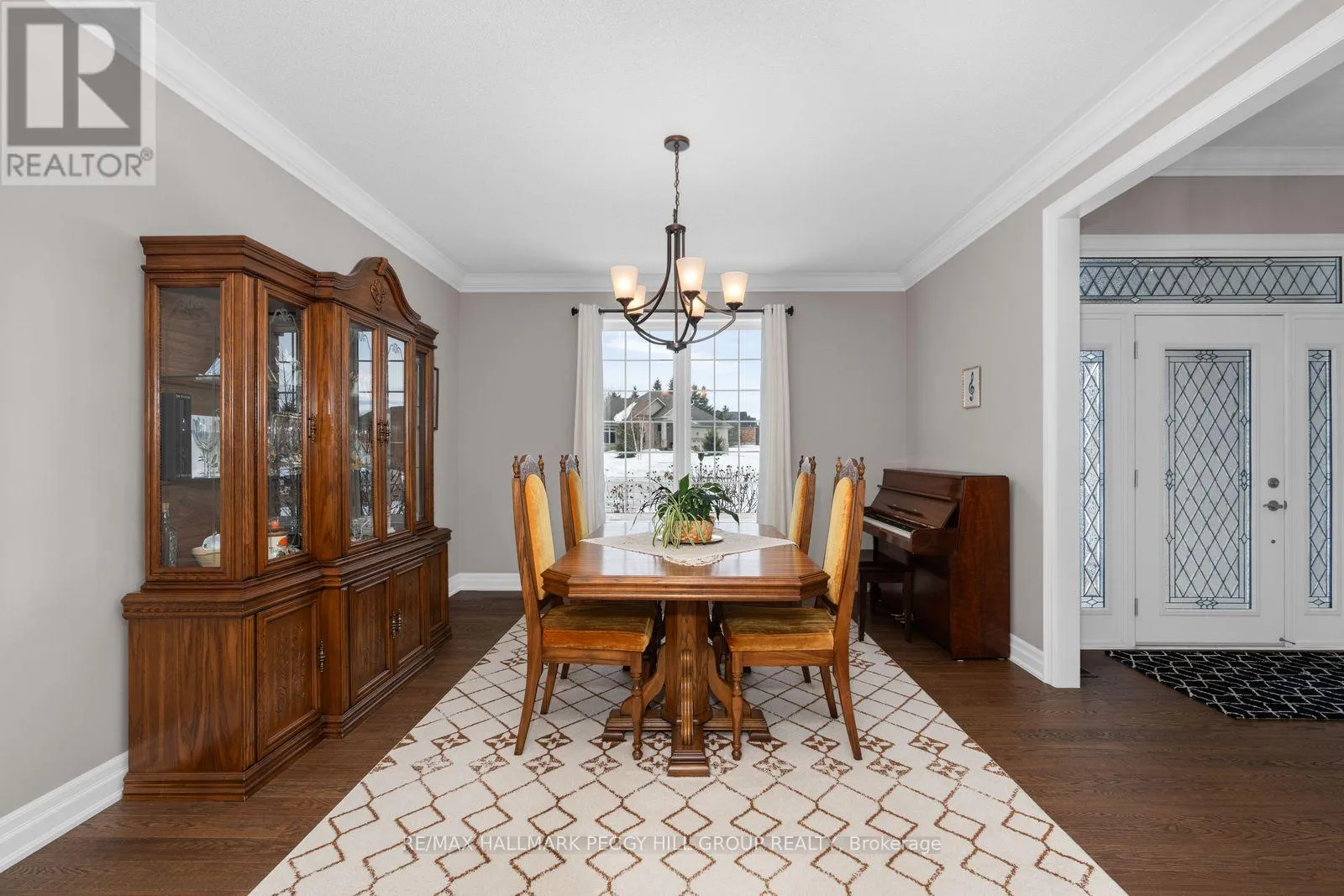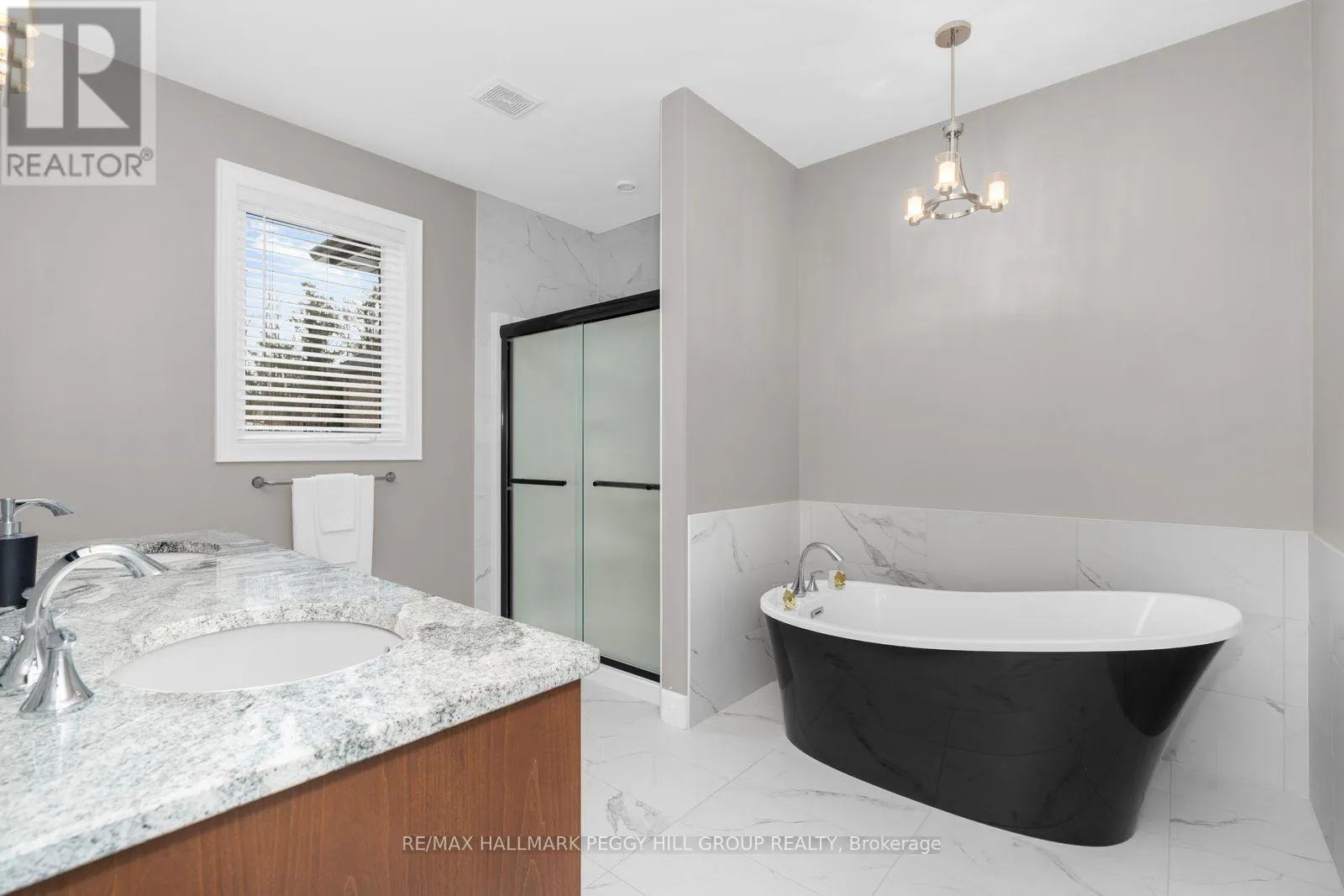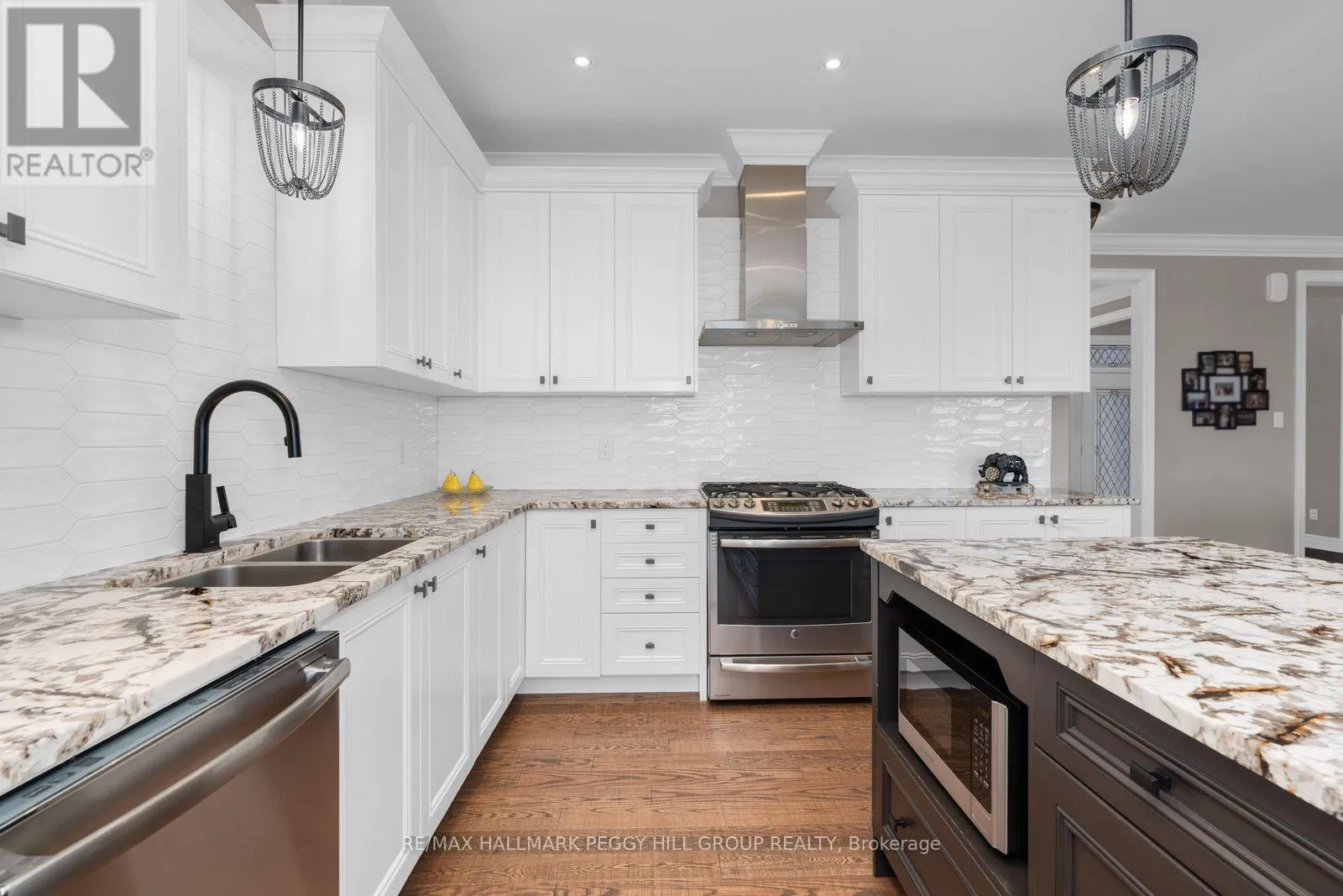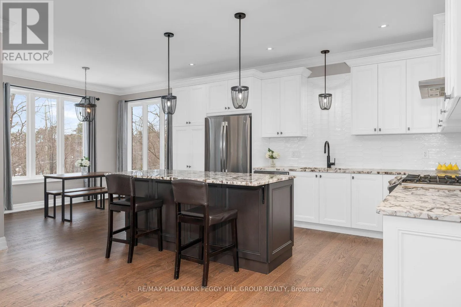 Cross Streets: Carson Rd/Glenhuron Dr. ** Directions: Carson Rd/Glenhuron Dr/Kanata Crt. PRESTIGIOUS CARSON RIDGE ESTATES BUNGALOW WITH NEARLY 2,100 SQ FT ON OVER HALF AN ACRE! Tucked into one of Midhurst's most exclusive enclaves, this Carson Ridge Estates bungalow sits at the end of a cul-de-sac among executive homes, with a treed backdrop on an 84 x 191 ft lot offering over half an acre. A stone and brick exterior sets a confident first impression, with an attached 3-car garage with inside entry and a wide driveway that accommodates up to 6 vehicles. Nearly 2,100 sq ft above grade features 9-ft ceilings, crown moulding, engineered hardwood flooring, main floor laundry, and an open-concept layout that keeps the kitchen, living, and dining spaces connected. The kitchen feels distinctly upscale with white cabinetry topped with crown moulding, full-height pantry storage, granite counters, a glossy white elongated hexagon tile backsplash, stainless steel appliances including a gas stove, stylish pendant lighting, and a contrasting wood-tone island with seating. The breakfast area walks out to the composite raised deck, with a covered patio below creating a shaded space for outdoor living. Three generous bedrooms include a primary retreat with two walk-in closets and a 5-piece ensuite featuring a dual sink vanity, freestanding tub, and separate shower. Downstairs, an unfinished walkout basement offers nearly 2,100 sq ft of additional space and excellent in-law potential, ready to be finished to suit your needs with direct backyard access. Located in the highly sought-after Forest Hill Public School catchment, the setting also offers quick access to Barrie and major highways, plus shopping, recreation, golf, and skiing, with trails and conservation lands nearby for the outdoor lifestyle Springwater is known for. (id:27476)