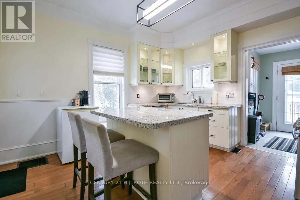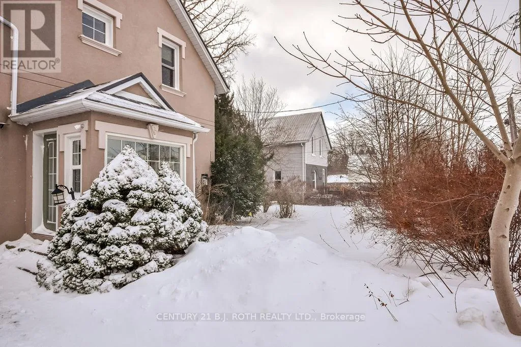 Yonge Street To Stone This beautifully updated 2 storey residence blends timeless charm with modern comfort. Highlights include a striking stucco exterior, durable steel roof, vinyl replacement windows, and a renovated kitchen featuring granite countertops with central island, fully renovated 4pc bathroom, and a primary suite which offers new custom cabinetry in a spacious walk-in closet. Enjoy the convenience of main-floor laundry, gas furnace and A/C, along with refinished oak floors and preserved original trim and doors. Situated on a private, treed 66 x 132 ft lot, the fenced backyard offers a peaceful retreat complete with an adorable studio space. Located just steps from Elmvale's welcoming amenities-library, schools, playground, grocery store, LCBO, bakery, restaurants, and boutiques-you'll love the small-town feel with vibrant appeal. (id:27476)