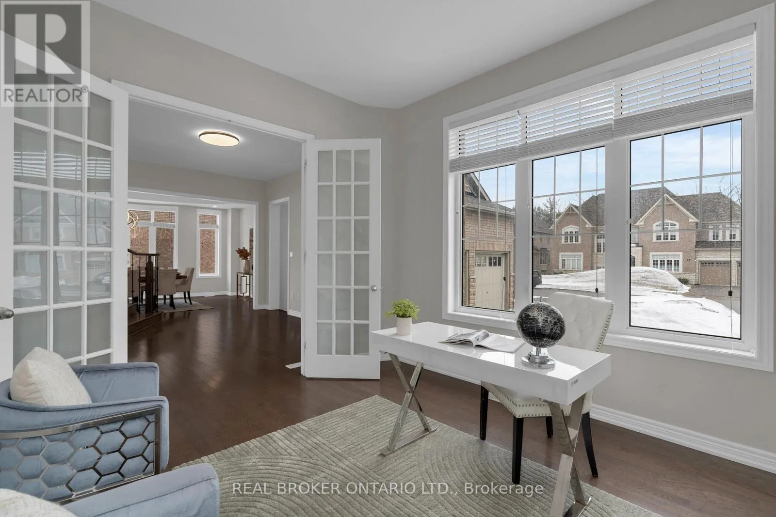 Cross Streets: Victoria Wood Ave/Redmond Cres. ** Directions: . Set within the prestigious Stonemanor Woods community, this home stands out for its scale, layout, and level of finish. 5 bedrooms, 4 car garage and offering over 4,000 square feet, the design is both expansive and intentional, with a rare layout where each bedroom features its own ensuite, creating a level of privacy and comfort that's hard to find. The 10ft ceiling main floor offers a natural flow between principal rooms, anchored by a well-appointed kitchen with granite countertops, extended cabinetry, and a large island, opening to a bright family room with fireplace. A main floor office with french doors and a functional mudroom add to the everyday convenience. Situated on a wide, pool-sized lot, the property offers space to grow, while the four car garage split into two separate double bays provides flexibility rarely seen. The unfinished basement offers future potential for additional living space or an in-law suite. Ideally located just minutes to Barrie, Snow Valley, trails, parks, and everyday amenities, offering a balance of space, privacy, and accessibility. (id:27476)