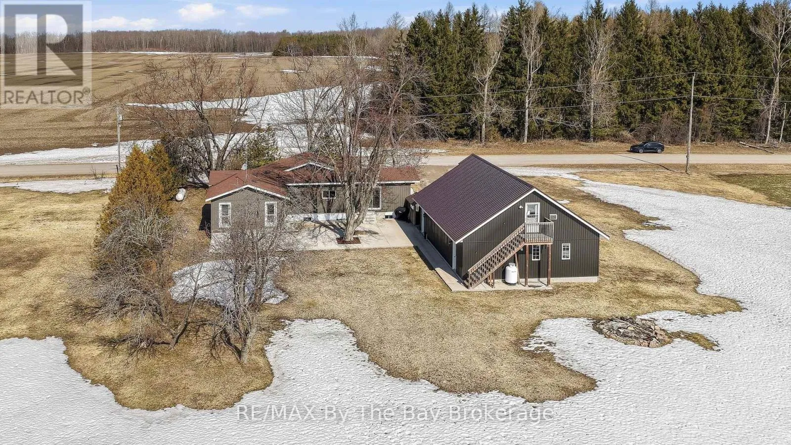 Cross Streets: Crossland Rd & Flos 3 Rd W. ** Directions: Crossland Rd to Flos 3 Rd W. Set on a picturesque 1.2-acre lot surrounded by peaceful farmland, this rural property offers the perfect blend of privacy, functionality, and country lifestyle. The standout feature is the impressive 30' x 40' heated shop with upper level, complete with 60 amp hydro service, propane furnace, - ideal for hobbyists, contractors, or anyone needing space for their tools, vehicles, or recreational toys. The home offers a spacious and practical layout with a large eat-in kitchen, perfect for family gatherings. The bright primary bedroom features an abundance of windows for natural light and a walk-out to the patio, creating a relaxing retreat. Two bedrooms are located on the main level. The fully finished basement provides excellent additional living space with a rec room featuring a cozy propane fireplace, wet bar, second laundry area, third bedroom, and a three-piece bath with walk-in shower. A separate walk-up entrance adds flexibility for extended family or in-law potential.Step outside and enjoy wide open views in every direction, with plenty of room to roam, garden, or simply take in the quiet surroundings. For outdoor enthusiasts, snowmobile and ATV trails are just approximately 1 km away-making it easy to ride right from your property and enjoy everything the area has to offer year-round. Additional features include a large concrete patio, 6 apple trees, full block foundation and drilled well (approximately 125'). A fantastic opportunity for those looking to embrace country living with space, privacy, and a shop that truly sets this property apart. (id:27476)