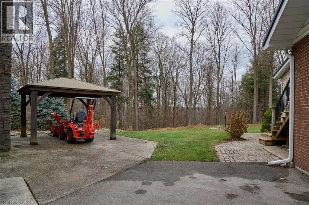 Erbsville to Wideman, Wideman to Wilmot, Wilmot to Berlettâs. Left on Berlettâs. For more info on this property, please click the Brochure button below. Welcome to 1078 Berlettâs Roadâa truly one-of-a-kind property. This custom two-storey raised bungalow, built in 1967, offers 3,028 sq. ft. of beautifully renovated living space across two levels. With only two owners in its lifetime, itâs easy to understand why once you arrive. The 3 + 1 bedroom, 2 bathroom layout charms immediately, set on 6.3 acres of wooded property just minutes from city conveniences. Located only 5 minutes from Costco and the Waterloo Boardwalk, yet steps from Schneiderâs Bush Conservation Area, youâll enjoy nature walks, bird watching, and cross-country skiing right at your doorstep. Inside, the home features a custom Acorn kitchen with granite countertops, hardwood flooring, and river-rock accents throughout. The inviting living room boasts 9â ceilings, double skylights, and built-in cabinetry framing a rustic lodge-style river-rock fireplaceâan instant showpiece. Outdoor living is equally impressive, with two concrete patios (one covered, one open for fires) and two raised decks with glass railings, offering space to entertain, work, and relax. A highlight of the property is the 1,316 sq. ft. two-storey finished detached garage, built in 2013. With 11â ceilings, two overhead doors, heated floor, a wood stove, pellet stove, kitchen cabinetry, and a full home theatre, itâs a dream workspace and retreat. Ascend the custom staircaseâcrafted from wood harvested directly from the propertyâto a spectacular games room complete with a fireplace and custom-built bar. Outfitted with a 12-foot projection screen, Bose surround sound, fridge, and stove, this cozy hideaway makes the perfect dog house or entertainment hub for any occasion. (id:27476)