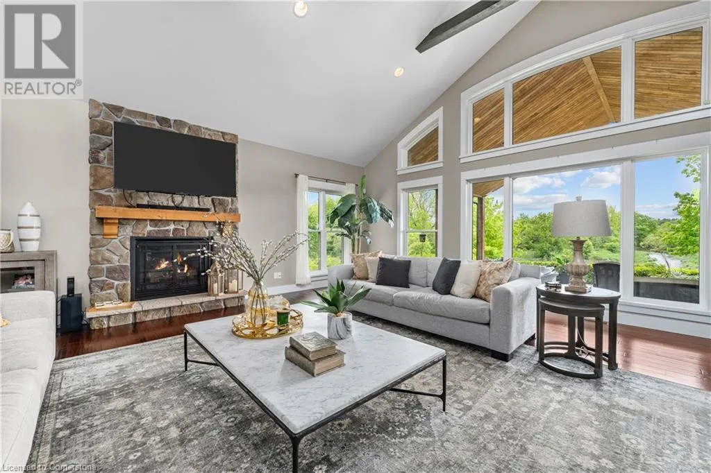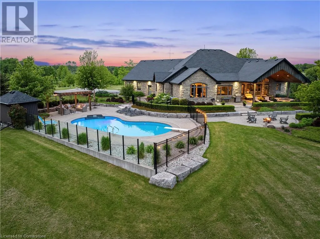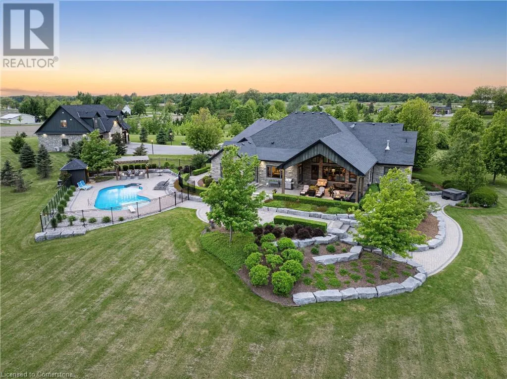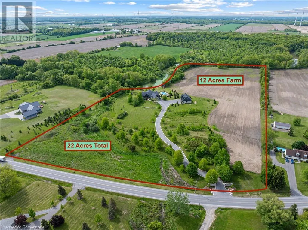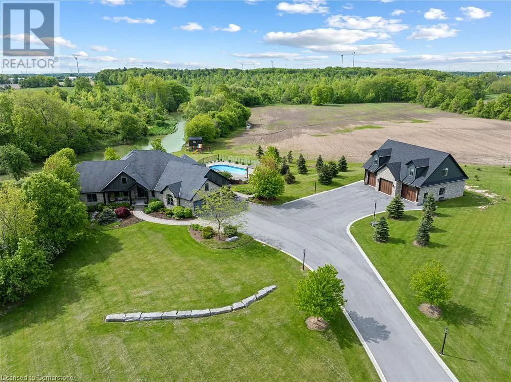 Regional Road #20 to Regional Road #69 (Twenty Mile Rd) Welcome to a rare blend of modern elegance, peaceful privacy, and country charmâa showstopping estate on 22 scenic acres that redefines what it means to live in luxury. Nestled in the heart of Niagaraâs countryside and backing onto the tranquil Twenty Mile Creek, this extraordinary home features nearly 10,000 sq. ft. of beautifully finished living space, combining function, style, and freedom like no other. Enter the expansive contemporary bungalow where light-filled rooms, refined finishes, and thoughtful design come together to elevate everyday living. With 6+2 bedrooms and 5 bathrooms, this property is built for growing families, multigenerational living, or entertaining on a grand scale. Closets throughout the home feature custom built-in organizers, adding style and function to every space. The homeâs striking all-stone exterior creates timeless curb appeal, while in-floor heating in the lower level, attached garage, and detached garage ensures luxurious comfort year-round. With its fully finished walk-out lower level, this home adapts to your lifestyleâspace for guests, gatherings, or quiet retreatâsurrounded by nature and designed with peaceful living in mind. Outside, a resort-style setting unfolds with a heated pool, hot tub, and a stunning timber-framed porchâA front-row seat to the calming views of Twenty Mile Creek and the natural beauty that surrounds you. The winding driveway, lined with lamp posts and concrete curbs, leads to an attached 3-car garage and a 6-car detached garage with a modern 2-bedroom in-law suite aboveâideal for family, guests, or rental opportunities. A separate cabin is also included, providing even more potential for relaxation, hobbies, or extended stays. With 22 acres to roam and creekside views to enjoy, this is country living without compromiseâjust minutes to schools, shops, wineries, and the towns of Smithville, Beamsville, and all Niagara has. More than just a home, this is where lifestyle meets legacy. (id:27476)