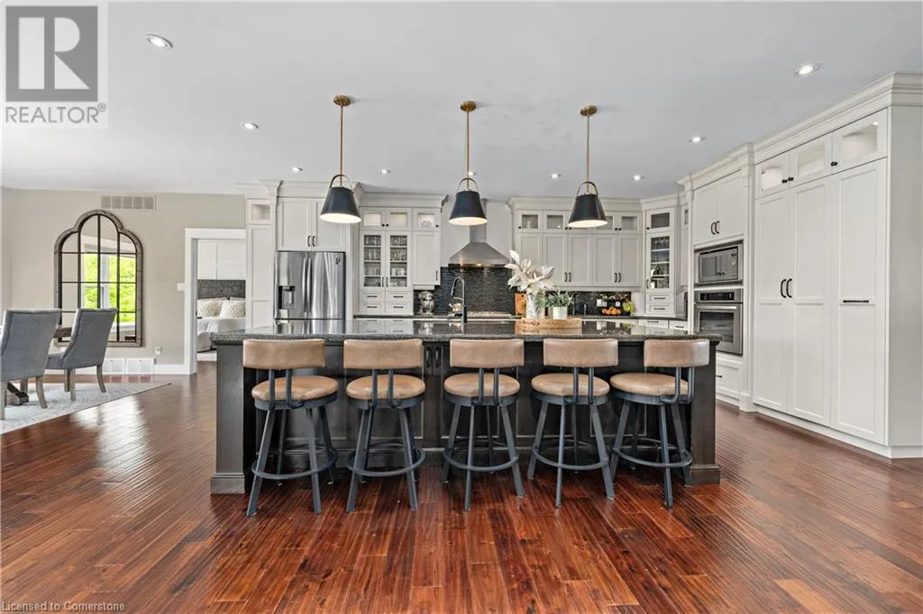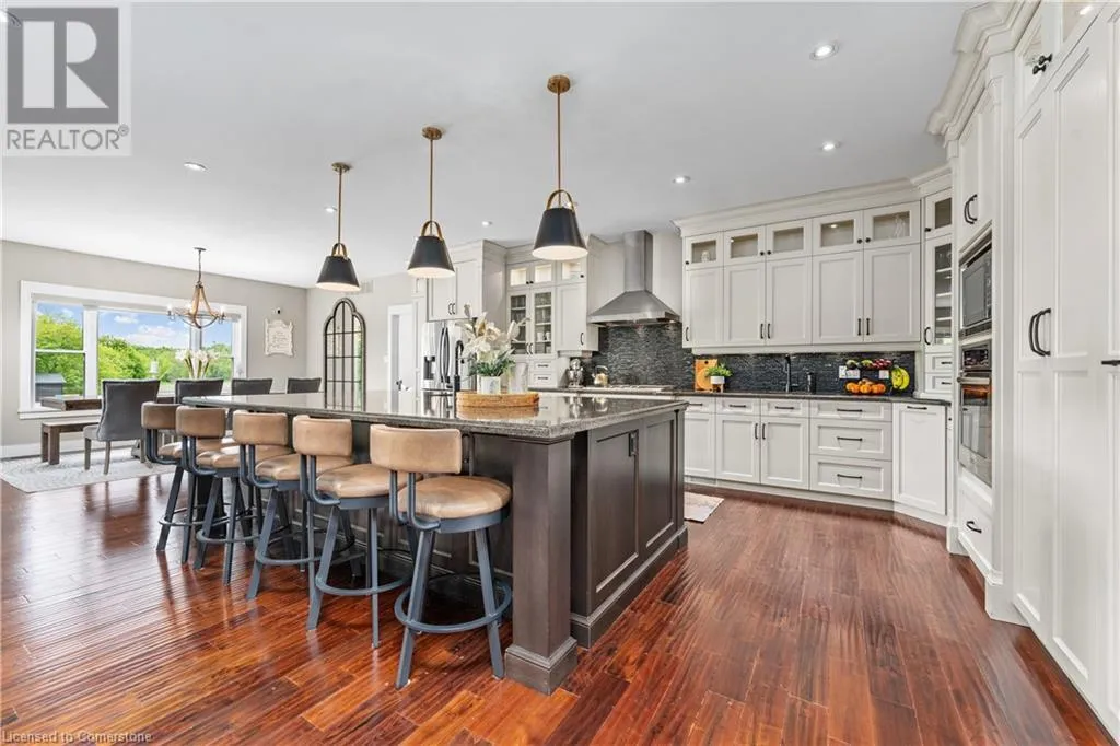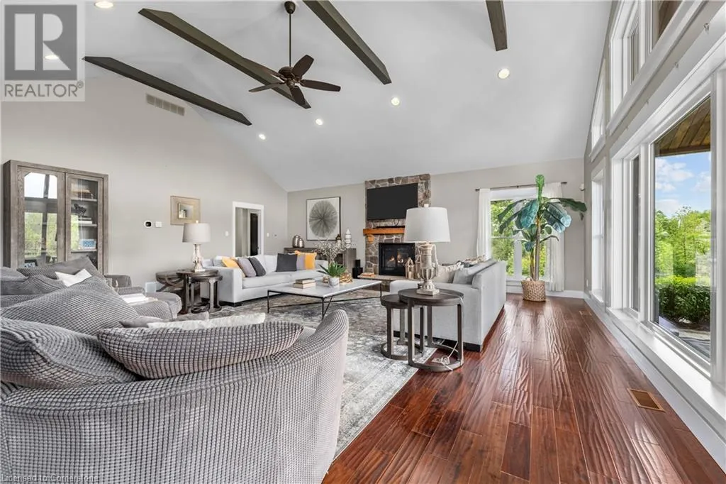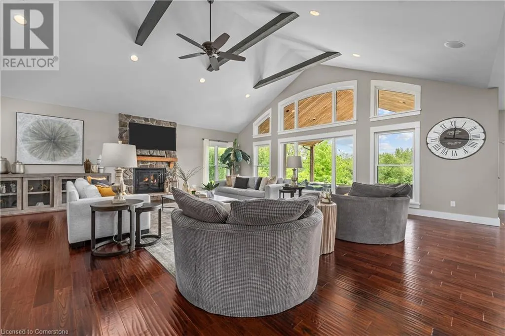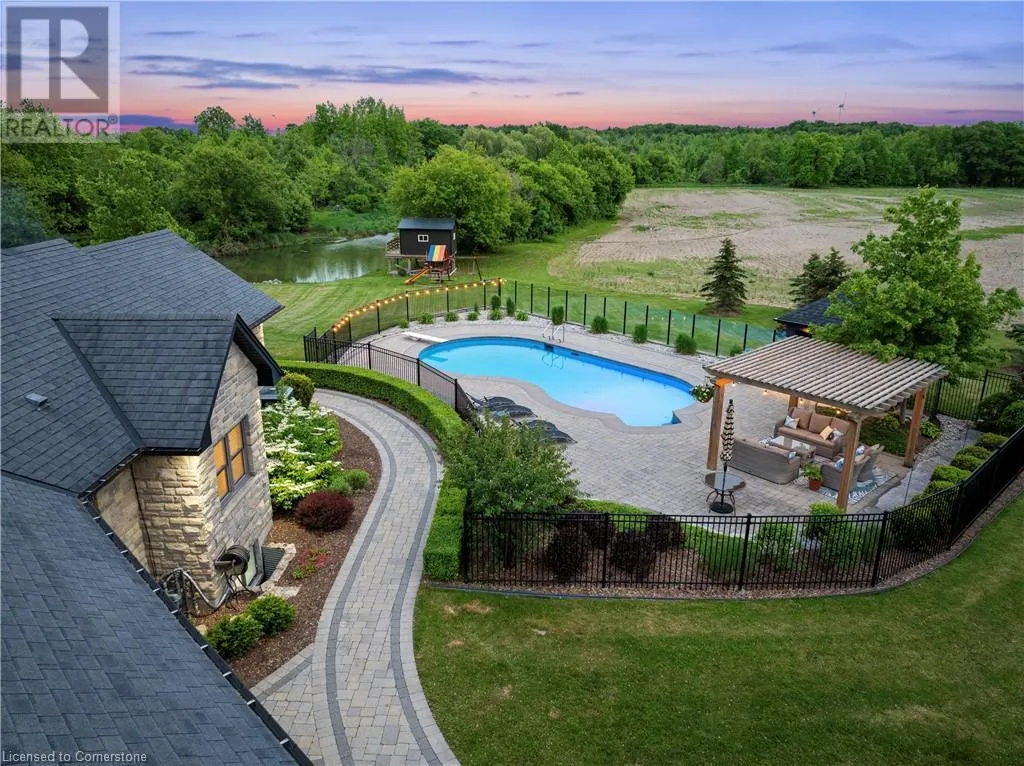 Regional Road #20 to Regional Road #69 (Twenty Mile Rd) Welcome to a rare blend of modern elegance, peaceful privacy, and country charmâa showstopping estate on 22 scenic acres that redefines what it means to live in luxury. Nestled in the heart of Niagaraâs countryside and backing onto the tranquil Twenty Mile Creek, this extraordinary home features nearly 10,000 sq. ft. of beautifully finished living space, combining function, style, and freedom like no other. Enter the expansive contemporary bungalow where light-filled rooms, refined finishes, and thoughtful design come together to elevate everyday living. With 6+2 bedrooms and 5 bathrooms, this property is built for growing families, multigenerational living, or entertaining on a grand scale. Closets throughout the home feature custom built-in organizers, adding style and function to every space. The homeâs striking all-stone exterior creates timeless curb appeal, while in-floor heating in the lower level, attached garage, and detached garage ensures luxurious comfort year-round. With its fully finished walk-out lower level, this home adapts to your lifestyleâspace for guests, gatherings, or quiet retreatâsurrounded by nature and designed with peaceful living in mind. Outside, a resort-style setting unfolds with a heated pool, hot tub, and a stunning timber-framed porchâA front-row seat to the calming views of Twenty Mile Creek and the natural beauty that surrounds you. The winding driveway, lined with lamp posts and concrete curbs, leads to an attached 3-car garage and a 6-car detached garage with a modern 2-bedroom in-law suite aboveâideal for family, guests, or rental opportunities. A separate cabin is also included, providing even more potential for relaxation, hobbies, or extended stays. With 22 acres to roam and creekside views to enjoy, this is country living without compromiseâjust minutes to schools, shops, wineries, and the towns of Smithville, Beamsville, and all Niagara has. More than just a home, this is where lifestyle meets legacy. (id:27476)