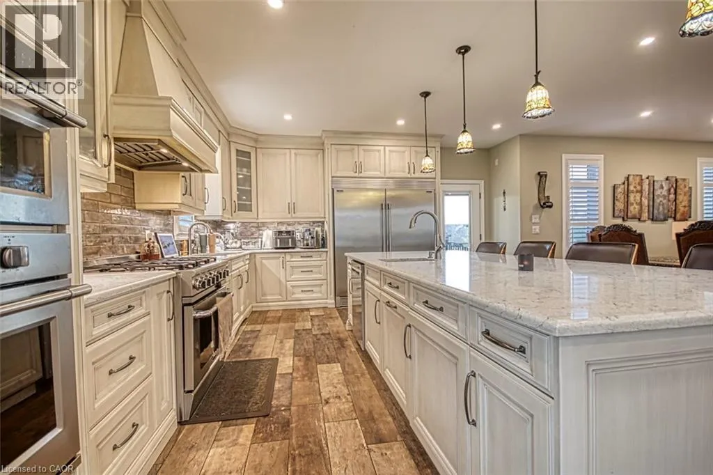 Saint Anns RD & Attema Cres Immaculate! Must Be Enjoyed + Admired! Dream Home On Acre Lot In A Dream Location. Custom Built Gem 4 Yr Young. Stone, Stucco + Brick Exterior. Nearly 7000 SQFT Of Exquisite Finishes, 3+1 Bedrooms+3 Full Bathrooms+2 In law Suites beautifully finished with separate kitchens and bathrooms. Cathedral Ceilings, Vicostone Quartz Counters throughout, Hardwood + Porcelain Floors. Bright Enchanting Kitchen W/Walkout To Roofed Balcony. Massive Master + Epic Ensuite. Live In Luxury The Sophisticated Interior Will Take Your Breath Away wi Impeccable th/ Finishes That Include, LED Pot Lights, Coffered Ceilings, Upgraded Tall Doors, California Window Shutters, Hunter Douglas Silhouette Blinds & A Mix of Stone & Maple Hardwood Floors! The Custom Kitchen Overlooking The Breakfast & Family room is Elevated with/ a Lg Centre Island, Granite Counters, Fridgair Professional Grade Appliances & Soft Closing Drawers. The Cozy Family Rm is Adorned w/ A Custom Gas Fireplace & Beautiful Mantle. (id:27476)