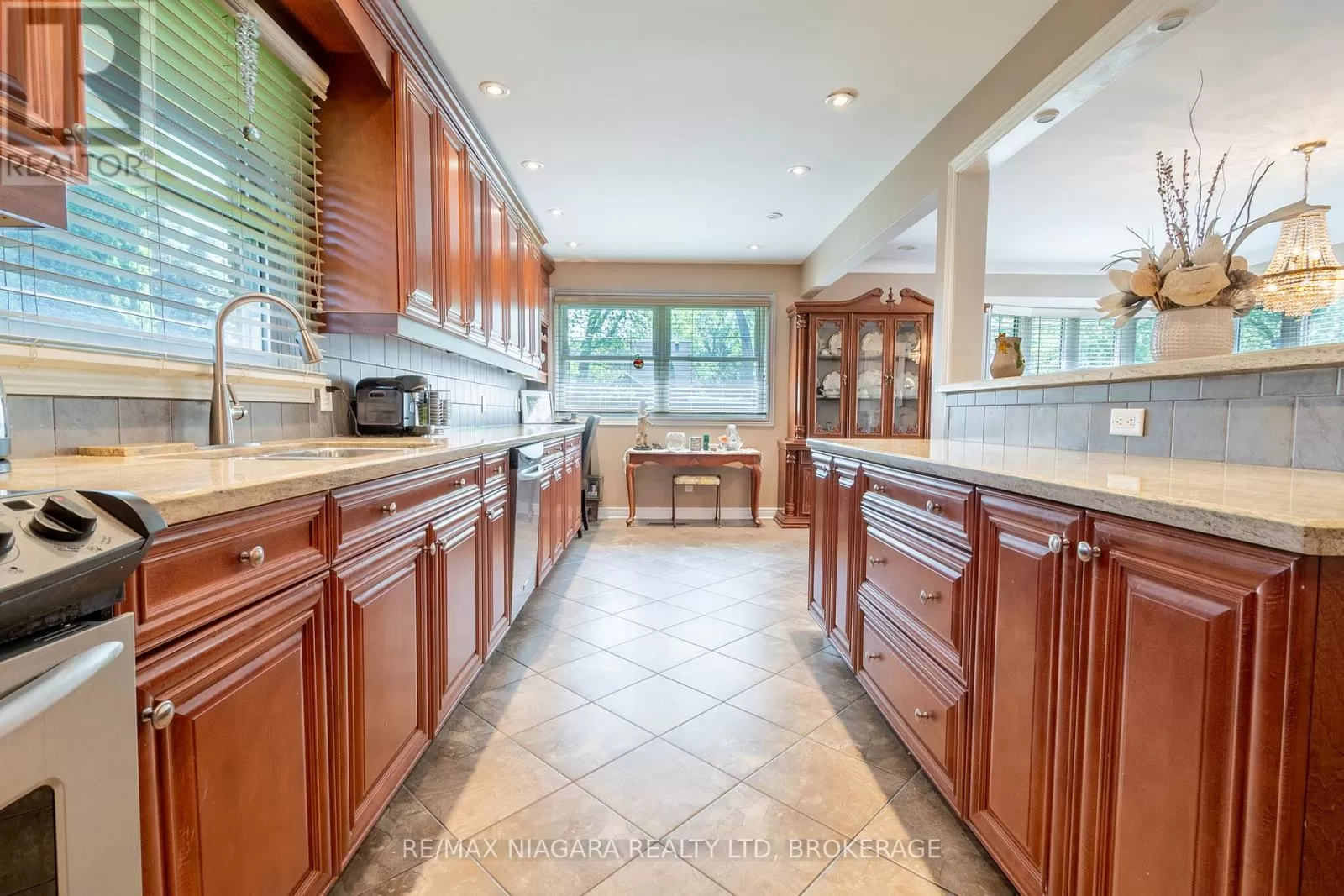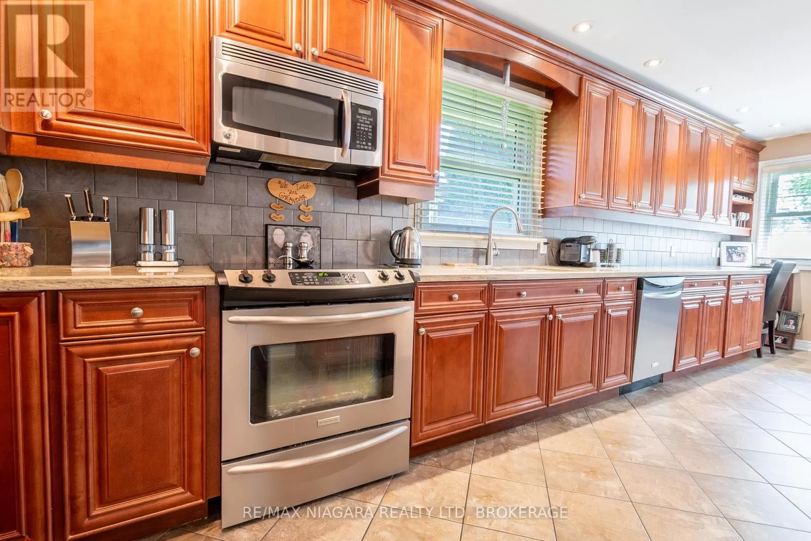 Cross Streets: Linwell/Niagara. ** Directions: Linwell Rd to Niagara St. Introducing 679 Niagara St, an exceptional family residence nestled in the highly desirable north end of St. Catharines. This beautifully designed backsplit features 3 bedrooms and 2 full bathrooms, offering generous space, modern style, and adaptability across four fully developed levels perfect for growing families or remote workers.The main level has been exquisitely renovated, showcasing a custom floor plan that emphasizes a gorgeous kitchen complete with elegant quartz countertops , and a stylish ceramic backsplash, all crafted for effortless entertaining. A charming gas fireplace enhances the inviting atmosphere of this area.On the upper level, you'll find three spacious bedrooms along with a thoughtfully designed 3-piece bathroom. The primary bedroom stands out with ample storage, featuring both his and her closets.The cozy lower-level family room serves as an ideal retreat, enhanced by high ceilings and large above-grade windows that flood the space with natural light. This level also provides easy access to the back patio and includes a luxurious 4-piece jacuzzi bath.The basement presents a generous, versatile area currently utilized as an entertainment space, offering further opportunities for customization and potential for an in-law suite.Outside, enjoy a spacious backyard and a double-car garage. Recent updates include a roof that is just 5 years old, with a furnace and air conditioning system installed 4 years ago. Conveniently located near top-rated schools, beautiful parks, walking trails, hospitals, and all necessary shopping amenities, this home truly has everything you need. Don't miss your chance to make this thoughtfully updated and meticulously maintained property yours in one of St. Catharines' most sought-after neighborhoods! (id:27476)