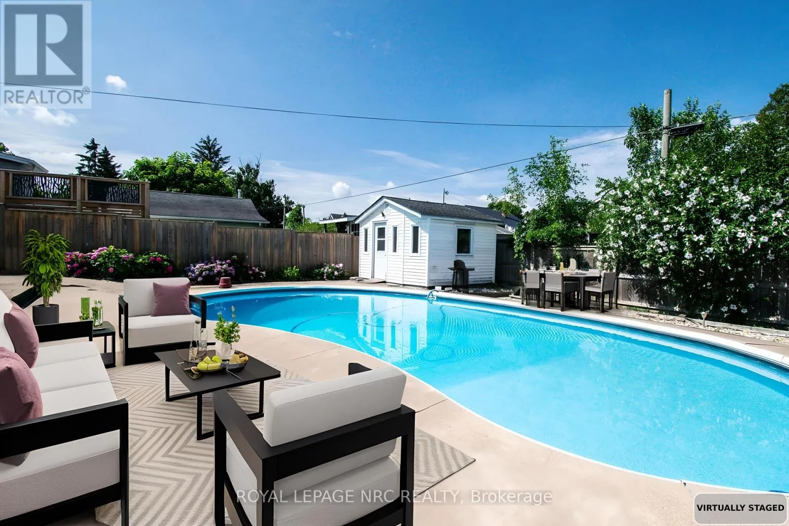 Cross Streets: LINCOLN AVE & HARTZEL RD. ** Directions: QUEENSTON ST TO HARTZEL RD, TURN RIGHT ONTOLINCOLN AVE AND THEN TURN RIGHT ONTO MELROSE AVE. "METICULOUS & WELL CARED 2+1 BEDROOM, 2 FULL BATH BUNGALOW ON QUIET DEAD END STREET BOASTED OVER 1700 SQ FT OF LIVING SPACE, INGROUND POOL, FULLY FINISHED LOWER LEVEL, STUNNING PATIO & IN-LAW POTENTIAL WITH SIDE ENTRANCE, CLOSE TO WELLAND CANAL & AMENITIES, PRICED TO MOVE" Welcome to 11 Melrose Avenue, St. Catharines. As you drive down this quiet street and approach this home you notice the "Pride In Ownership" with well manicured gardens and a large double drive good for 4 or 5 vehicles. Enter inside to the large foyer and you are met with spacious living room area with hardwood flooring and Eastern Sunrises, from the Living Room, continue and you have a good sized Eat-in Kitchen with plenty of counter & cabinet space , a formal dining rm with patio door to the back yard good for bbqs, 2 generous sized bedrooms with a nice 4 pc bath. After completing the upstairs, head to the lower level and you are met with a large Recroom & games room area (easily used at in-law potential, another 3 pc bath, another bedroom and separate laundry area. Finally, head outside to enjoy your back yard oasis during the summer months with inground pool and concrete patio area with very little maintenance. Close to the Welland Canal, Outlet Mall, other amenities and Bus Route.(NOTE SOME ROOMS VIRTUALLY STAGED) (ROOF - 2023, FURNACE APPOX 15YRS OLD) (id:27476)