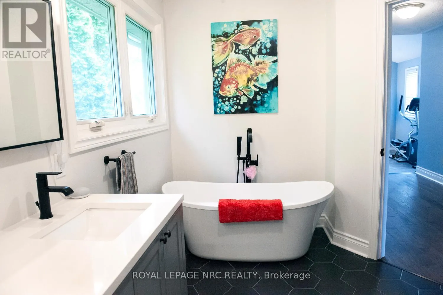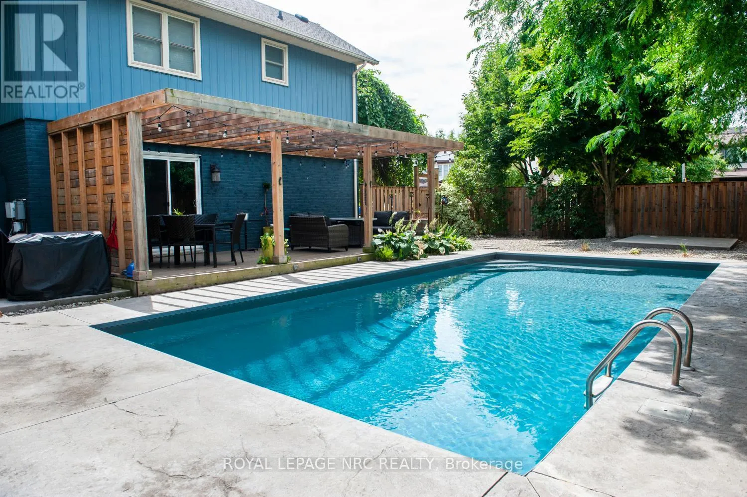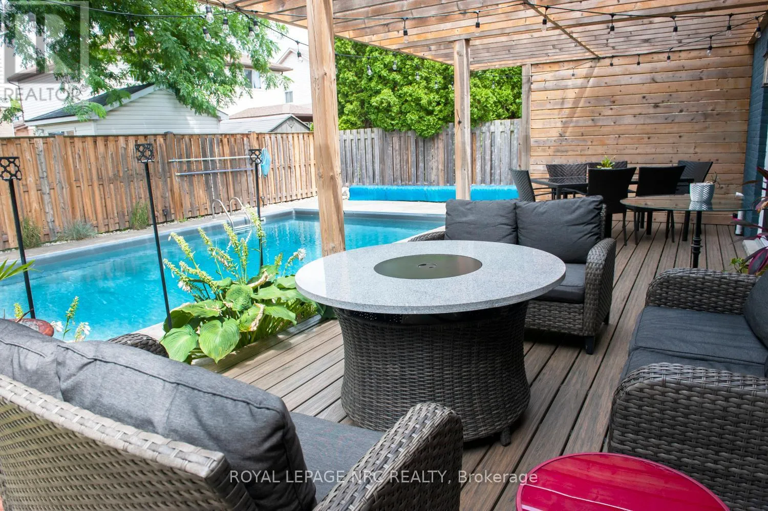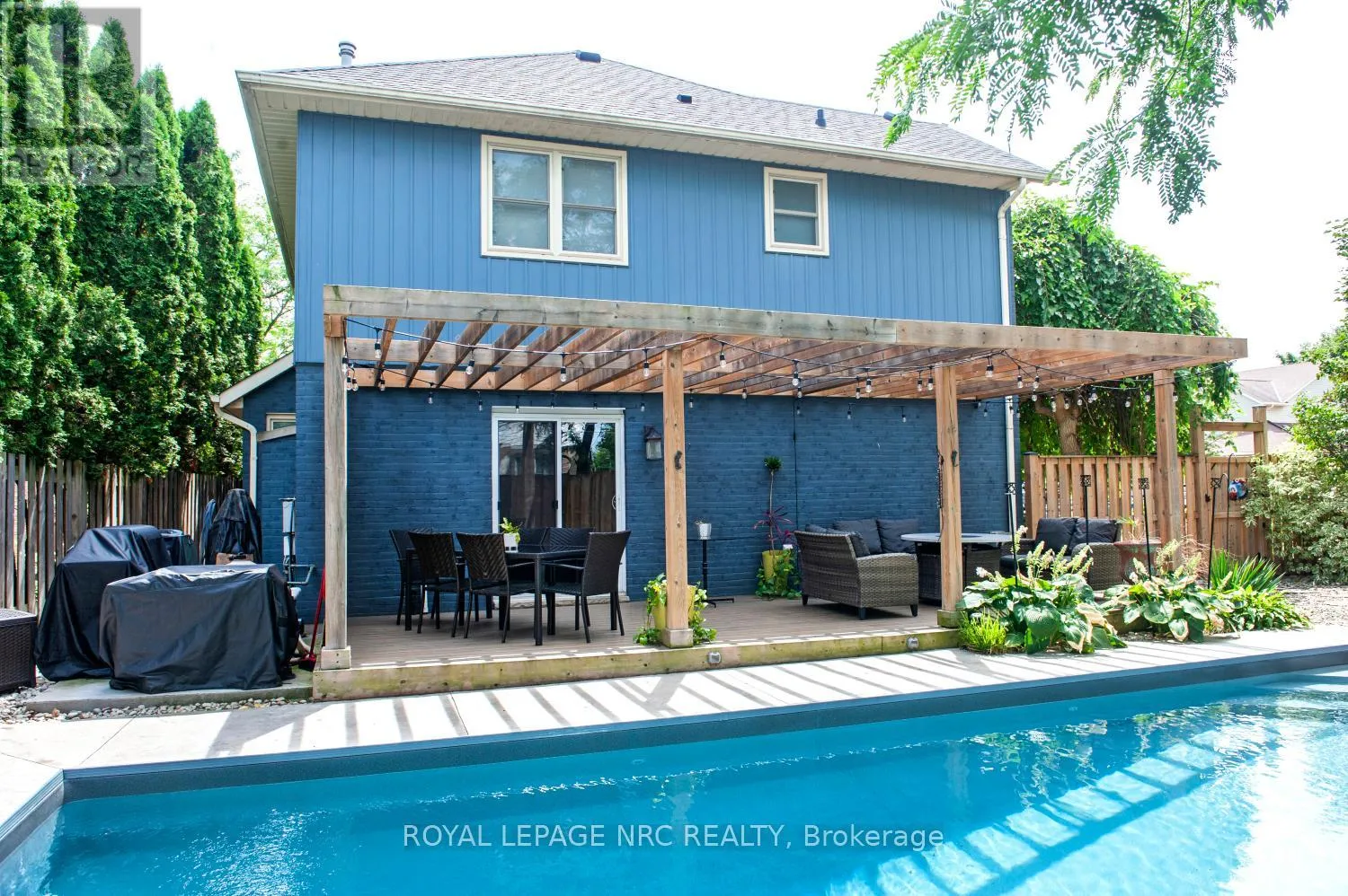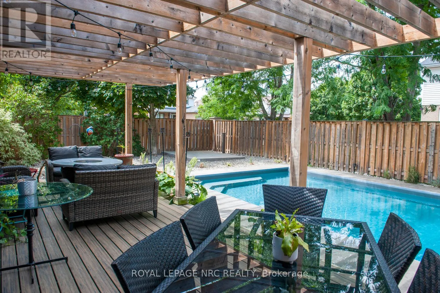 Cross Streets: Mac Turnbull, Vansickle. ** Directions: VANSICLE TO MAC TURNBULL THEN RIGHT ON SENATOR. Welcome to this gorgeous two-storey home nestled in a sought-after family-friendly subdivision, perfectly located with a park just across the street and close to all amenities and main commuter routes. This beautifully updated residence offers the perfect blend of comfort, style, and functionality, ideal for todays modern family. Inside, you'll find a sunken living room with a cozy fireplace, creating a warm and inviting space to relax. The updated kitchen and dining area flow seamlessly into the backyard oasis, where a 16 x 32 in-ground heated salt water pool awaits, perfect for summer entertaining. Step out onto the composite deck, complete with a stylish pergola, and enjoy outdoor living in your private, fenced yard. Upstairs features three spacious bedrooms, including a fabulous ensuite bathroom with an independent soaker tub and sleek, modern finishes. The second floor also includes laundry connections for added convenience, as well as a versatile den that can be used as a home office, playroom, or reading nook.The fully finished basement provides even more living space, complete with a 4th bedroom, ideal for guests, teens, or extended family. Renovated bathrooms throughout the home ensure a fresh, contemporary feel from top to bottom. (id:27476)