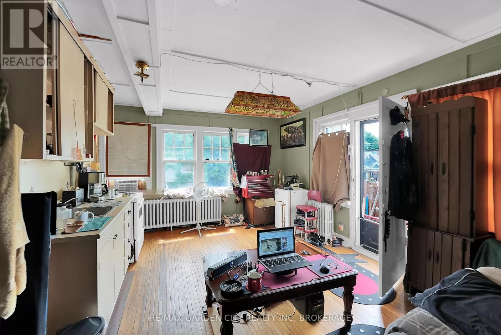 Cross Streets: Geneva & Linwood. ** Directions: Corner of Linwood Street & Geneva Street just South of the QEW. Fully occupied triplex property with 4 kitchens, 6 full bathrooms, and 8 bedrooms in total. Located just south of the QEW in Downtown St.Catharines Fitzgerald neighbourhood within walking distance to the Fairview Mall and surrounding shopping centres. Leading in from the front covered porch into the foyer entrance area you'll find two bedrooms on the main floor both with ensuite bathrooms, the kitchen space, and the basement has another bedroom also with an ensuite bathroom. The second floor has another kitchen along with 3 bedrooms and a 4 piece bathroom. In the rear of the building there are two more self contained units with their own separate entrances, one on the main floor and the other on the second storey. The property is making great income for the purchase price and lots of future potential as well. (id:27476)