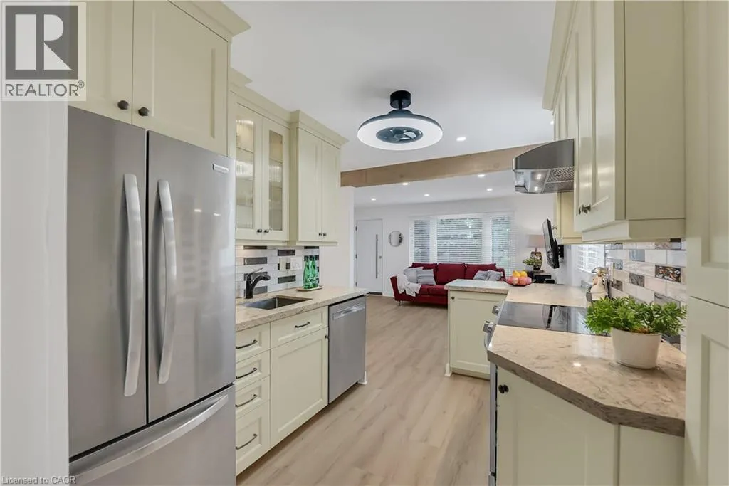 Follow Queen Elizabeth Wy to Dunkirk Rd in St. Catharines. Take exit 44 toward Regional Road 77,Follow Dunkirk Rd and Welland Ave to Waverley Rd in Facer, Merge onto Dunkirk Rd, Turn left onto Waverley Rd STYLE MEETS SMART UPDATES ... 1 Waverley Road in St. Catharines is a BRIGHT, BEAUTIFULLY UPDATED bungalow that blends smart design, modern finishes & practical upgrades into a MOVE-IN READY home. Every corner of this property has been thoughtfully refreshed, making it the perfect fit for buyers seeking comfort, style & convenience. Step inside through the side entrance, where tile flooring leads to a functional space w/laundry, furnace & owned tankless hot water heater. Straight ahead, discover the sunrooms stunning transformation into a private primary suite (2024), complete w/large closet, handy extra towel storage & stylish 3-pc ensuite. A few steps up from the entry, the UPDATED KITCHEN shines w/GRANITE counters, soft-close cupboards & drawers, under-mount lighting, and appliances purchased just last year. The extended counter doubles as a cozy 2-seat BREAKFAST BAR, perfect for quick meals. Vinyl flooring flows seamlessly into the open living room, brightened by pot lighting, large window, and durable new front entry door w/enhanced security. Two additional bedrooms provide flexibility for family, guests, or hobbies. A 4-pc bath w/porcelain tile flooring & ceramic tile surround completes the main living space. The exterior has been upgraded w/NEW siding & most of the windows, along w/freshly parged front porch enhanced by a pergola, new stairs & railing. Out back, enjoy the rebuilt 22 x 24 detached DOUBLE GARAGE w/LOFT STORAGE (2024), new shed & deck - all built on sturdy 18-inch concrete pads. Major system updates provide peace of mind, including roof joist repairs, new sheathing, fresh shingles, and R80 attic insulation (2024). With a triple-deep driveway, mature lot, and ideal location just minutes to the Kiwanis Recreation Centre, Costco Business Centre, shopping, bakeries, dining, schools, parks, and highway access, this home delivers on both lifestyle and convenience. CLICK ON MULTIMEDIA for video tour, drone photos, floor plans & more. (id:27476)